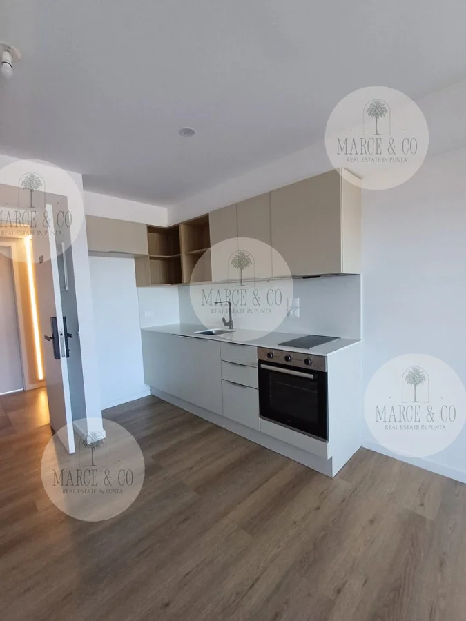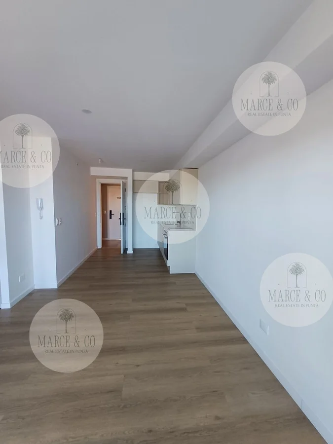 La unidad cuenta con un dormitorio, cocina integrada y un diseño funcional que maximiza el confort y la luz natural.