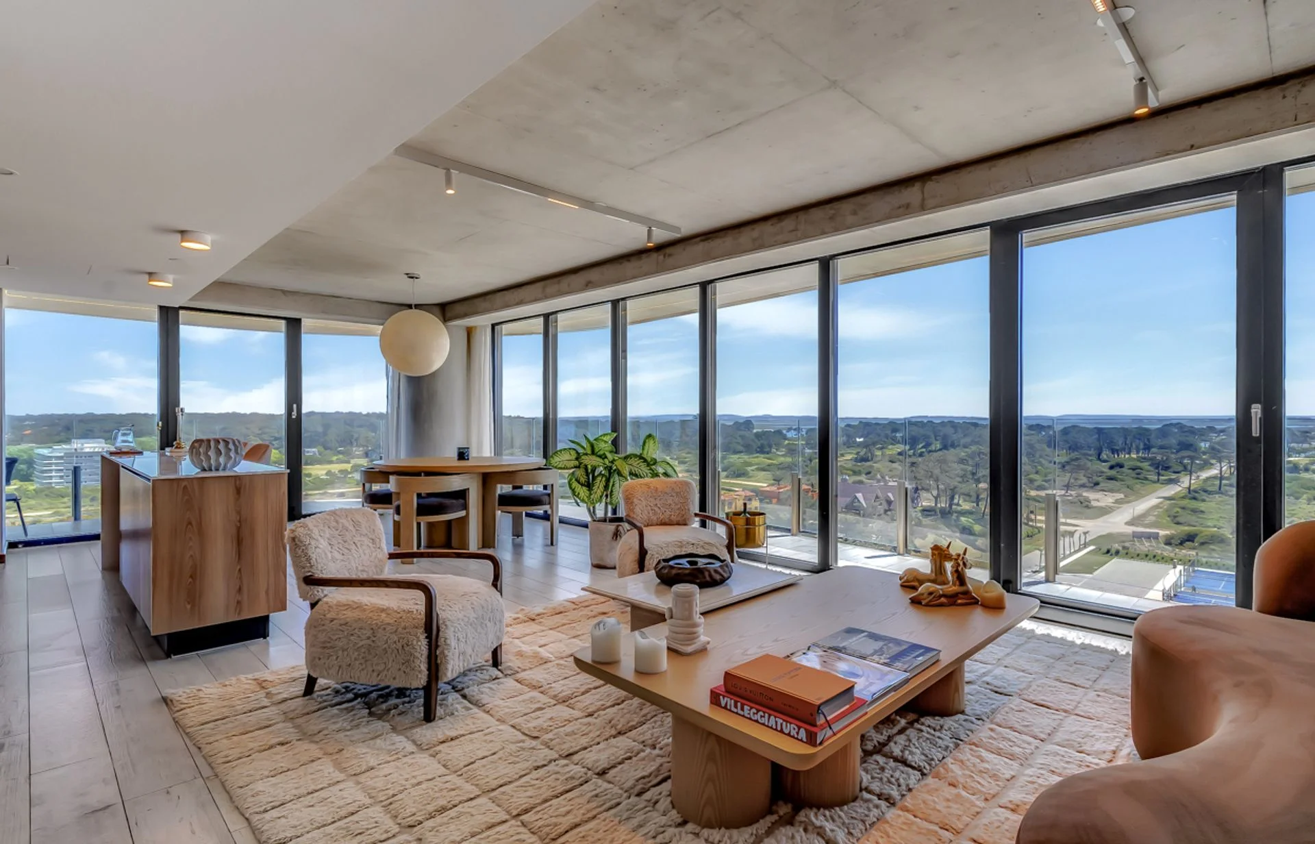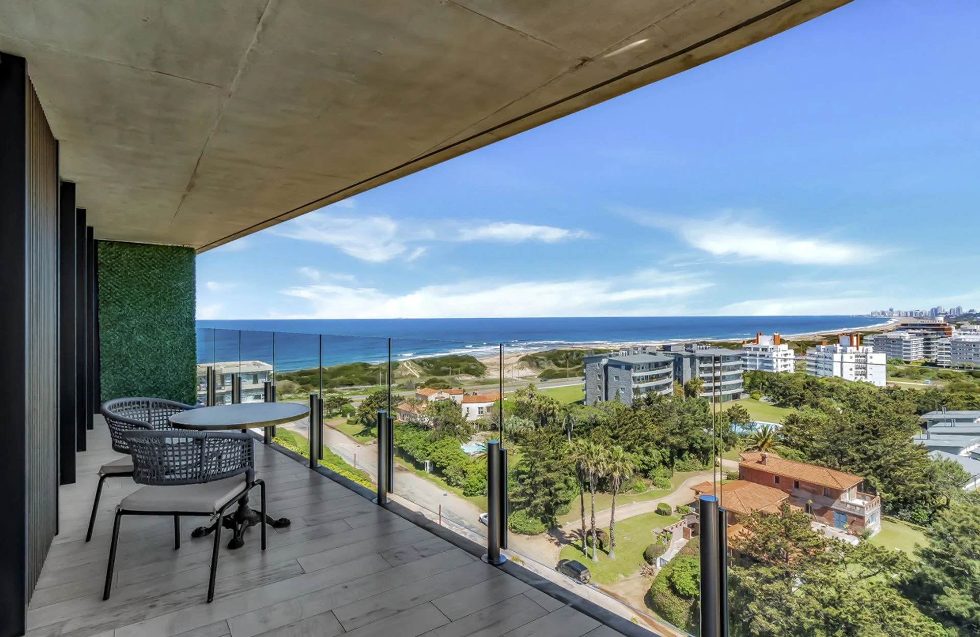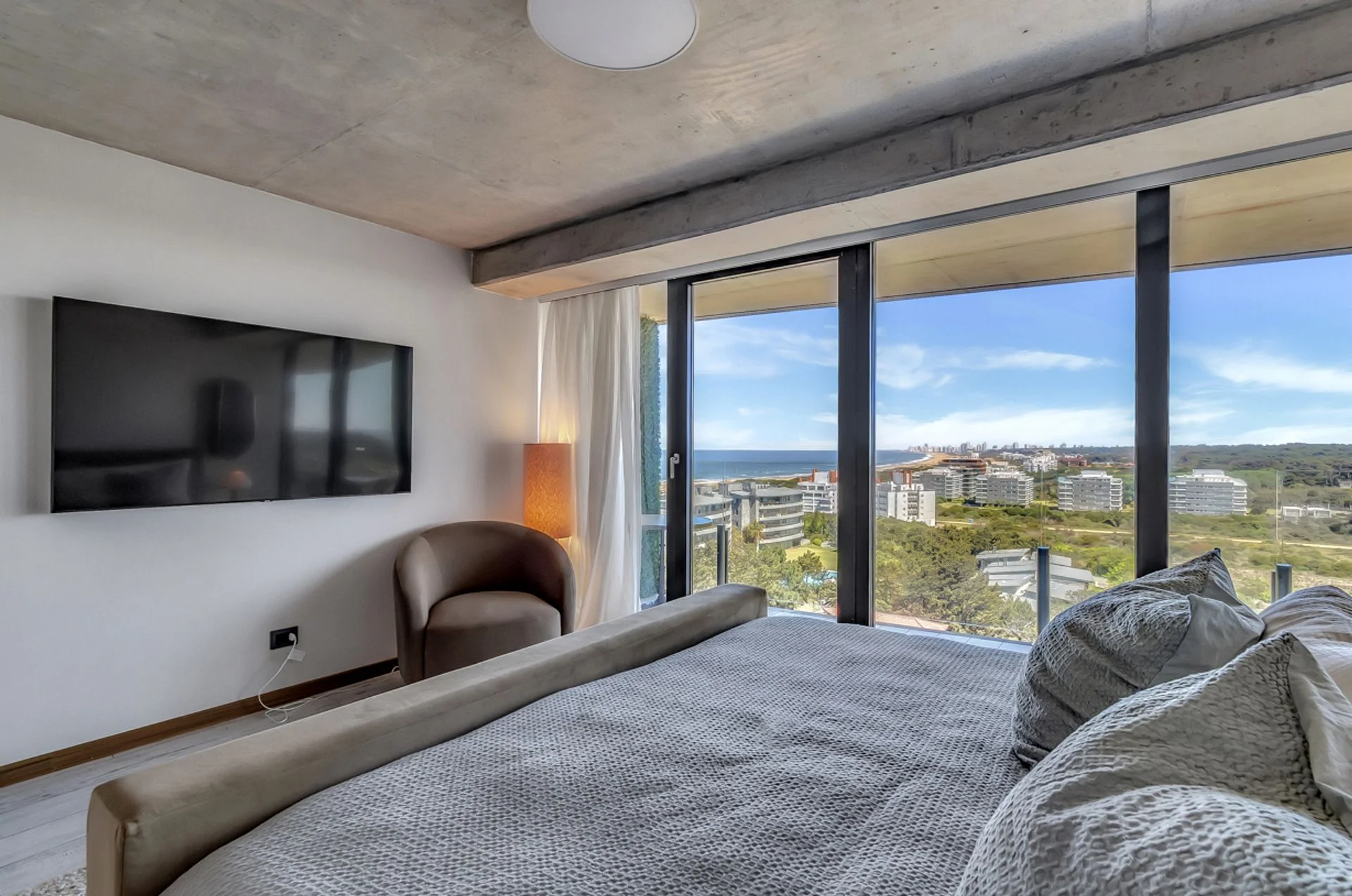Amplia planta de 142,79 m2 totales, con una generosa terraza con una vista espectacular al mar de la Playa Brava, el bosque y el arroyo de La Barra. Tipología 1 dormitorio en suite + DEN (el DEN es un medio dormitorio) + otro baño completo + garage. Cuenta con estar, cocina americana  y comedor integrados, con salida a la terraza, al igual que la suite. Posee equipamiento de alta calidad,  fina decoración y amoblamiento premium.