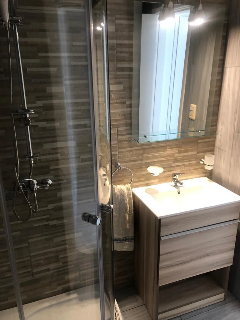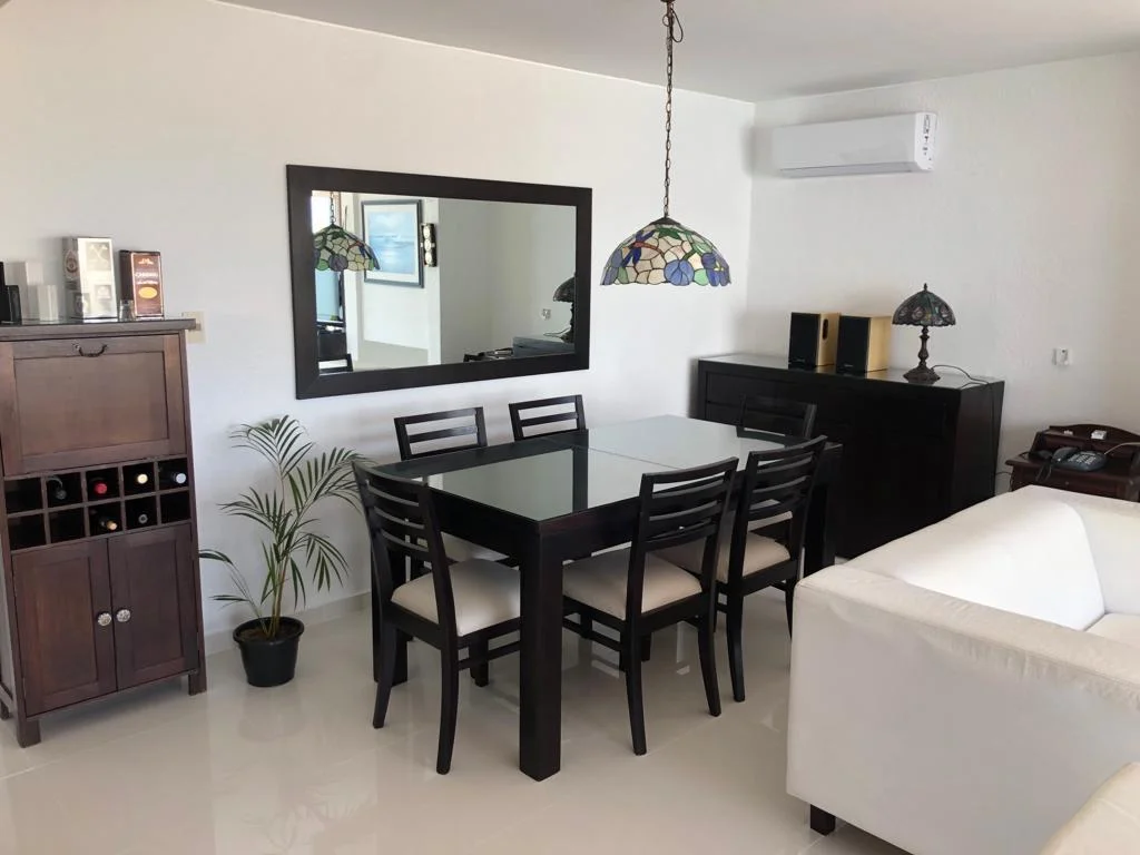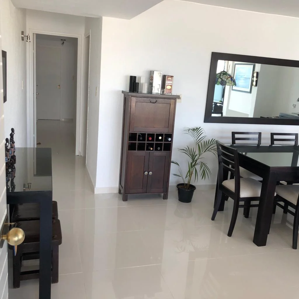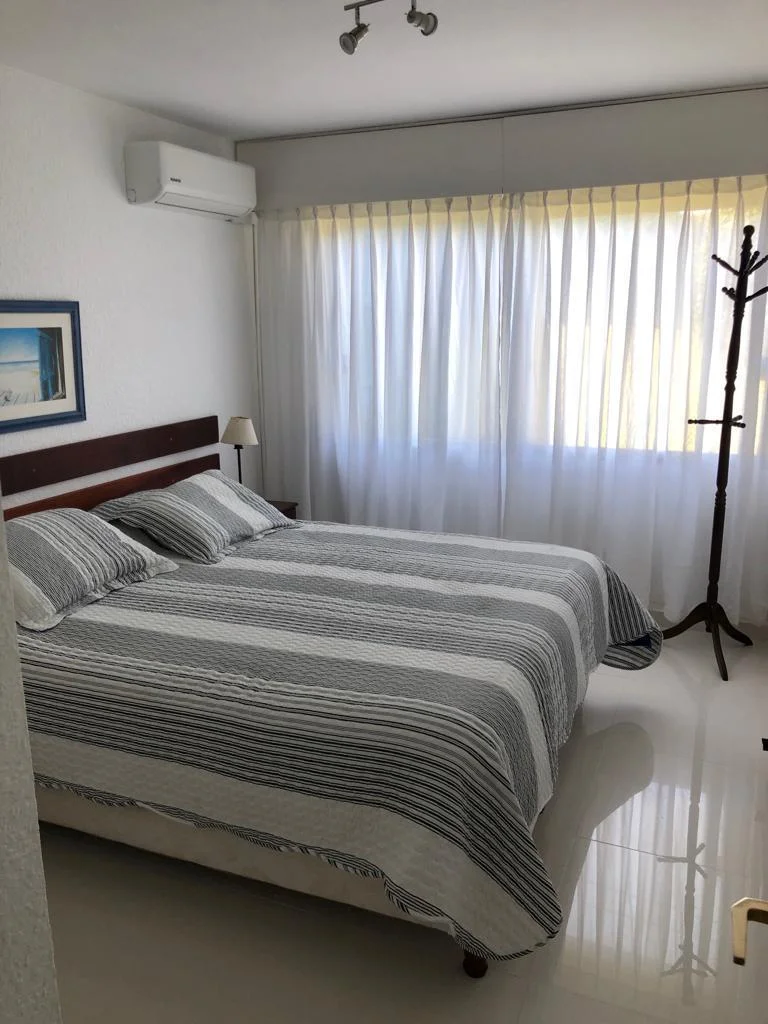 2 bedrooms, 1 bathroom, living-dining room, kitchen. Air conditioning. Daily housekeeping service, beach service, and covered parking. Just steps from the center of Manantiales and Bikini Beach.