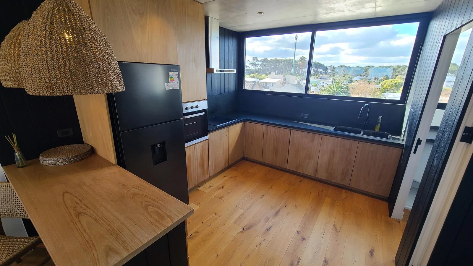 160 m² Ocean view 1 parking space Ground floor: 2 suites Upstairs: Living/dining room with open-plan kitchen. Toilet. Laundry room.
