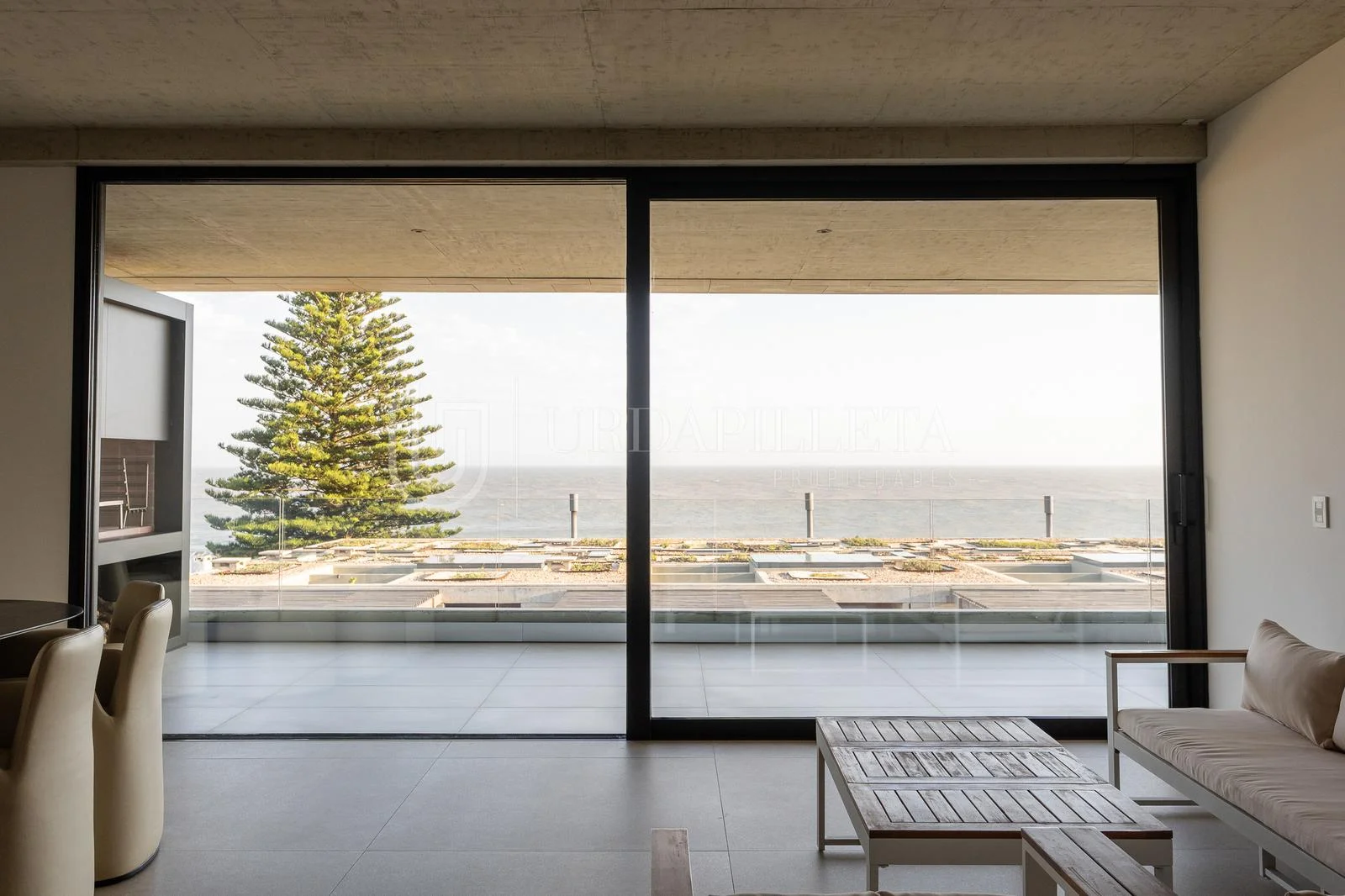 La unidad, ubicada en primer piso, se destaca por su impactante vista abierta al mar, que se integra de forma natural al interior a través de amplios ventanales de piso a techo. El living-comedor, de excelente tamaño, se conecta con una terraza generosa, ideal para disfrutar del paisaje y la brisa marina durante todo el año.