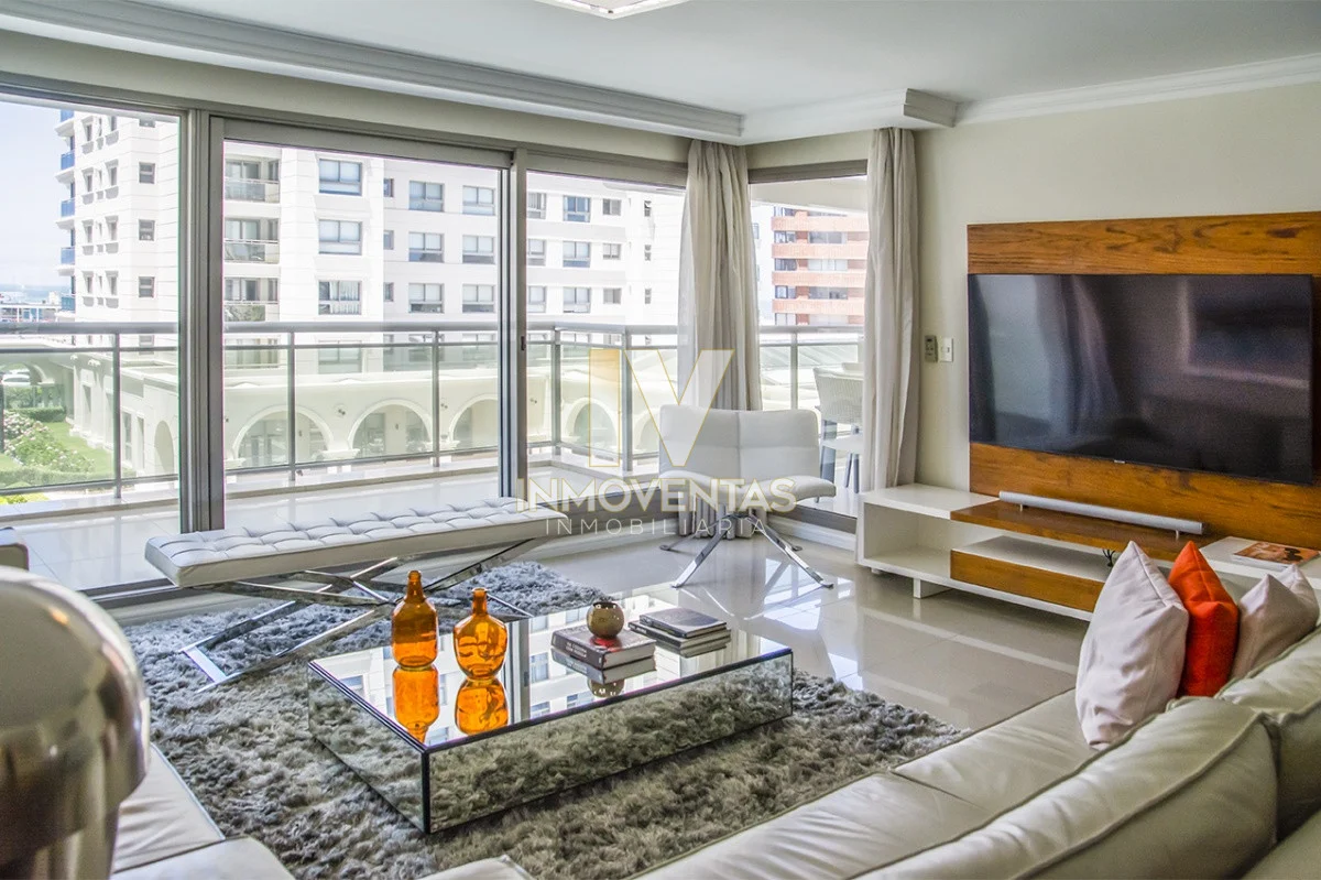 Apartamento de amplios ambientes en Brava - Punta del Este. Gran planta de 191.66 m2. Unidad de 3 dormitorios en suites + toilette, con capacidad para 6 personas , 3 camas, Living-comedor con salida a terraza con agradable vista. Gran cocina definida. Finamente decorado con lindas terminaciones Garage amplio para dos autos. Equipamiento : Lavadero - Anafe - Microondas - Lavarropas - Lavavajilla - Heladera Con Freezer - Tostadora - Cafetera - Aire Acondicionado - T.V. - Horno - Placard en dormitorios - Placard en cocina - Campana - Bañera - El complejo ofrece todos los servicios premium y confort para una agradable estadia y disfrute de sus huespedes. Consulte con nuestros asesores y animate a agendar tu visita. Referencia Interna : Tera-4187