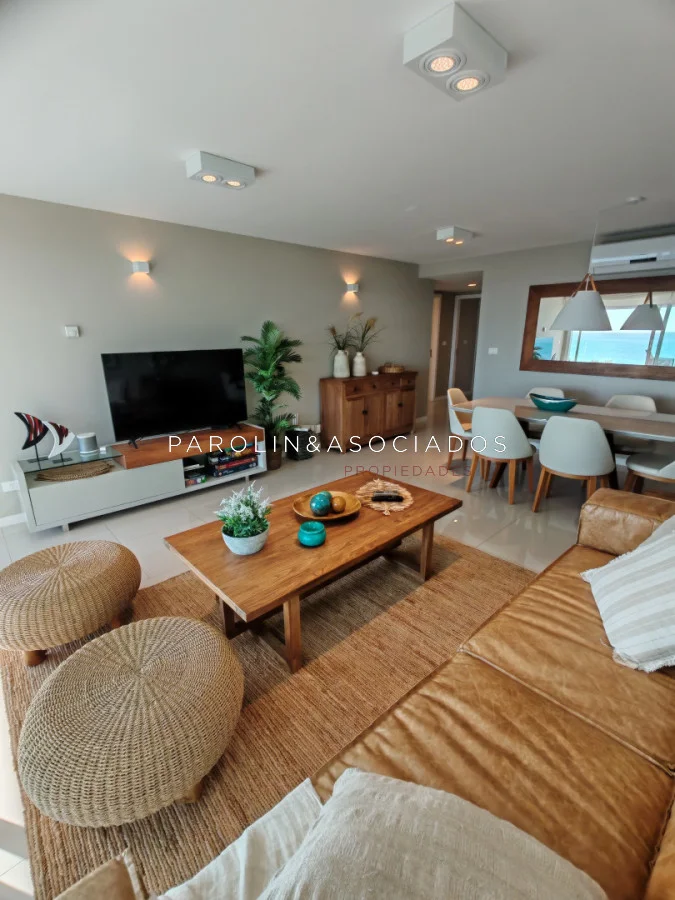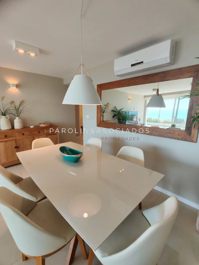 La cocina, completamente definida, se integra a un amplio living comedor, creando un ambiente perfecto para compartir y relajarse. Además, podrás disfrutar de servicios premium que incluyen mucamas y servicio de playa, asegurando que cada día sea una experiencia placentera.