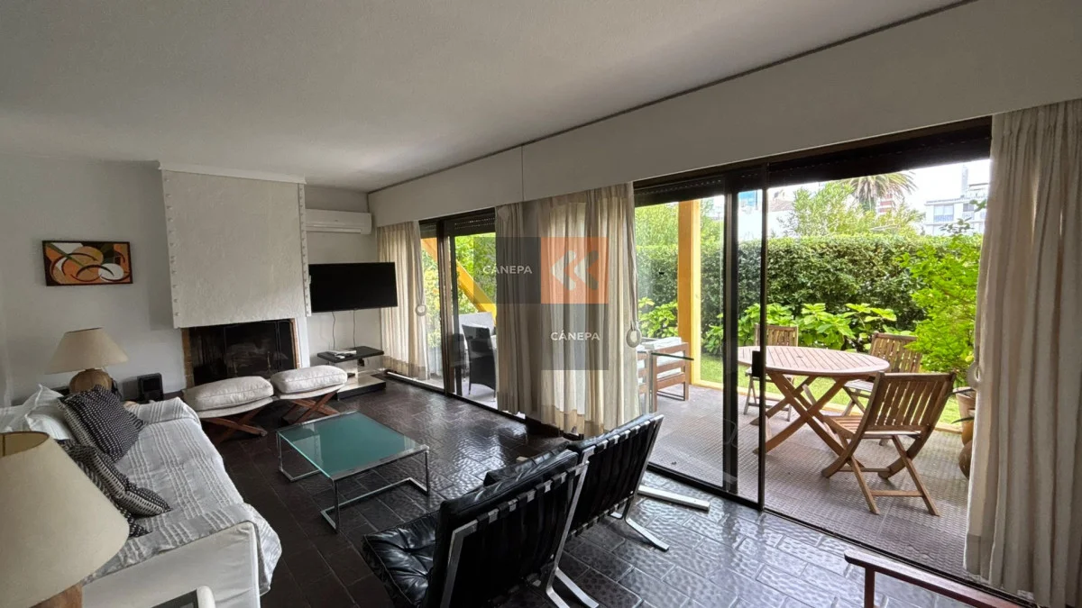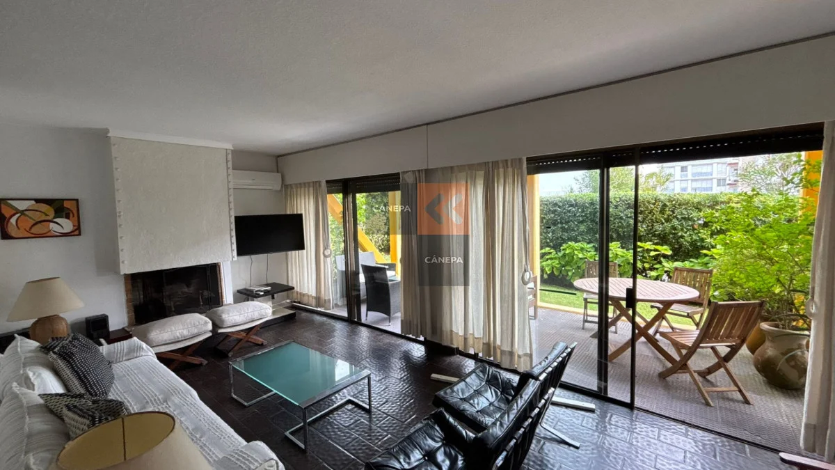 Muy lindo y amplio apartamento en la Península. Espacioso living comedor con salida a jardín propio Parrillero propio 3 dormitorios, dos de ellos en suite, una de las suite principal en desnivel. Cocina Garaje. Cuenta con aire acondicionado en todos los ambientes. Referencia Interna : Tera-17521
