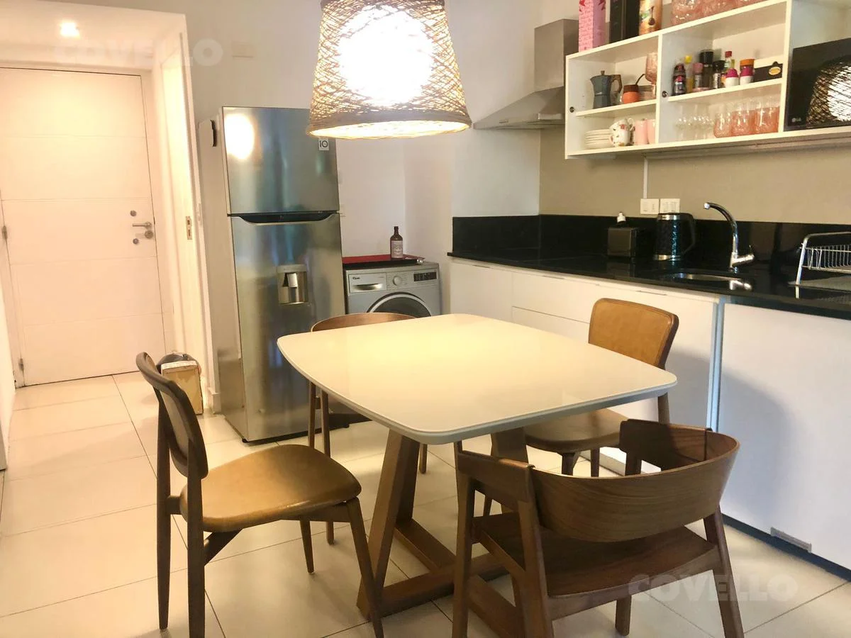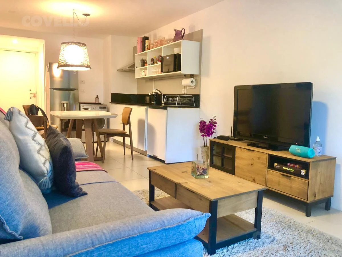 Amplio living comedor con cocina integrada y salida a balcon terraza; un dormitorio y medio; baño completo. Toilette.