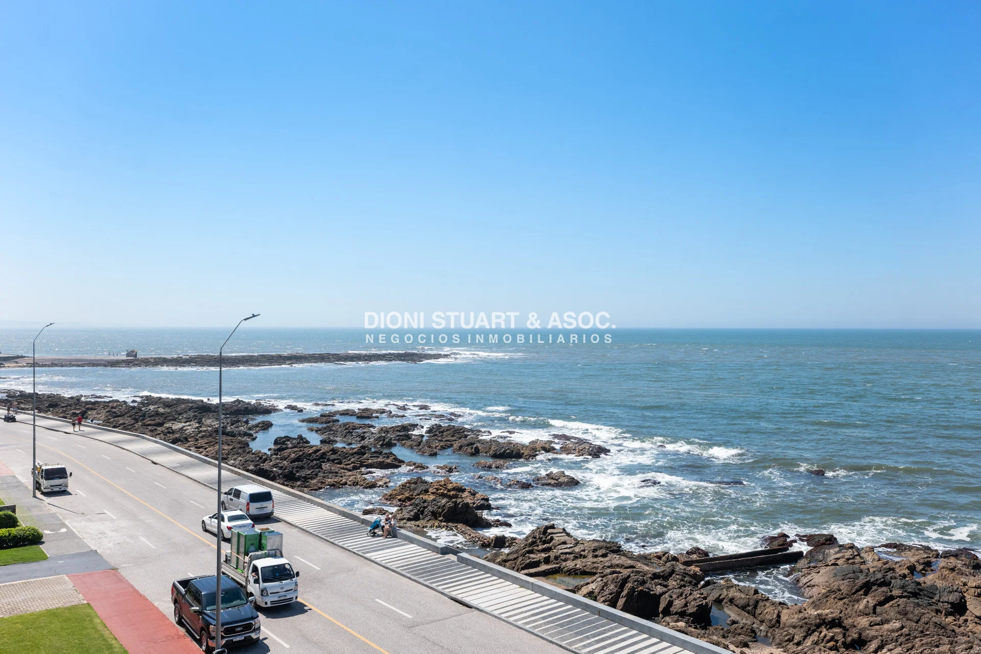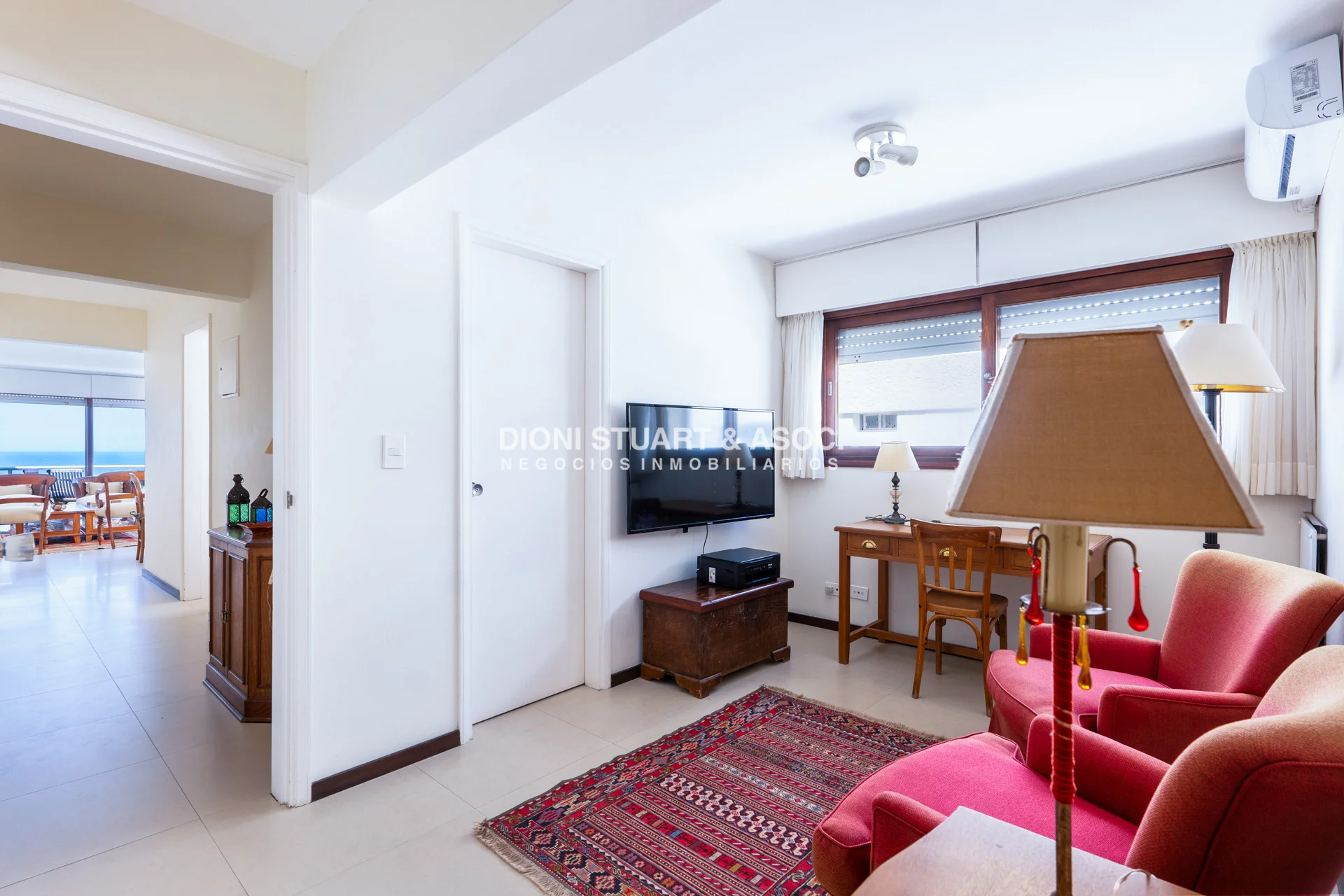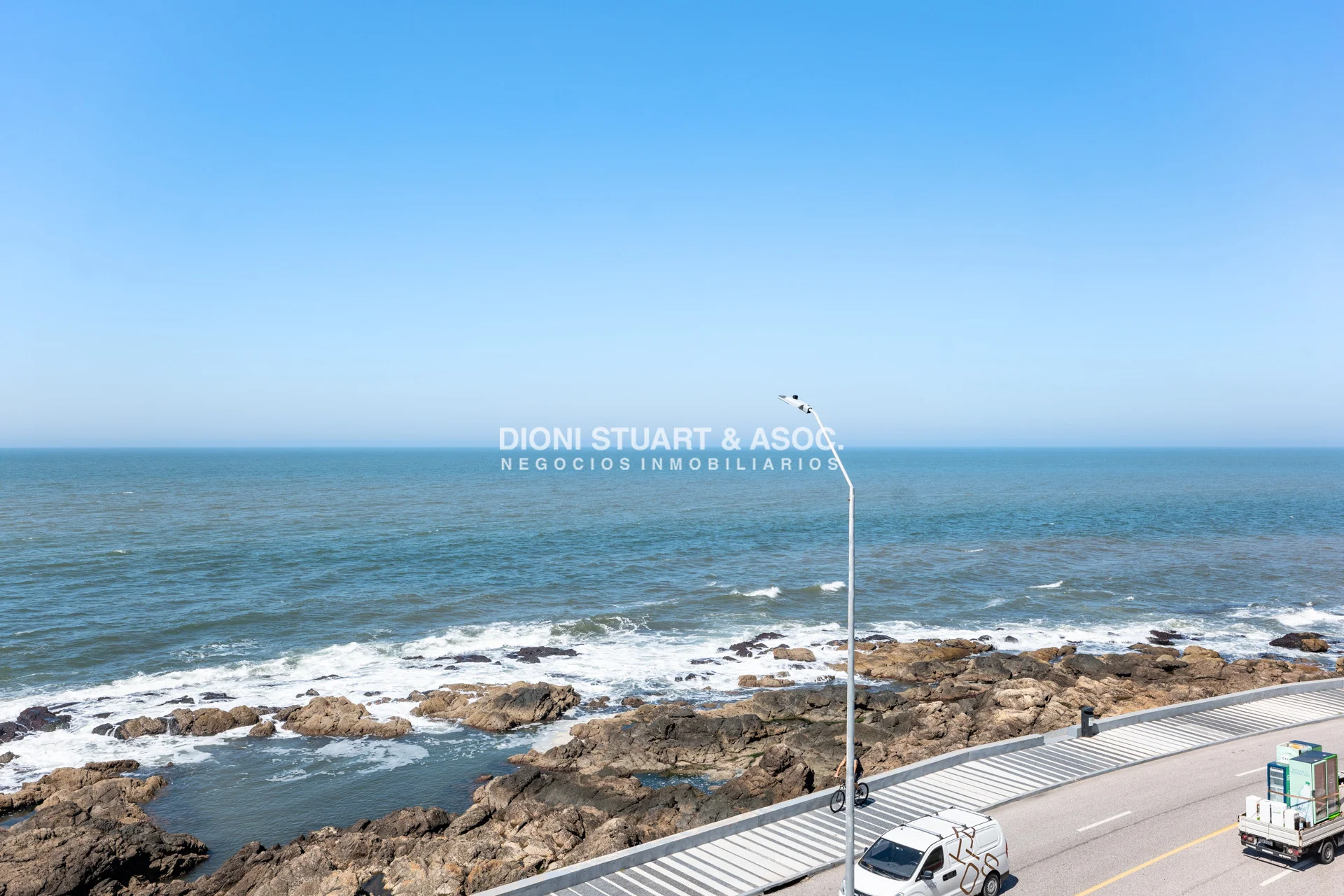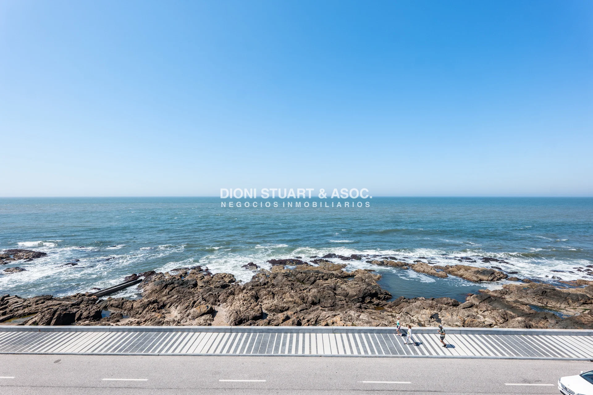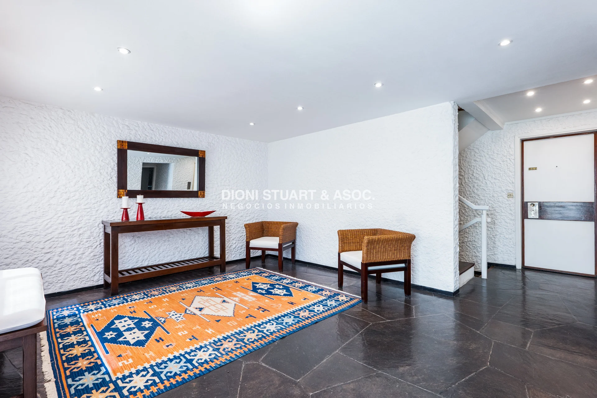 Espectacular departamento semi-piso frente al mar en el edificio Costa Azul en la península. Unidad de 110 m2 totales pasante (recorre el largo del edificio de punta a punta), reciclado completamente al detalle, contando con un amplio living y comedor con estufa hogar, desde donde se accede a un cómodo balcón con parrillero y vista al mar. Su cocina es definida y con lavadero. Hacia el contra-frente del depto encontramos un medio dormitorio con baño (antiguamente era un dormitorio más) y a través de una escalera accedemos a dos dormitorios en suite con placares empotrados. La unidad cuenta con garage. Edificio bien ubicado de poca ocupación con portería.