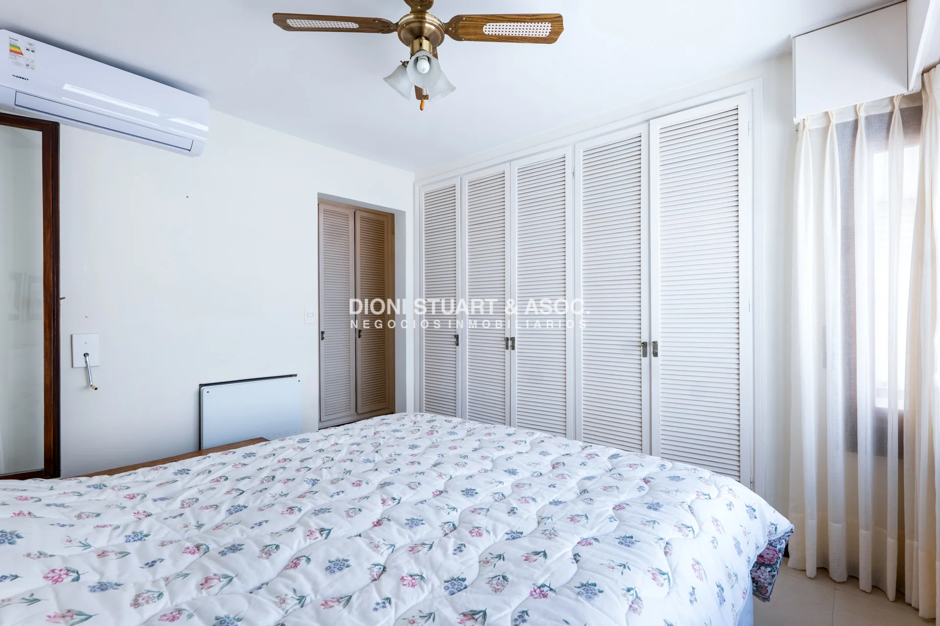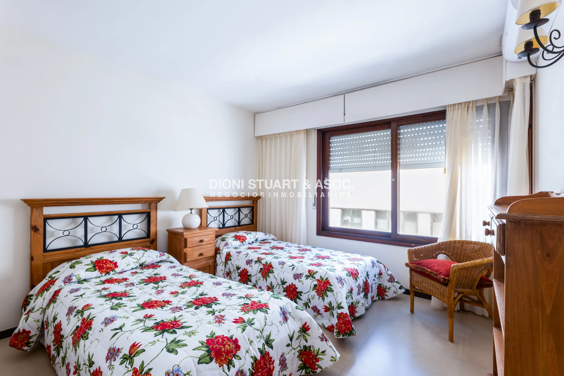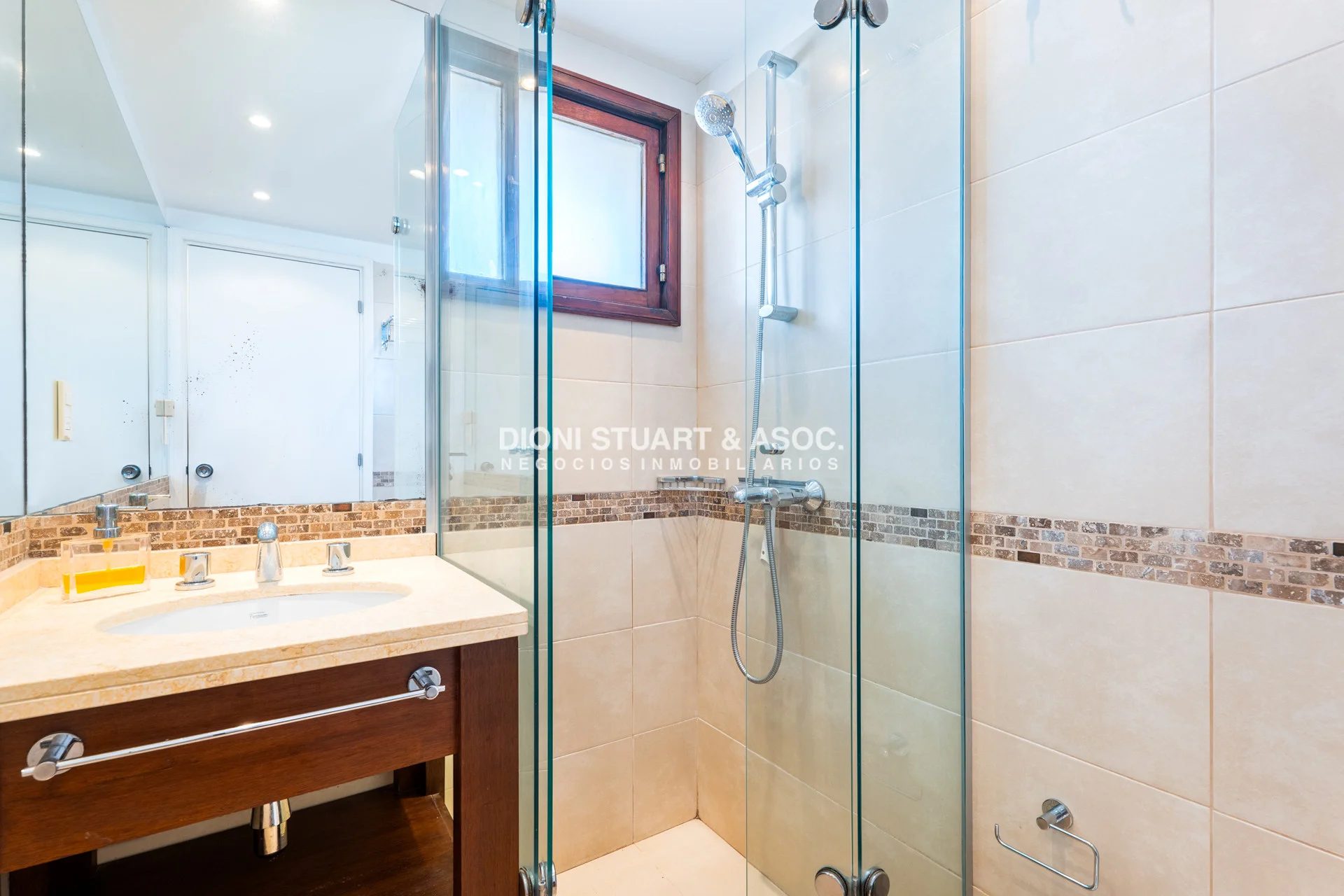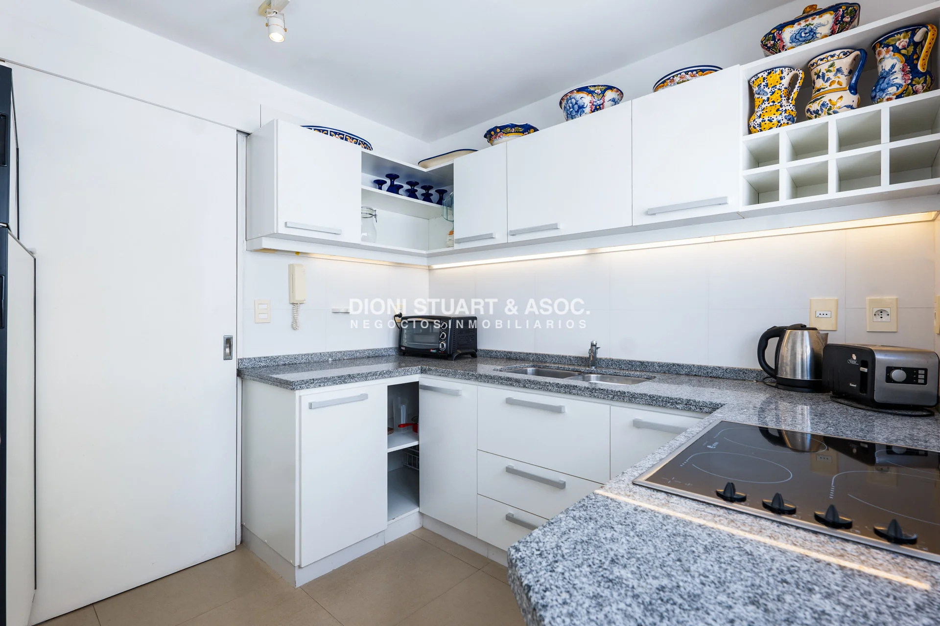 Espectacular departamento semi-piso frente al mar en el edificio Costa Azul en la península. Unidad de 110 m2 totales pasante (recorre el largo del edificio de punta a punta), reciclado completamente al detalle, contando con un amplio living y comedor con estufa hogar, desde donde se accede a un cómodo balcón con parrillero y vista al mar. Su cocina es definida y con lavadero. Hacia el contra-frente del depto encontramos un medio dormitorio con baño (antiguamente era un dormitorio más) y a través de una escalera accedemos a dos dormitorios en suite con placares empotrados. La unidad cuenta con garage. Edificio bien ubicado de poca ocupación con portería.