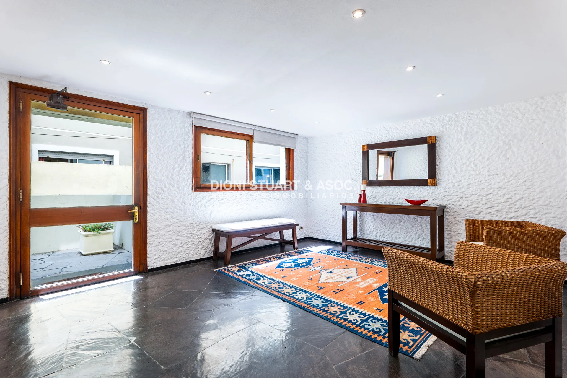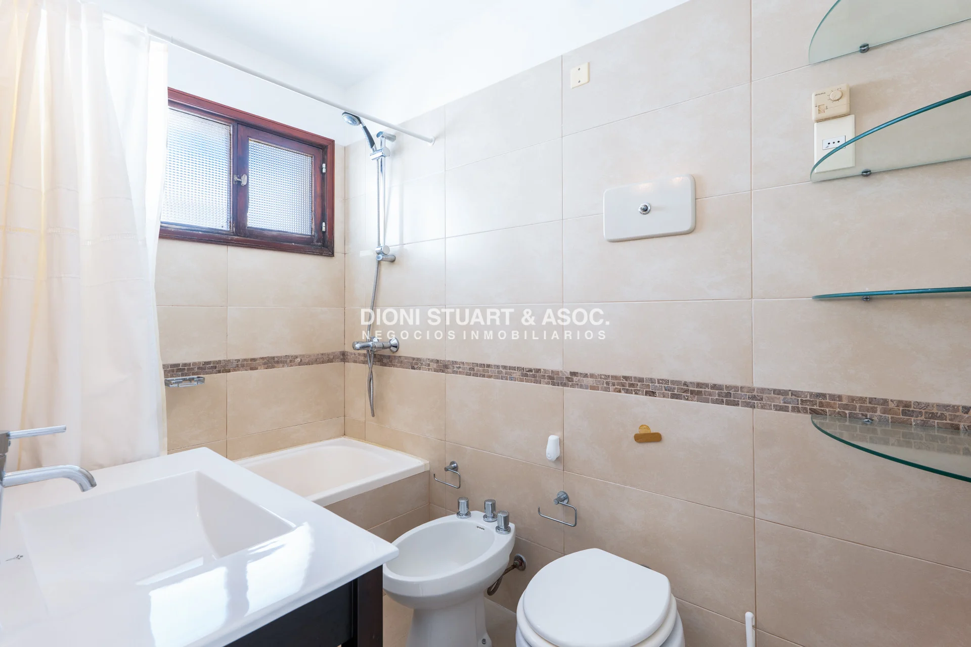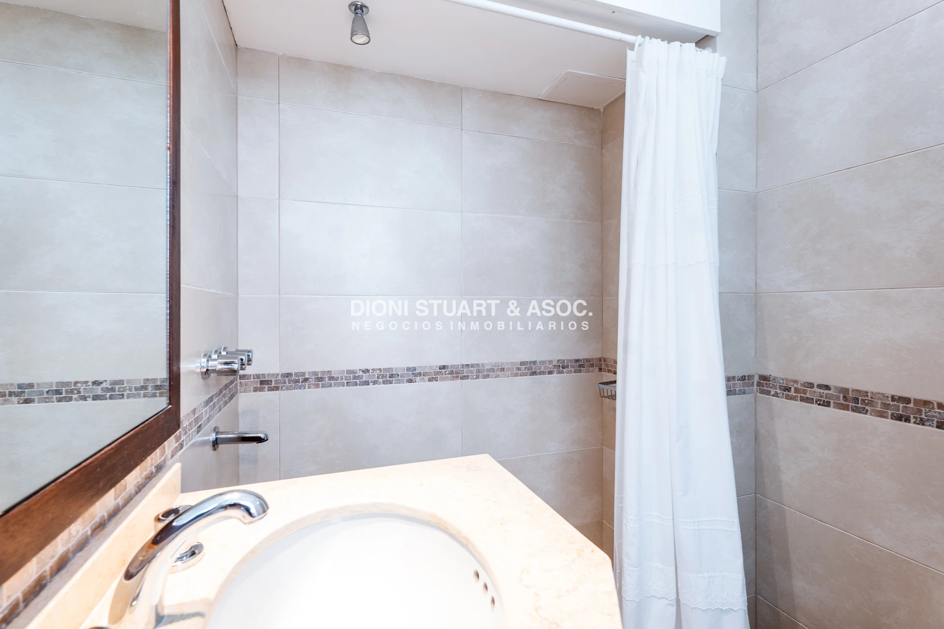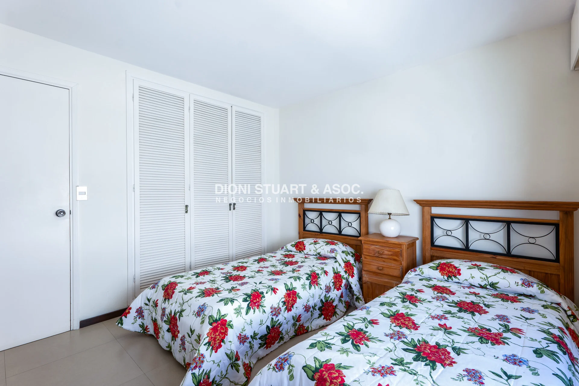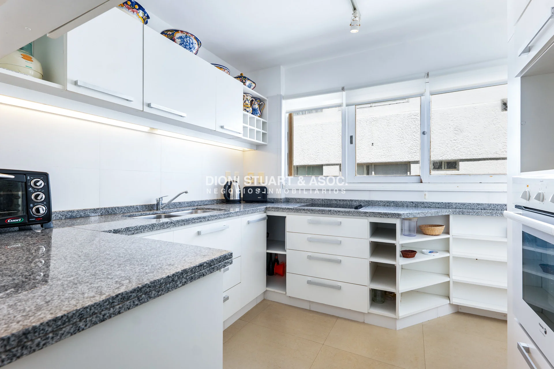 Espectacular departamento semi-piso frente al mar en el edificio Costa Azul en la península. Unidad de 110 m2 totales pasante (recorre el largo del edificio de punta a punta), reciclado completamente al detalle, contando con un amplio living y comedor con estufa hogar, desde donde se accede a un cómodo balcón con parrillero y vista al mar. Su cocina es definida y con lavadero. Hacia el contra-frente del depto encontramos un medio dormitorio con baño (antiguamente era un dormitorio más) y a través de una escalera accedemos a dos dormitorios en suite con placares empotrados. La unidad cuenta con garage. Edificio bien ubicado de poca ocupación con portería.