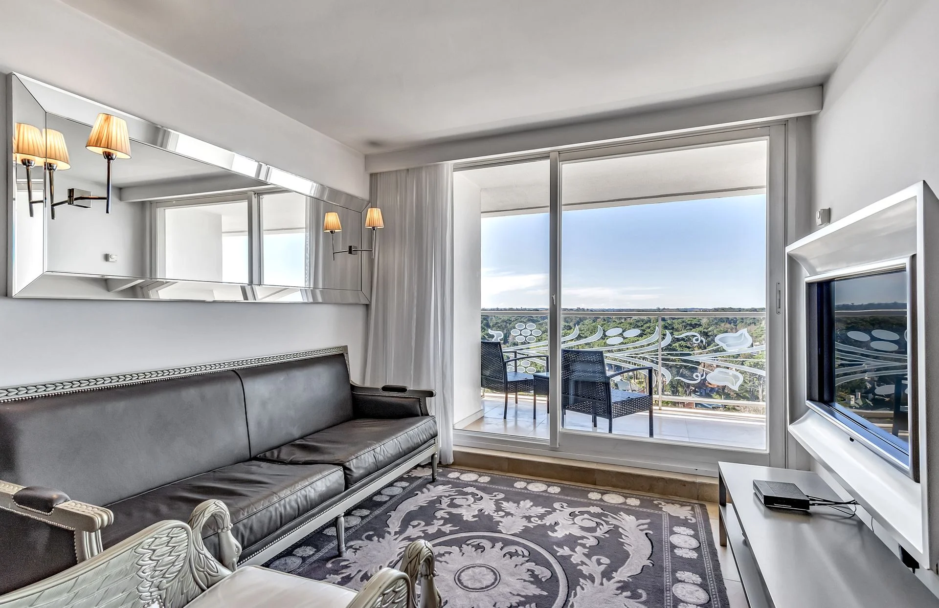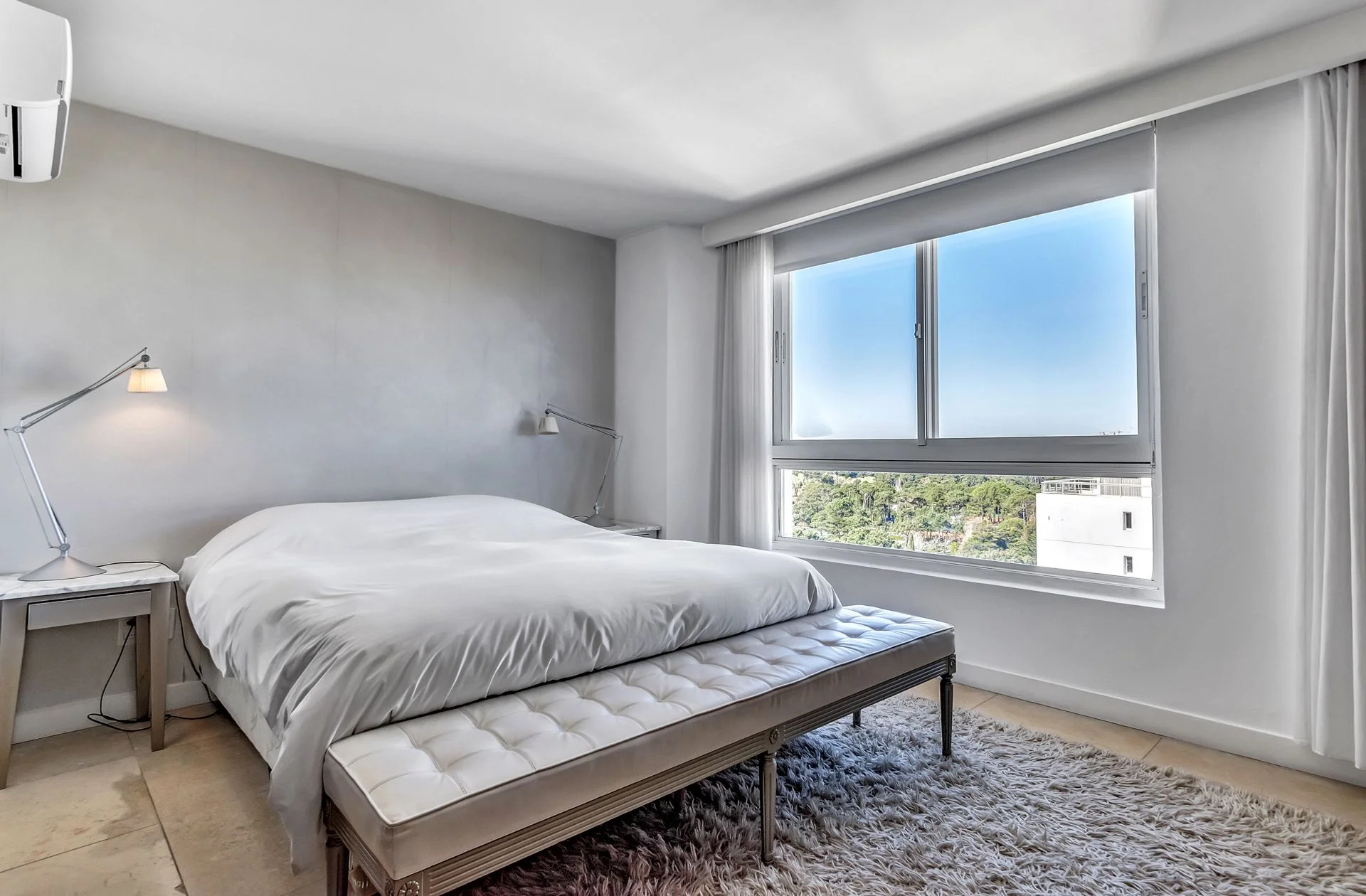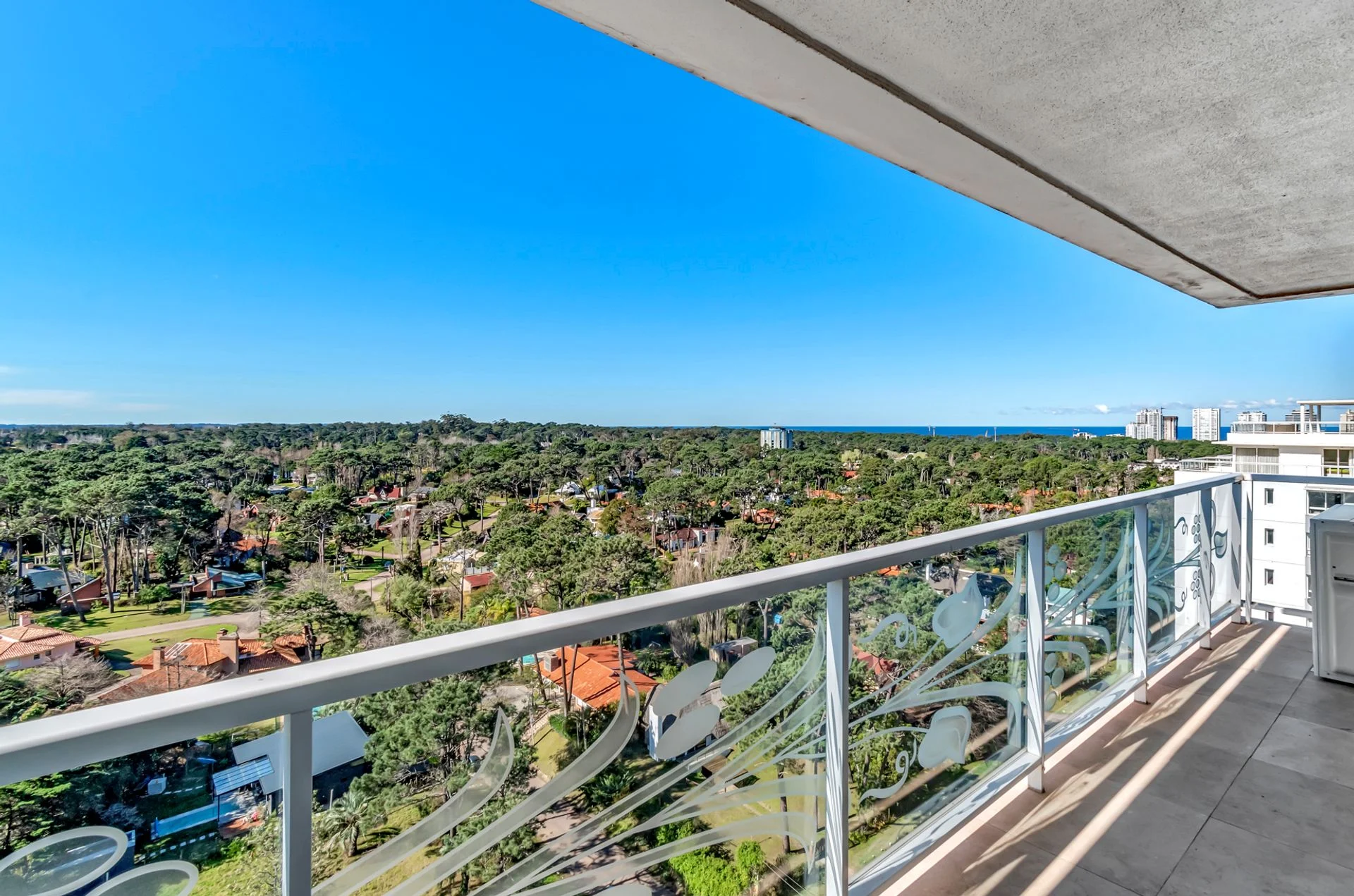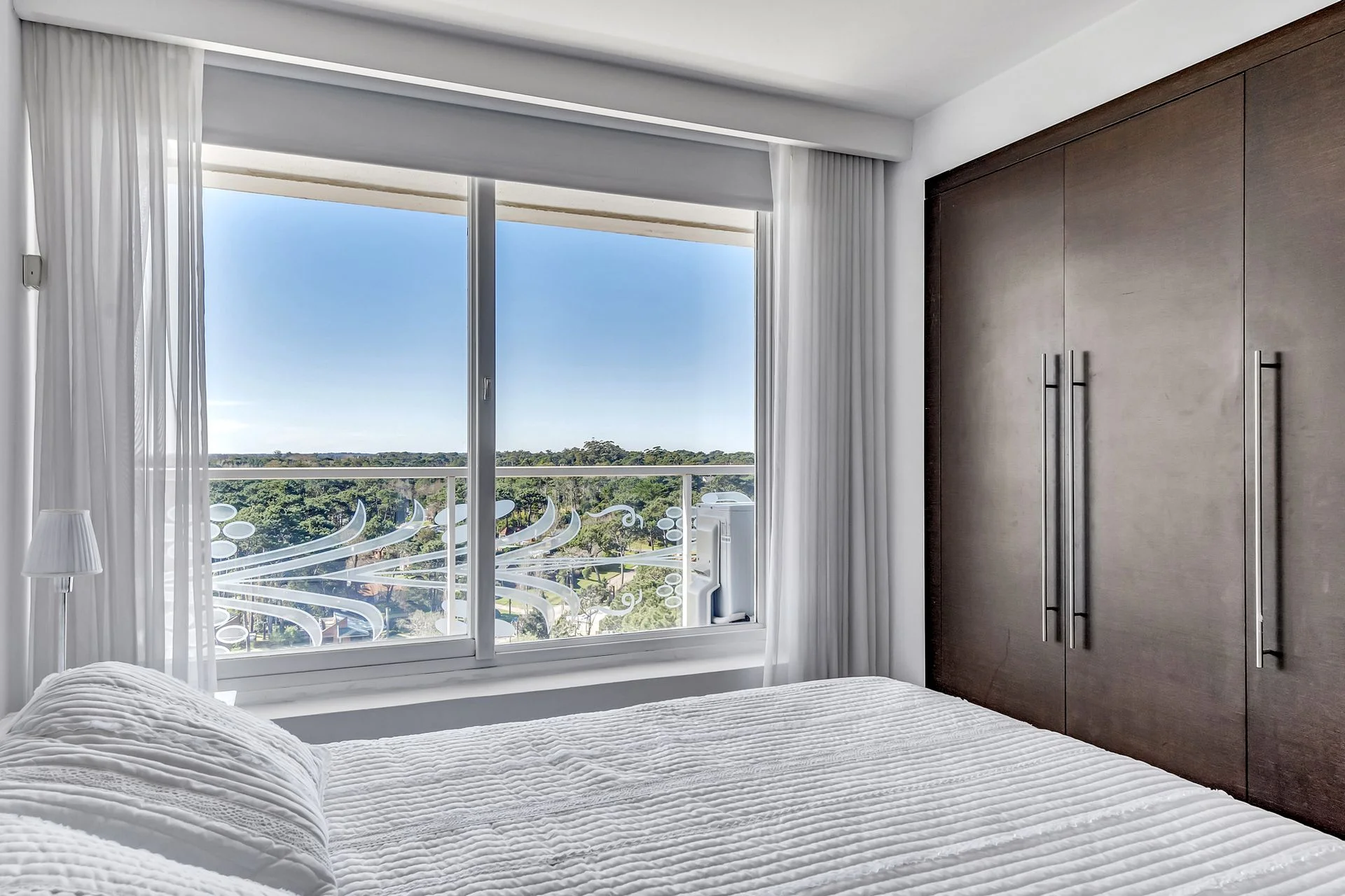 En Exclusividad: Excelente apartamento en venta en Torre YOO Punta del Este, piso alto. Finamente amueblado con diseño de Philippe Starck, categoría Luxury, con pisos y terminaciones de baños en mármol. Posee living comedor con aire acondicionado, con salida a terraza, con vista a la Playa Brava y el bosque. Cocina semintegrada completamente equipada. Tiene 2 dormitorios y 2 baños completos (principal en suite). Uno de ellos con vista a la Brava y el bosque, y la suite con vista al bosque, la Brava y el Puerto. Cuenta con calefacción por aire acondicionado frío-calor en todos los ambientes y losa radiante sectorizada. No tiene garage.