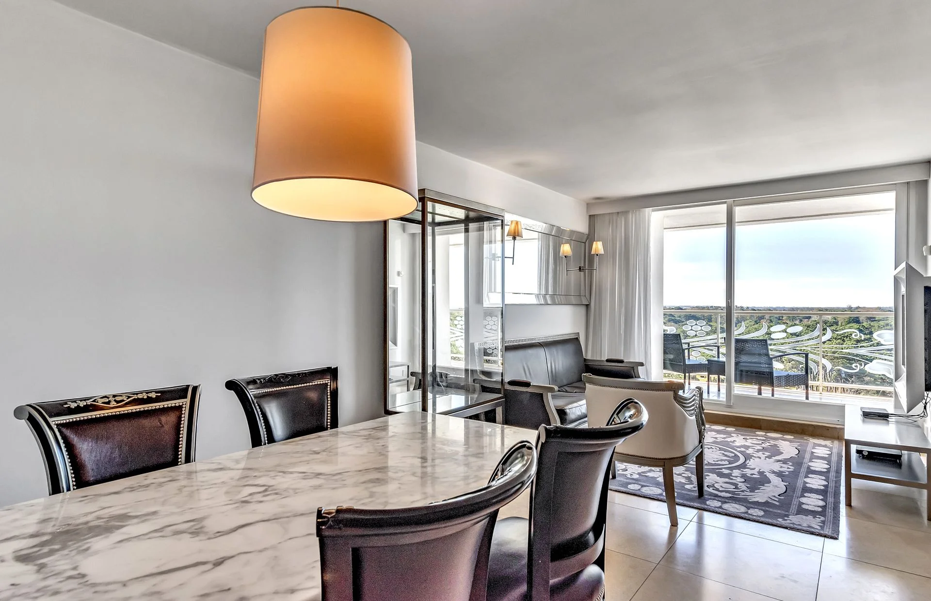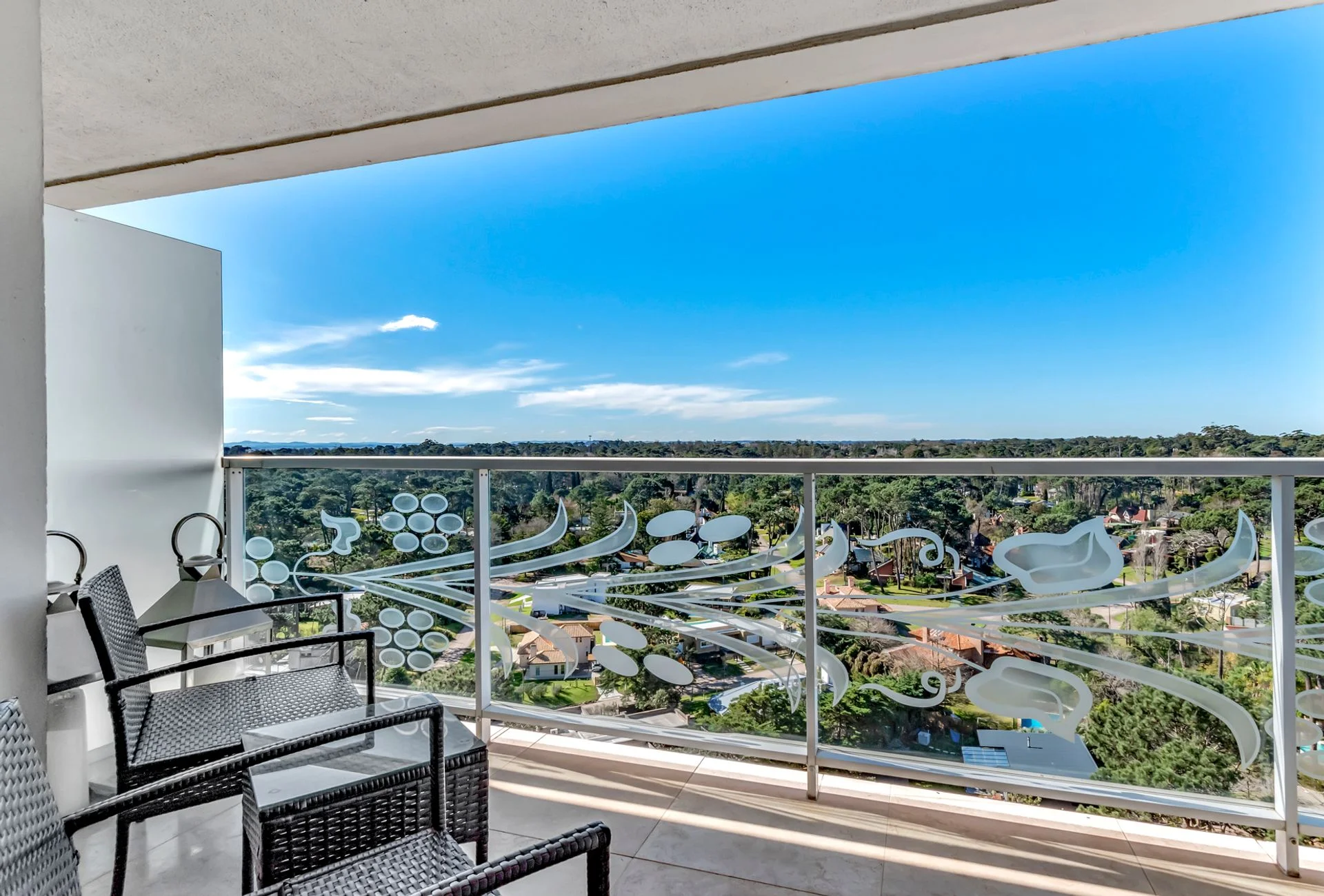 En Exclusividad: Excelente apartamento en venta en Torre YOO Punta del Este, piso alto. Finamente amueblado con diseño de Philippe Starck, categoría Luxury, con pisos y terminaciones de baños en mármol. Posee living comedor con aire acondicionado, con salida a terraza, con vista a la Playa Brava y el bosque. Cocina semintegrada completamente equipada. Tiene 2 dormitorios y 2 baños completos (principal en suite). Uno de ellos con vista a la Brava y el bosque, y la suite con vista al bosque, la Brava y el Puerto. Cuenta con calefacción por aire acondicionado frío-calor en todos los ambientes y losa radiante sectorizada. No tiene garage.