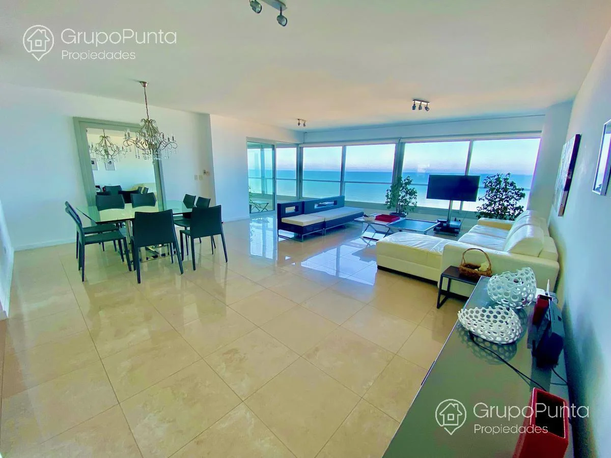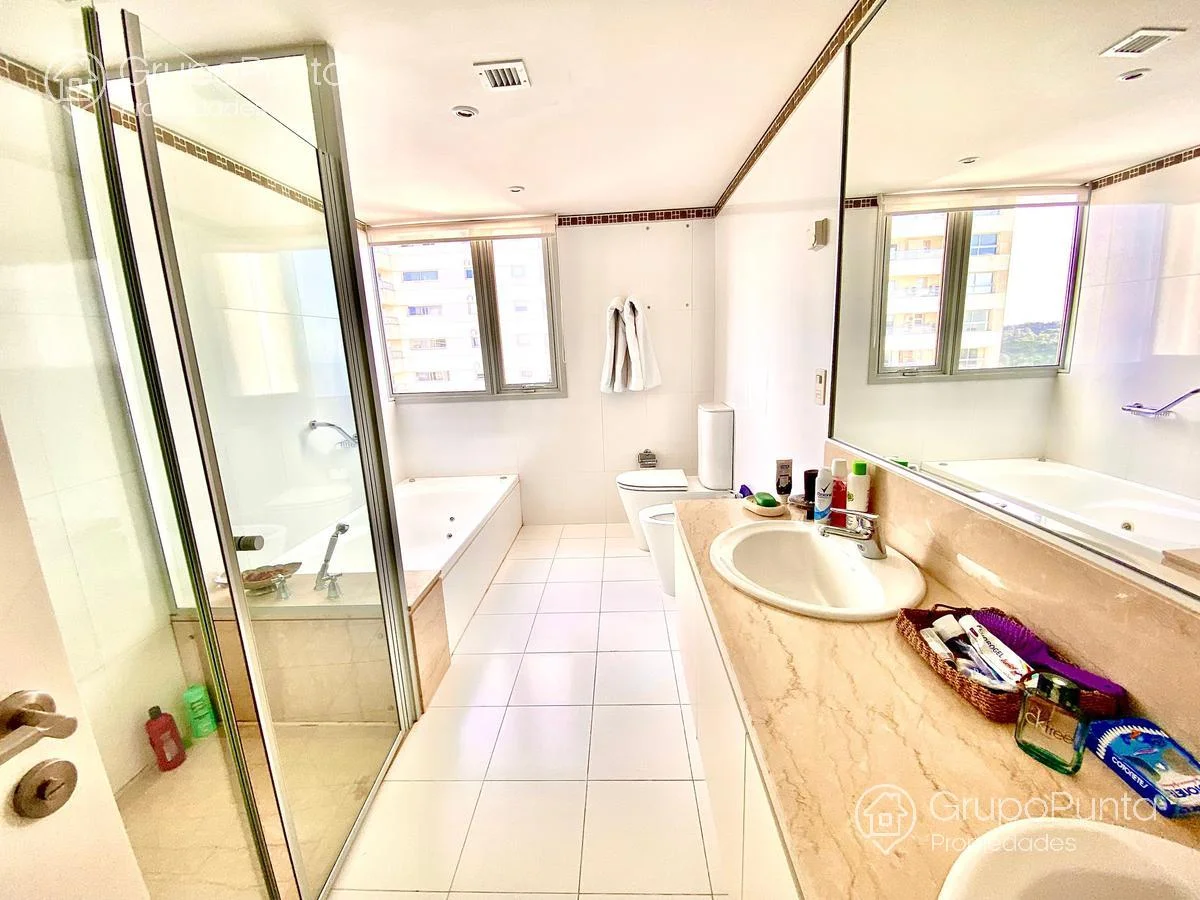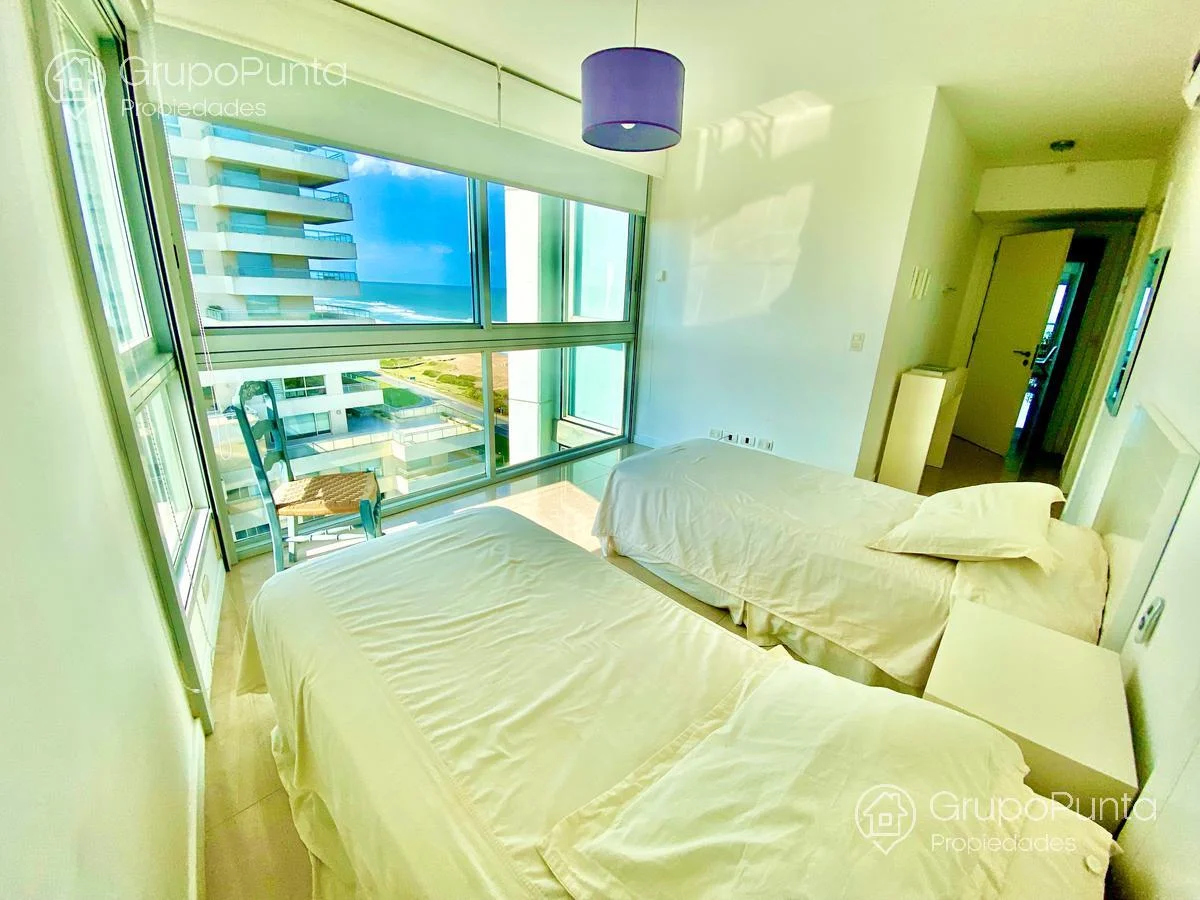 Hermoso Departamento en Le Parc!Venta y alquiler de departamento esquinero en torre de categoría de playa Brava.Ubicado sobre primera fila de Playa, se encuentra este departamento de amplio metraje y generosos ambientes con vista plena al Mar e Isla de Lobos.Cuenta con tres dormitorios en suite con amplios placares mas dependencia de servicio con baño, cocina muy cómoda y muy bien equipada. Living comedor con hermosa vista y luminosidad que conecta con terraza integrada al dormitorio principal.Losa radiante sectorizada y aires acondicionados fríocalor en todas la habitaciones.Garaje en sub suelo.Variedad de amenities: servicio de mucamas, servicio de playa en temporada alta, piscinas abiertas semi climatizadas, piscina cerrada climatizada con jacuzzys, sala de masajes, saunas húmedo y seco, gym, cancha, snack bar en temporada alta, kids club con extenso servicio de recreación en temporada alta, sala de adultos, salón multi usos para eventos, servicio de mantenimiento, recepción 24 horas y más...Por mas informacion : PROP1508Temporada 2023