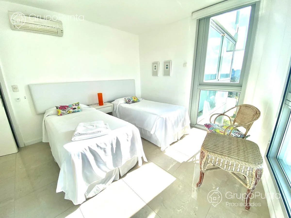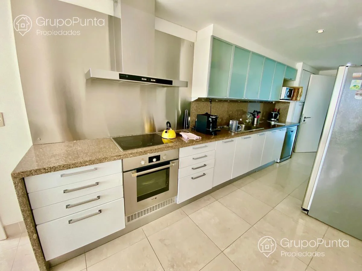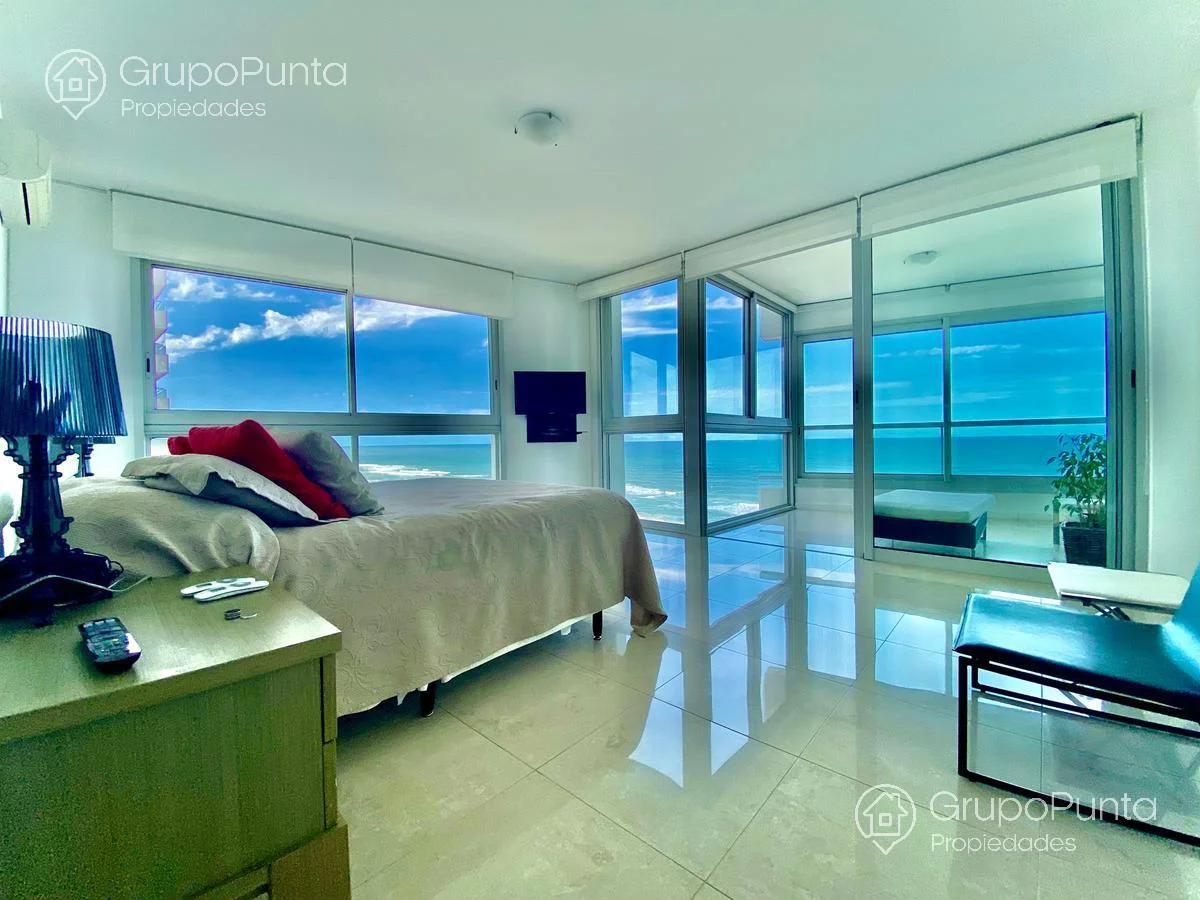 Hermoso Departamento en Le Parc!Venta y alquiler de departamento esquinero en torre de categoría de playa Brava.Ubicado sobre primera fila de Playa, se encuentra este departamento de amplio metraje y generosos ambientes con vista plena al Mar e Isla de Lobos.Cuenta con tres dormitorios en suite con amplios placares mas dependencia de servicio con baño, cocina muy cómoda y muy bien equipada. Living comedor con hermosa vista y luminosidad que conecta con terraza integrada al dormitorio principal.Losa radiante sectorizada y aires acondicionados fríocalor en todas la habitaciones.Garaje en sub suelo.Variedad de amenities: servicio de mucamas, servicio de playa en temporada alta, piscinas abiertas semi climatizadas, piscina cerrada climatizada con jacuzzys, sala de masajes, saunas húmedo y seco, gym, cancha, snack bar en temporada alta, kids club con extenso servicio de recreación en temporada alta, sala de adultos, salón multi usos para eventos, servicio de mantenimiento, recepción 24 horas y más...Por mas informacion : PROP1508Temporada 2023