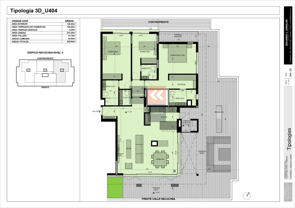 Departamento Pent house con amplia terraza Fluida distribución que integra living, comedor logrando cómoda salida a la terraza 3 dormitorios en suite siendo el principal con salida a la terraza Toilette Cocina integrada con salida a terraza lavadero y al parrillero Amenities del edificio: - Gimnasio totalmente equipado. - 2 piscinas, una abierta con espacio de deck para solárium y otra cubierta y climatizada. - Espacio de Barbacoa con parrillero. FORMA DE PAGO : * SEÑA U$S 5.000 Compromiso : 25% Durante la Obra : 25% en cuotas a convenir Saldo a la ocupación de 50% Fecha de entrega probable Julio 2027 Referencia Interna : Tera-17512