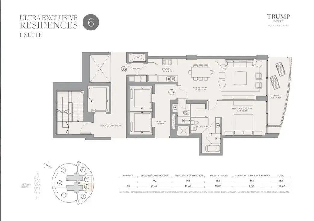 Excelente departamento de un dormitorio en suite, en la torre de lujo absoluto y más exclusiva de Punta del Este Trump Tower.