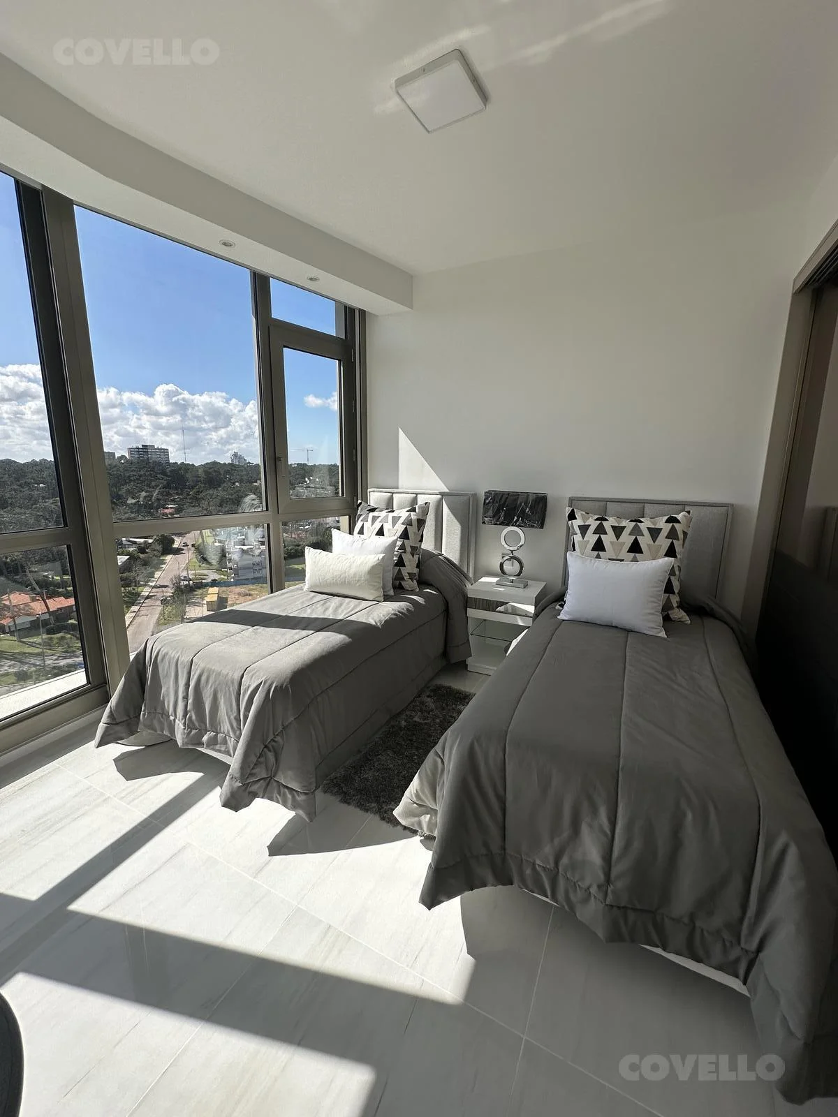 Hermoso Dpto. de 3 dormitorios y servicio a estrenar en edificio de lujo, está amueblado con equipamiento sumamente fino y tiene unas hermosas vistas a la playa mansa.