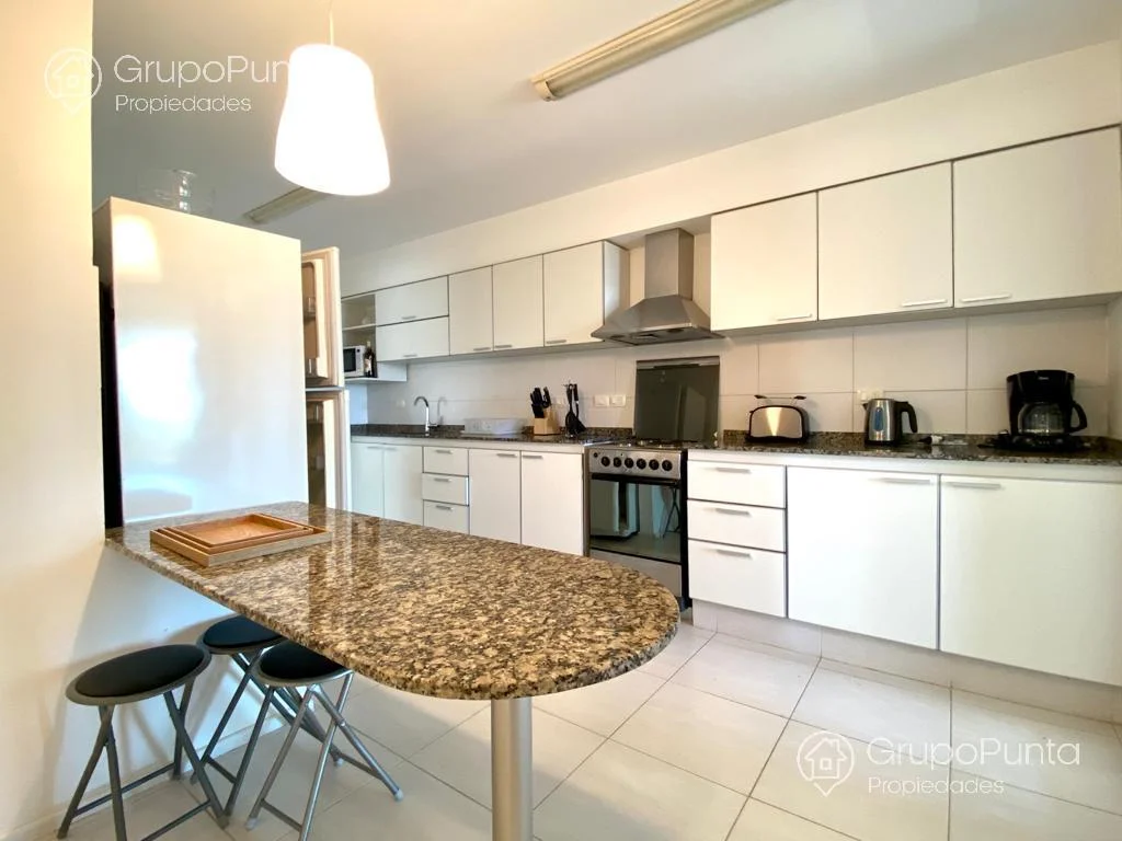 3 dormitorios, 4 baños (2 en suite), living comedor, cocina amplia, terraza lavadero y balcón con vista al mar.