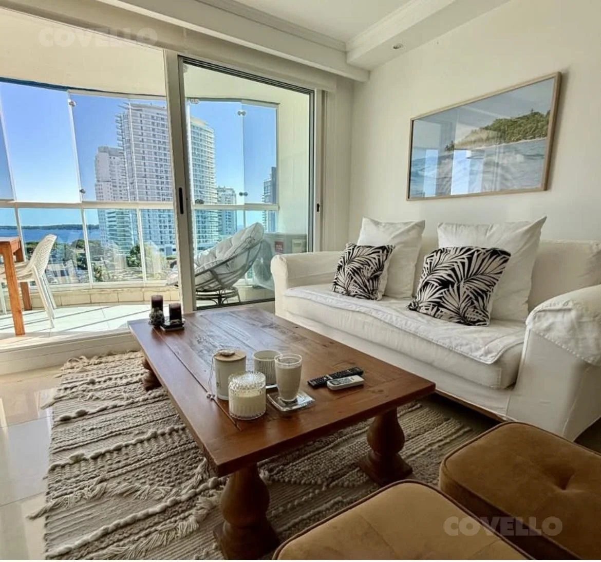 Excelente departamento con vista al mar. Amplio living comedor con salida a la terraza con parrillero; dos dormitorios y medio, 2 en suite, principal con vestidor y salida a balcón; cocina; toilette, dormitorio chico con cama individual .. Garage.