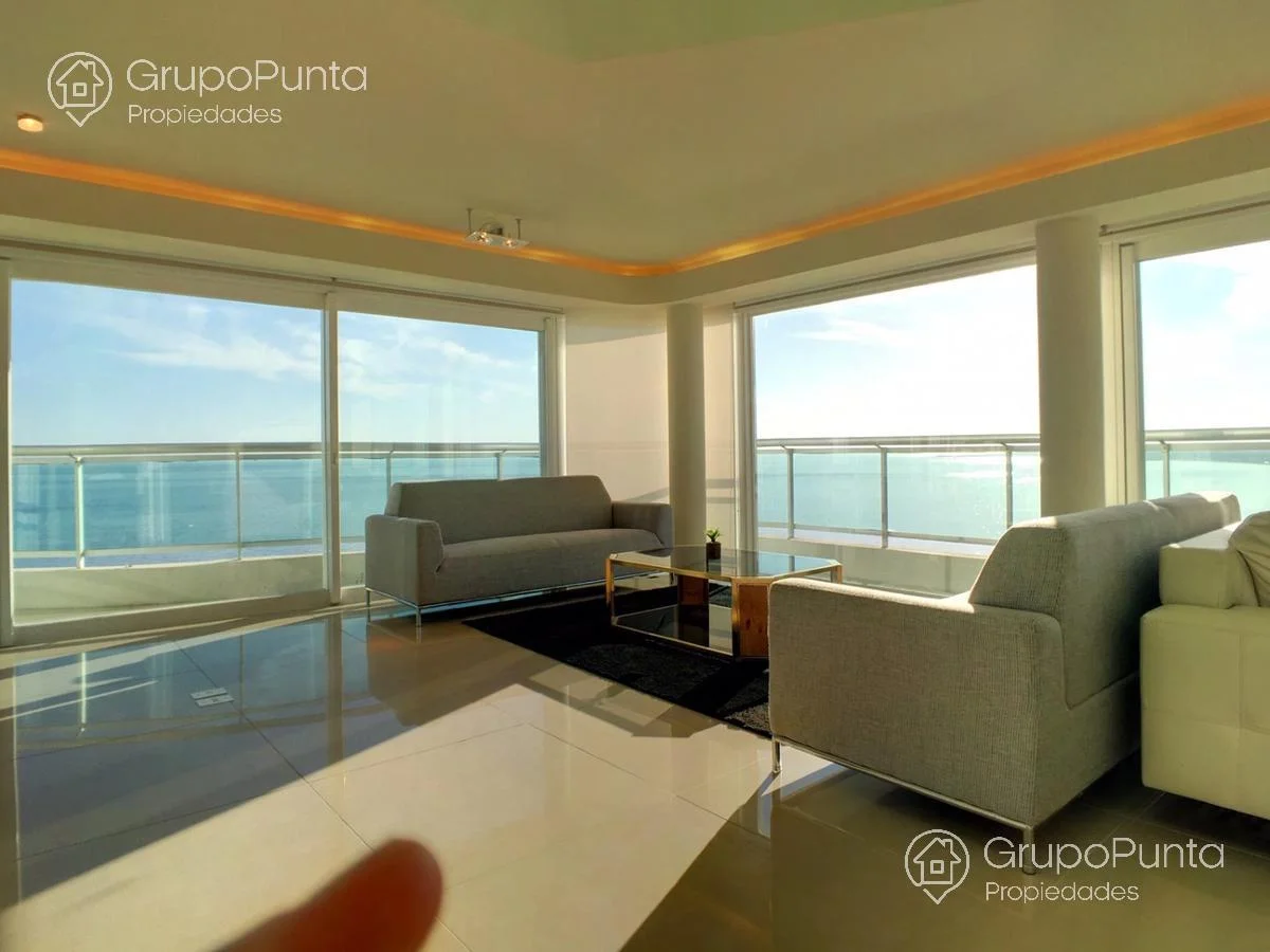 Espectacular departamento Penthouse triplex frente al mar en alquiler + venta | playa mansa.Penthouse en Primera linea de playa mansa.Consta de 3 Niveles, todos con una increible vista al mar.Cuenta con 3 Dormitorios amplios en suite con hidromasaje mas dependencias de servicio completo.Gran living de doble altura con hogar y comedor, cocina totalmente equipada , lavadero. 3er nivel con una barbacoa y piscina propia.2 cocheras .Ascensor interno.Apartamento en torre de gran categoría con todos los amenities.AMENITIES:3 Piscinas climatizadas.Zona cubierta de Spa con gimnasio, sauna, zona de masajes y piscina cubierta.2 canchas de tenis.Cancha de futbol.Pista aerobica de 500 mts.Zona de práctica de gol.Salón de fiestas.Microcine.Club de Niños.Sala de Lectura con vista al mar.Business Center.Cava de vinos.Estacionamiento de cortesía.Servicio de mucama y playa.Carwash y valet parking.Vista panorámica a la Bahía de Punta del Este, Isla Gorriti, Puerto, Península.Vista panorámica a la Bahía de Pinares y Punta Ballena, al bosque y parque de la torre.