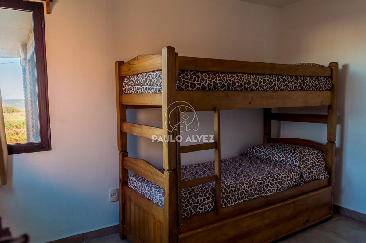 Propiedad ubicada frente al mar por Rambla Costanera, en San Francisco, uno de los balnearios más solicitados del Uruguay, sus hermosas playas de aguas cristalinas junto a sus increíbles atardeces forman el escenario perfecto para disfrutar a pleno de sus vacaciones. Construcción en régimen de propiedad horizontal, sobre terreno de 313 m² y 94 metros edificados en dos plantas. Interiores distribuidos en living muy luminoso con estufa a leña, amplias aberturas que dejan entrar mucha luz natural lo que aporta calidez y bien estar a la casa, comedor diario, cocina definida equipada con muebles bajo mesada y aéreos, baño social completo y primer dormitorio con dos plazas. Planta alta por cómoda escalera hacia amplio dormitorio principal en suite, acceso a terraza con vista al mar, donde se puede disfrutar de pintorescas puestas de sol. Parque enjardinado con parrillero cubierto. Consulte por más información.