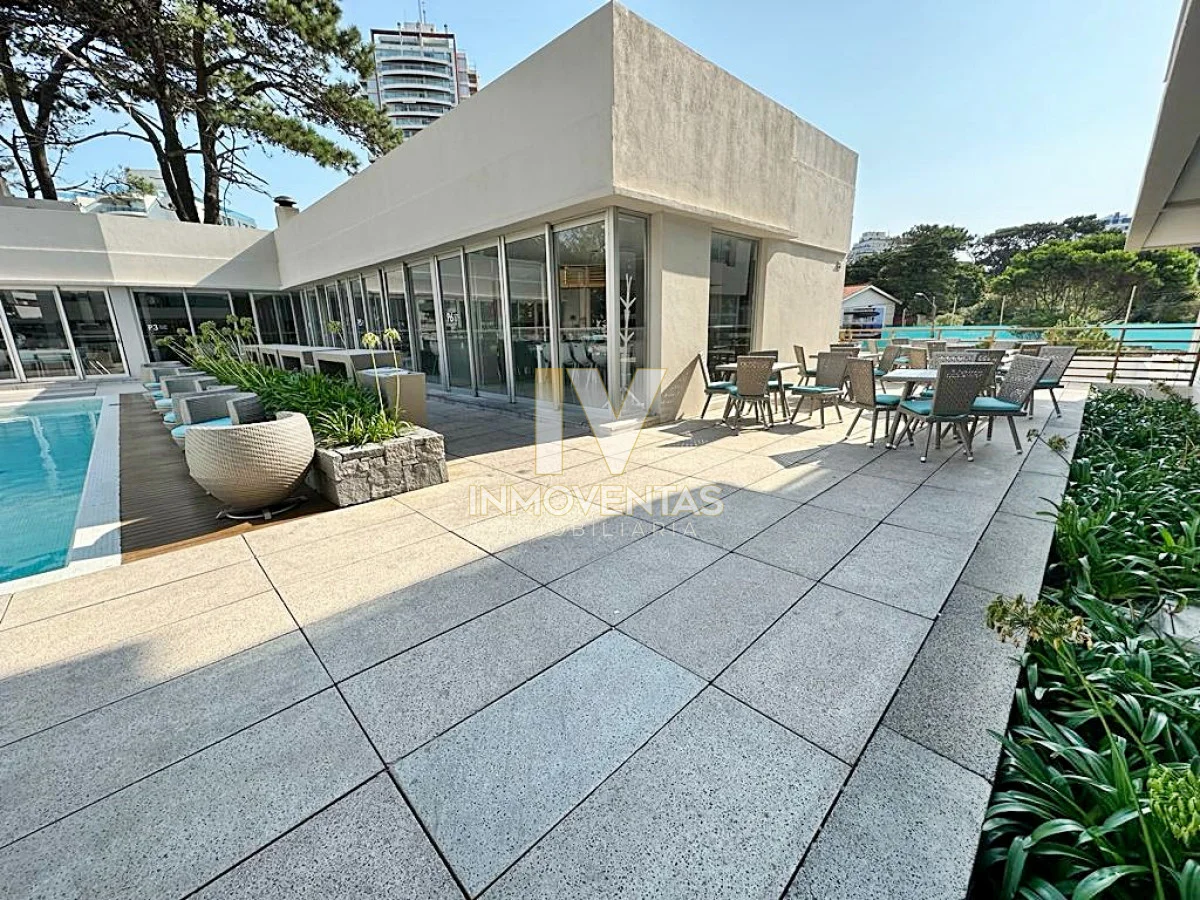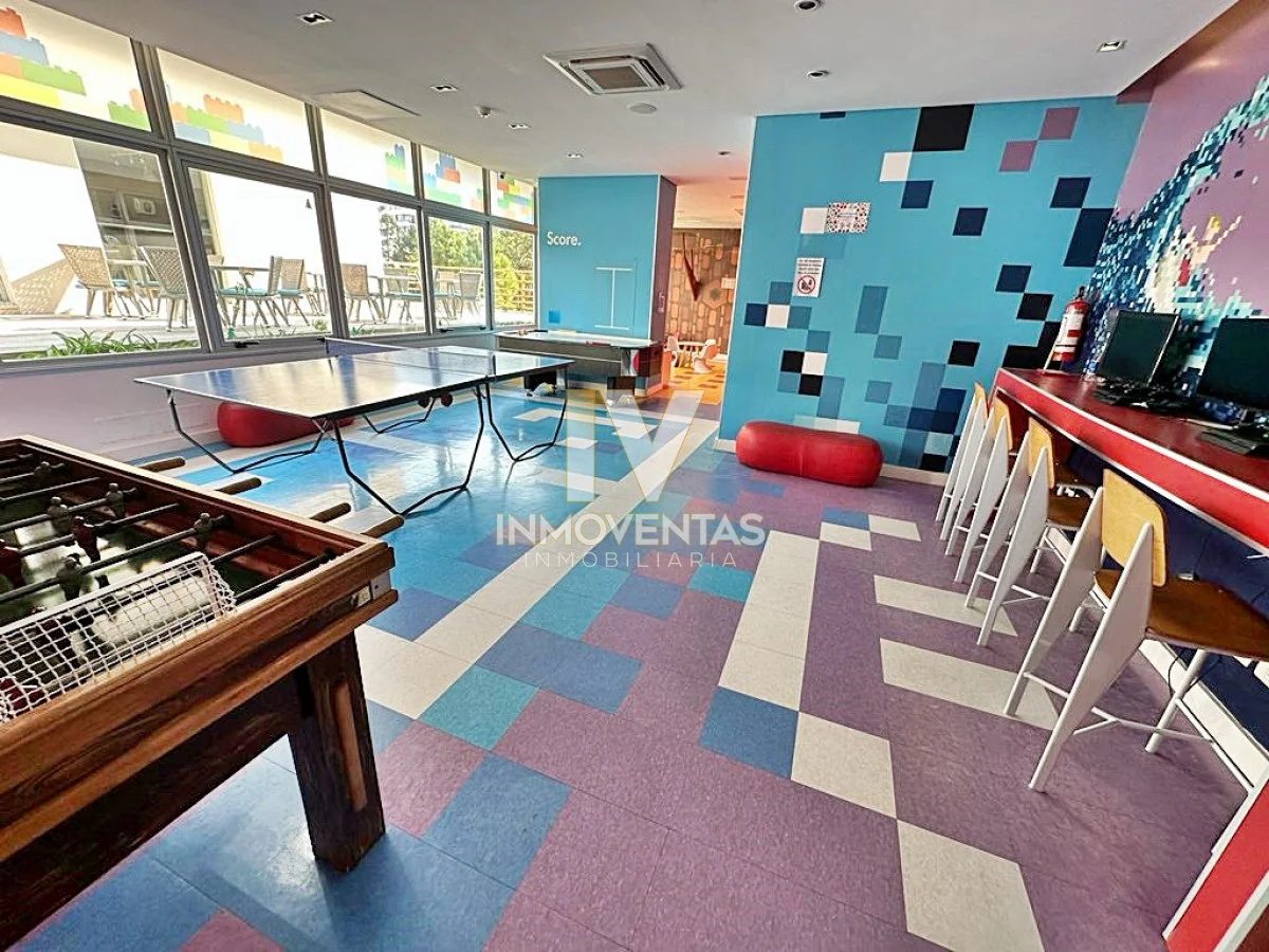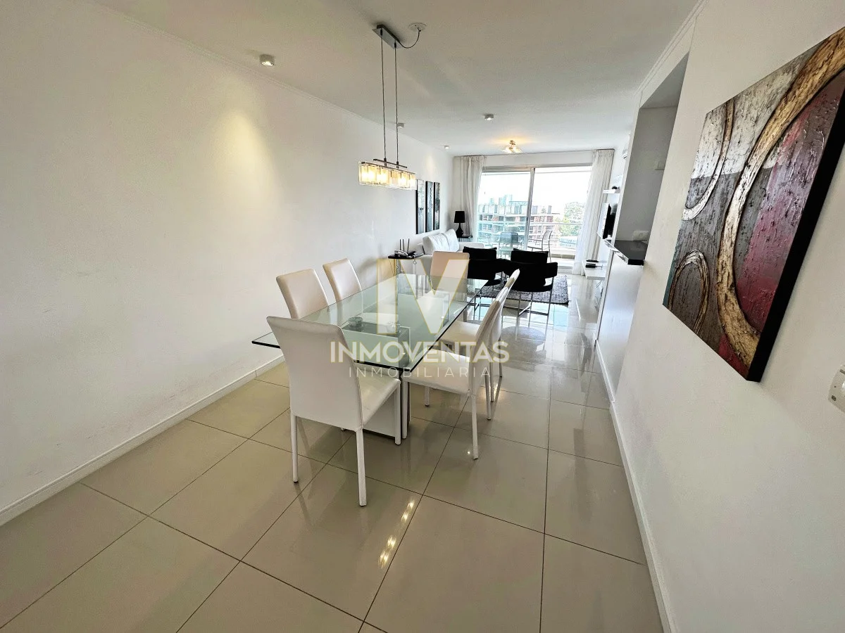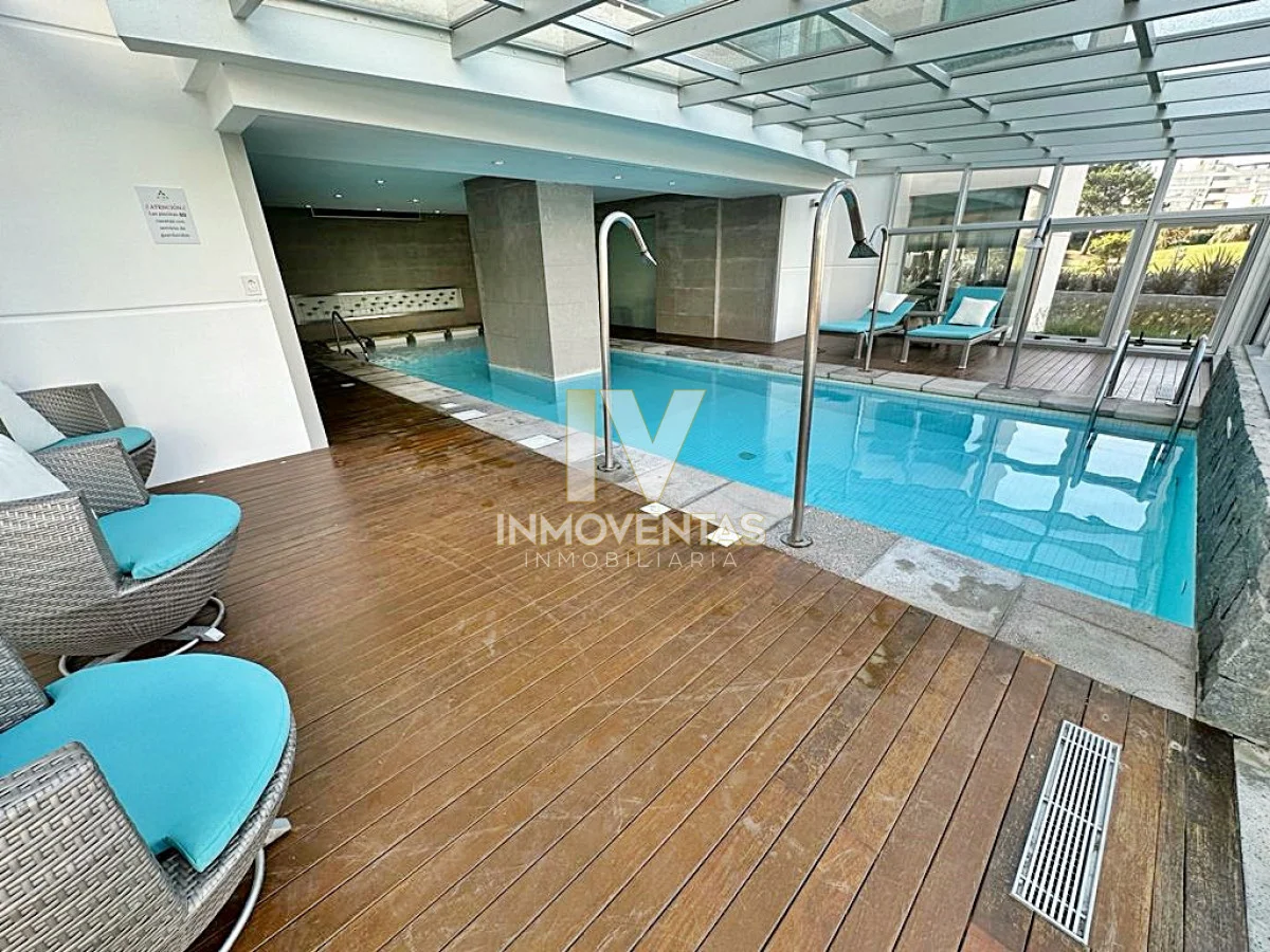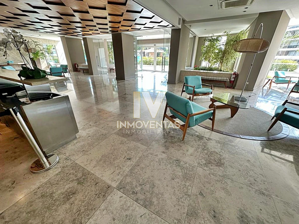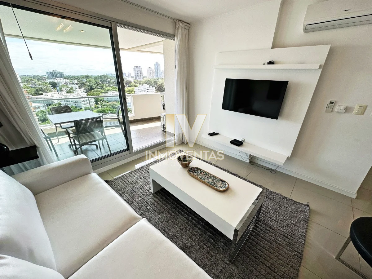 Piso alto con excelente posición solar, vistas apaisada a mansa y el bosque. 2 dormitorios, 2 baños, living comedor, cocina integrada, amplio balcón. Cochera en subsuelo con espacio para baulera. Equipado.