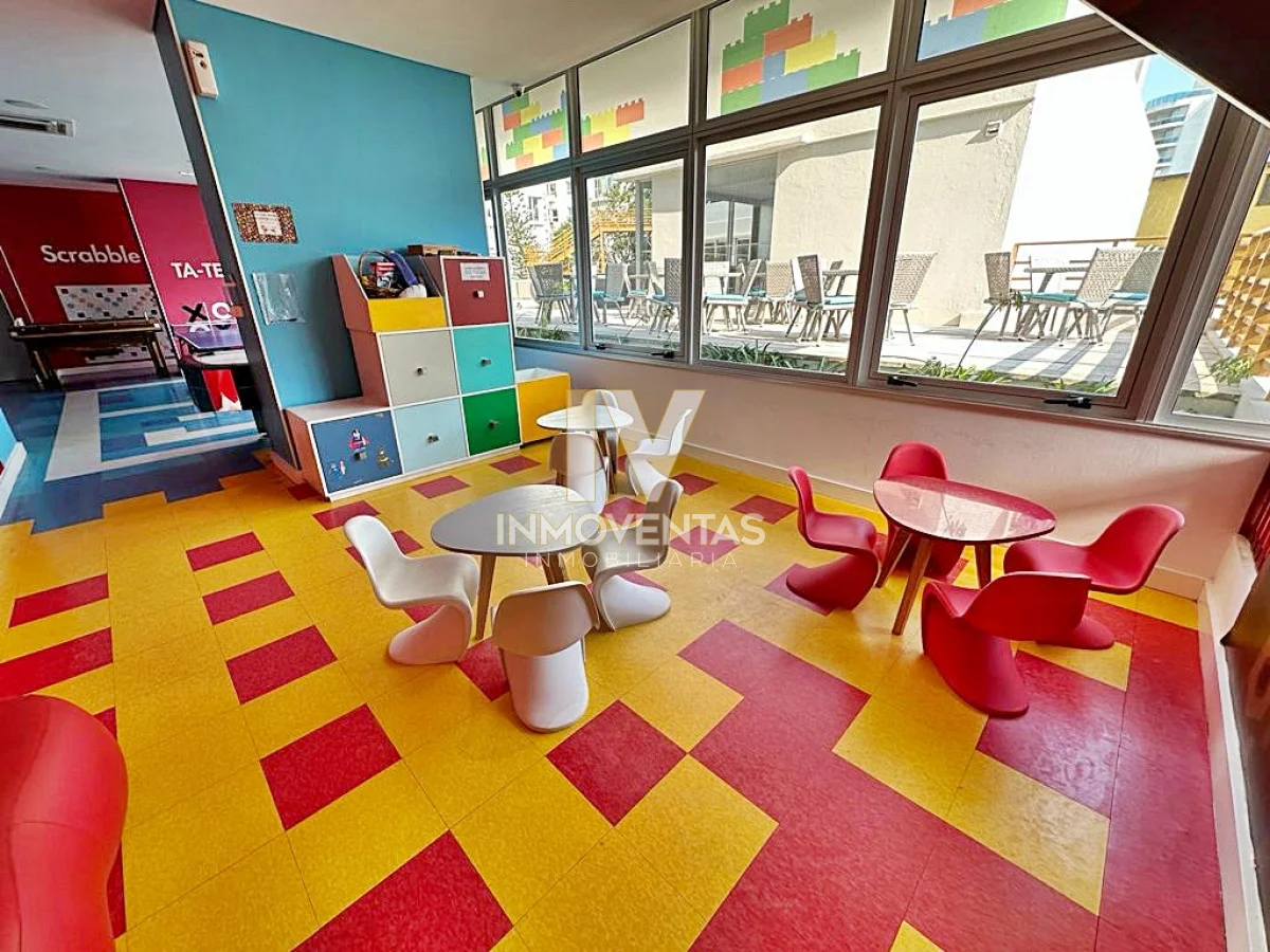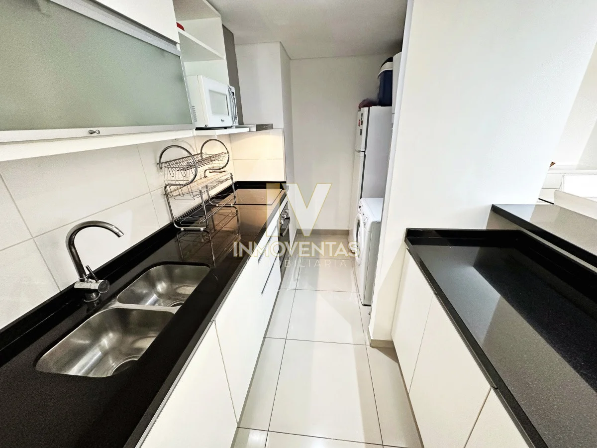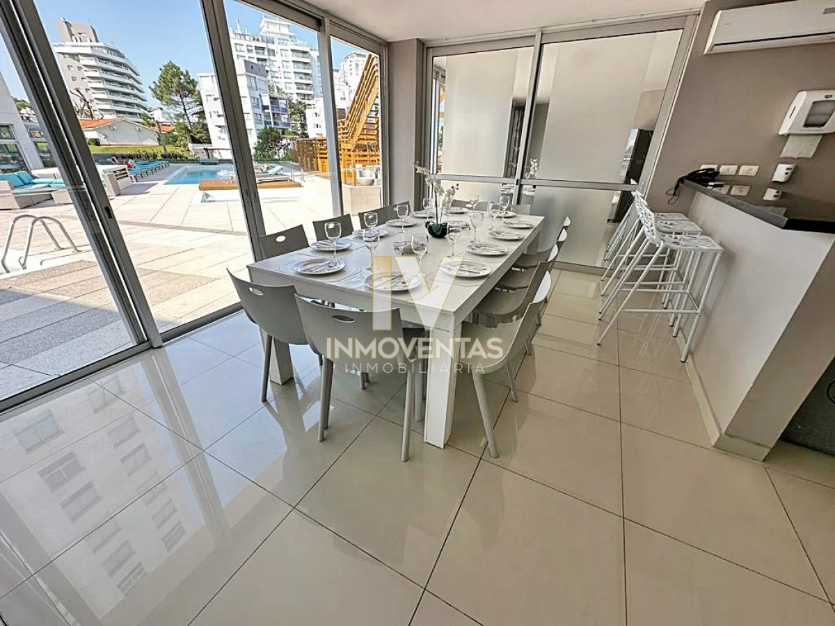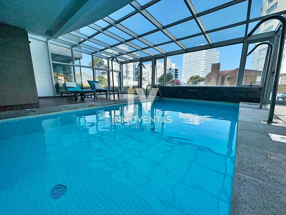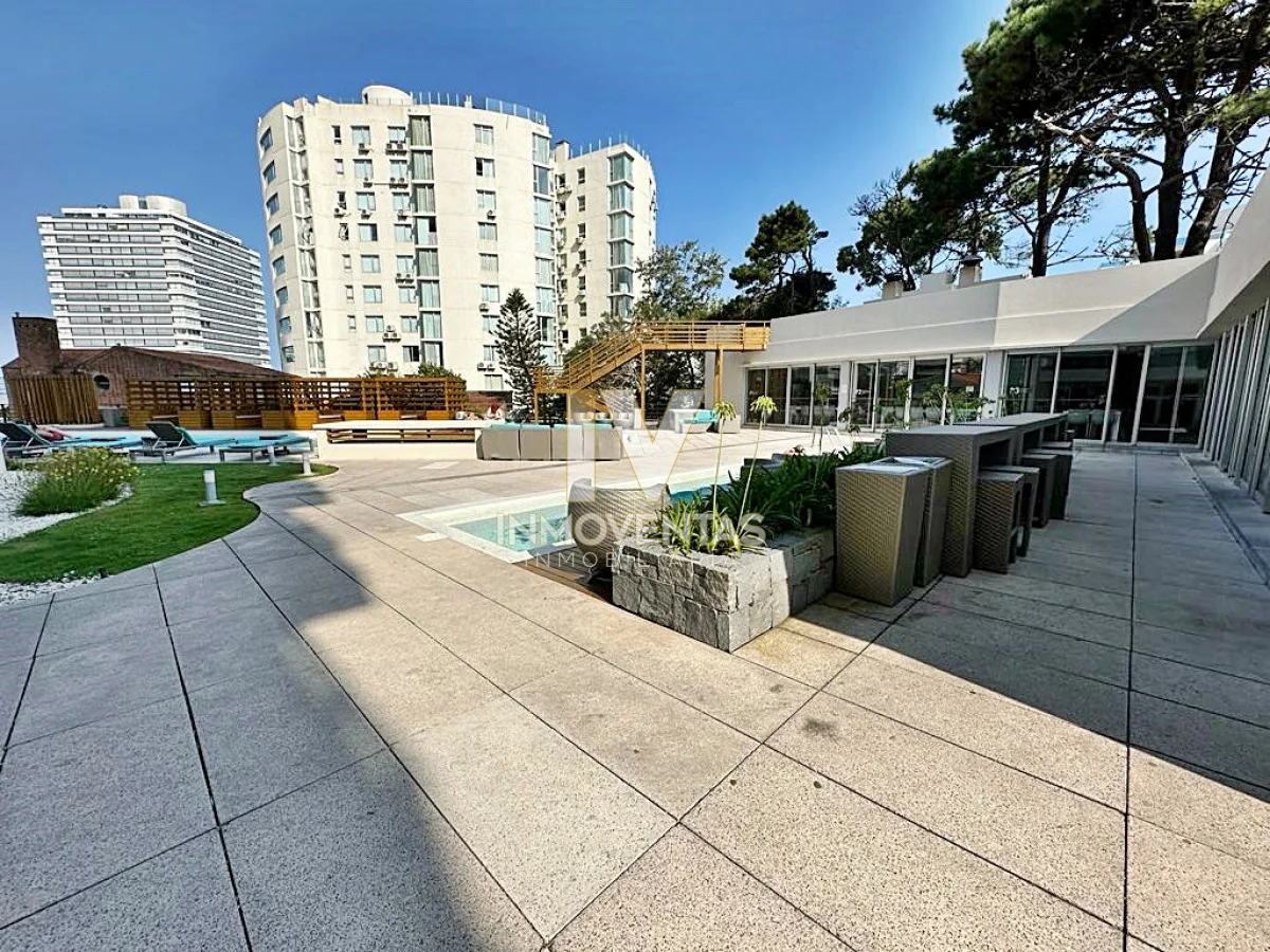 Piso alto con excelente posición solar, vistas apaisada a mansa y el bosque. 2 dormitorios, 2 baños, living comedor, cocina integrada, amplio balcón. Cochera en subsuelo con espacio para baulera. Equipado.