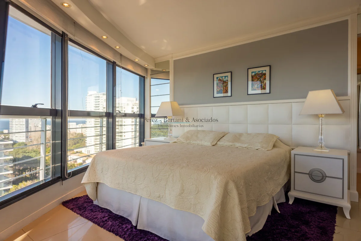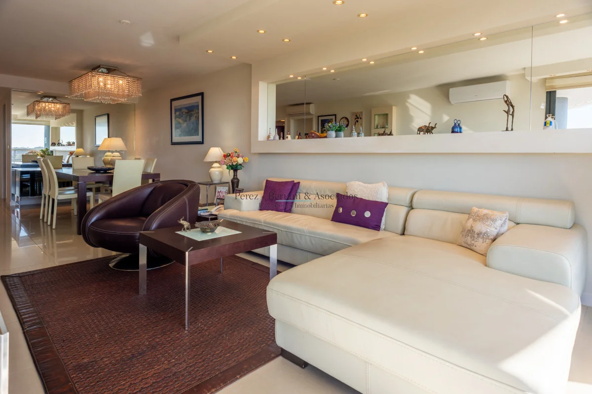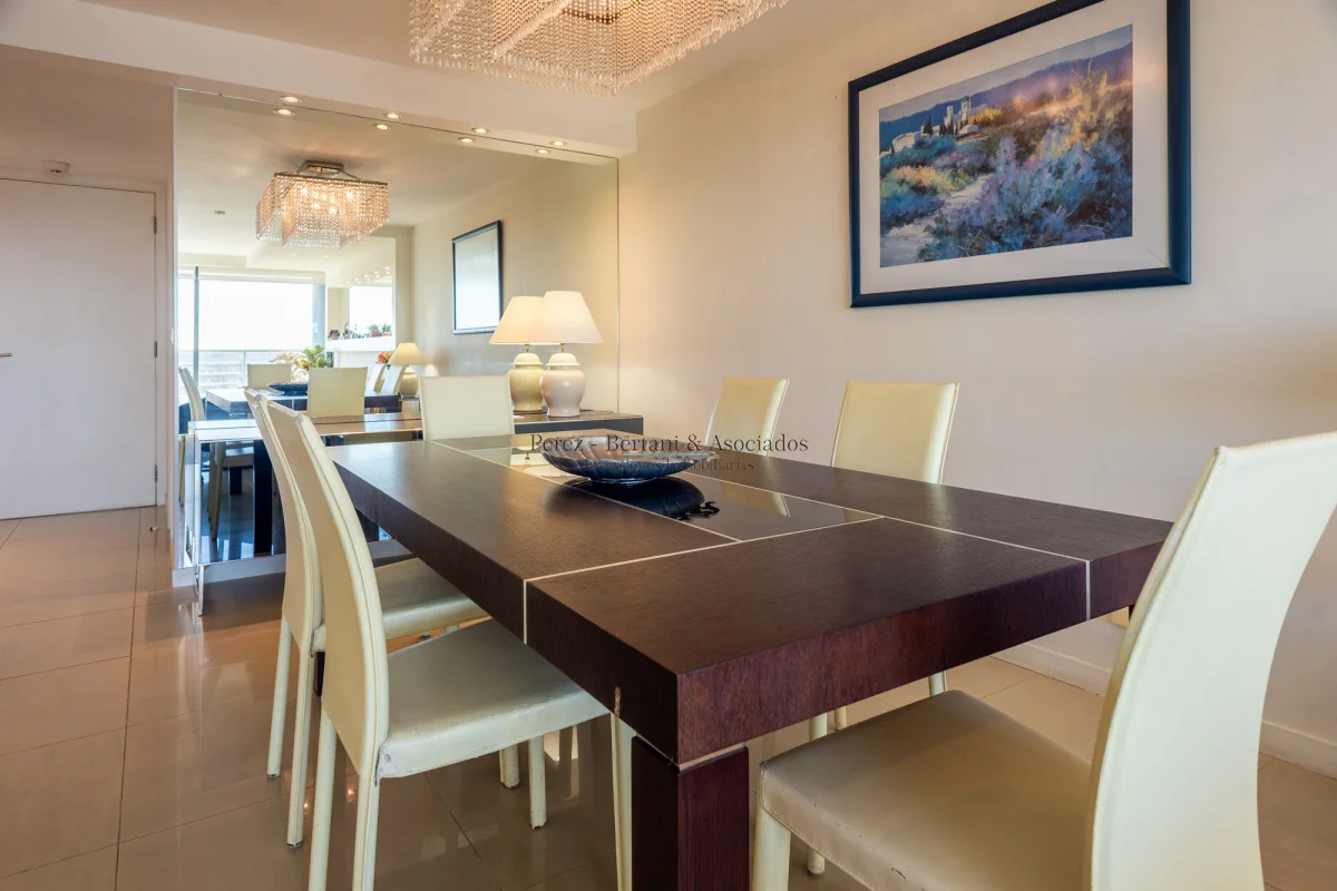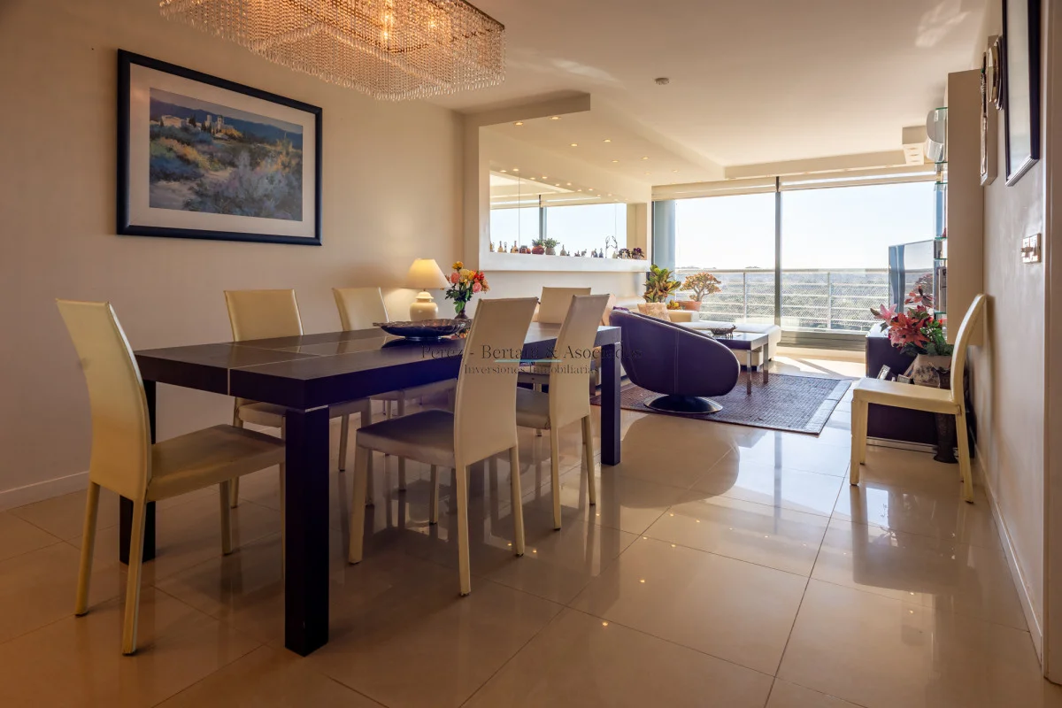 Luminoso apartamento con vista al mar, cuenta con: 3 dormitorios, 2 baños (principal en suite), 1 baño social, living comedor con acceso a la terraza y cocina grande definida. Garage en el subsuelo.