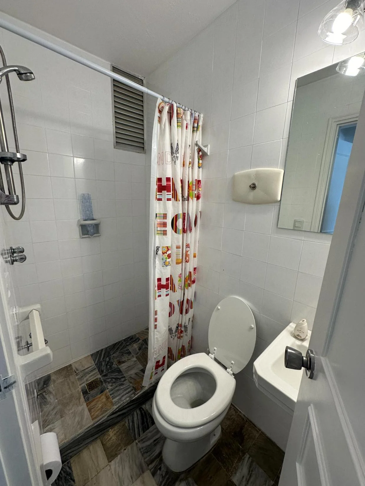 Segundo baño con ducha, inodoro y pileta.