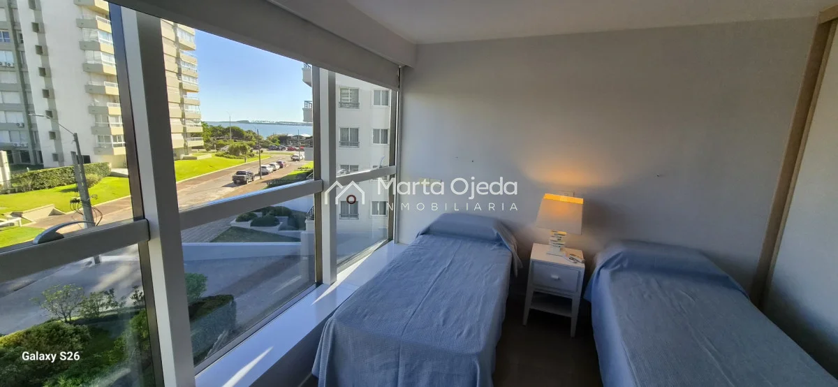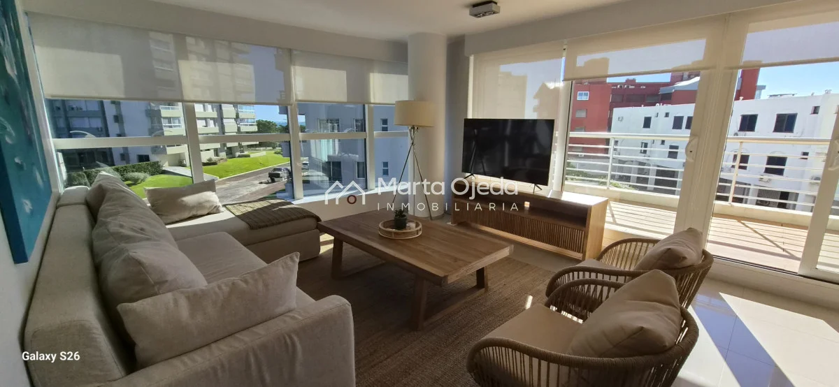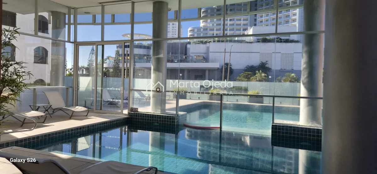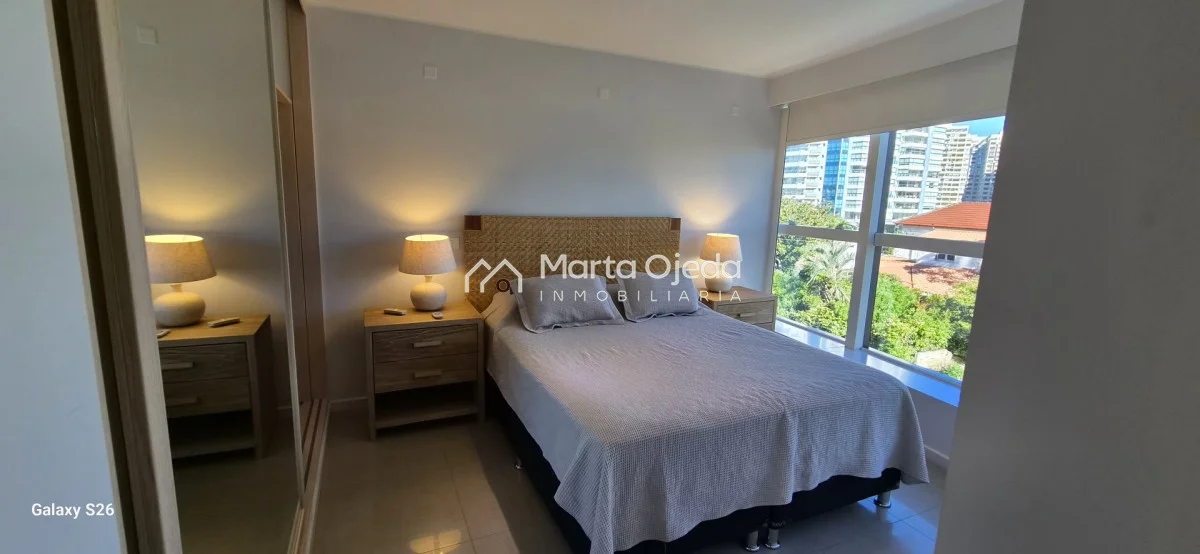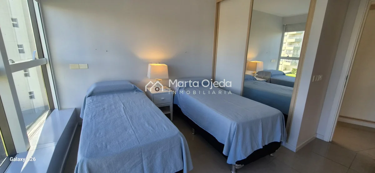 Edificio de 15 pisos con gran hall de entrada en doble altura , sala de juegos para niños y adultos , gimnasio, sala relax, sauna, deck exterior , amplios parrilleros, piscinas de agua salada interior y exterior climatizadas, servicio de mucama , servicio de playa . El apartamento cuenta con living-comedor en forma de L con salida a amplia terraza , baño social , cocina amplia definida, dos dormitorios en suite , gje , aire acondicionado ; se vende equipado , está listo para entrar y disfrutar .