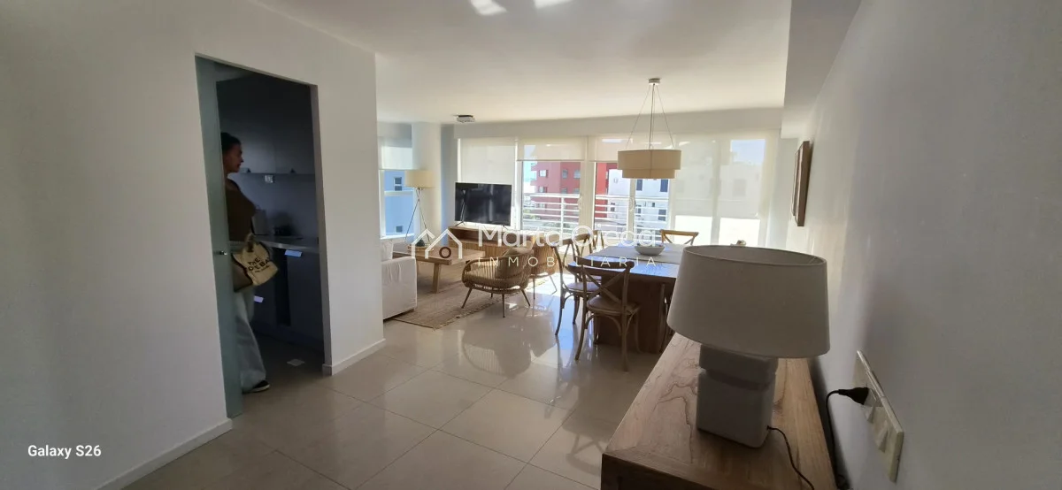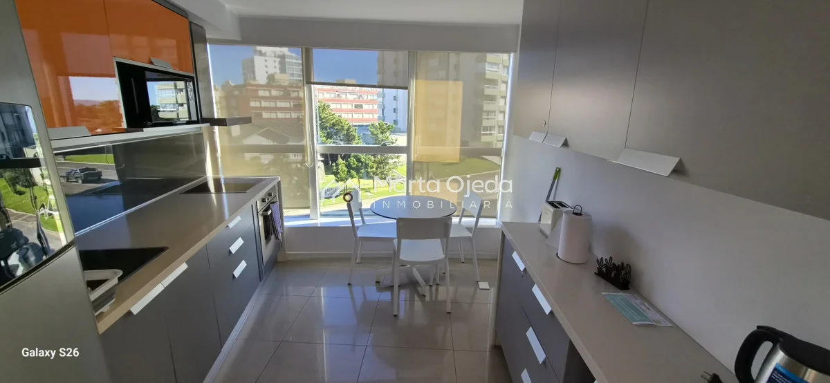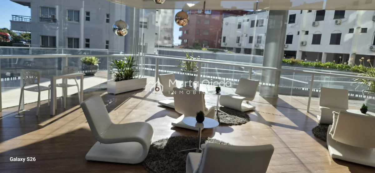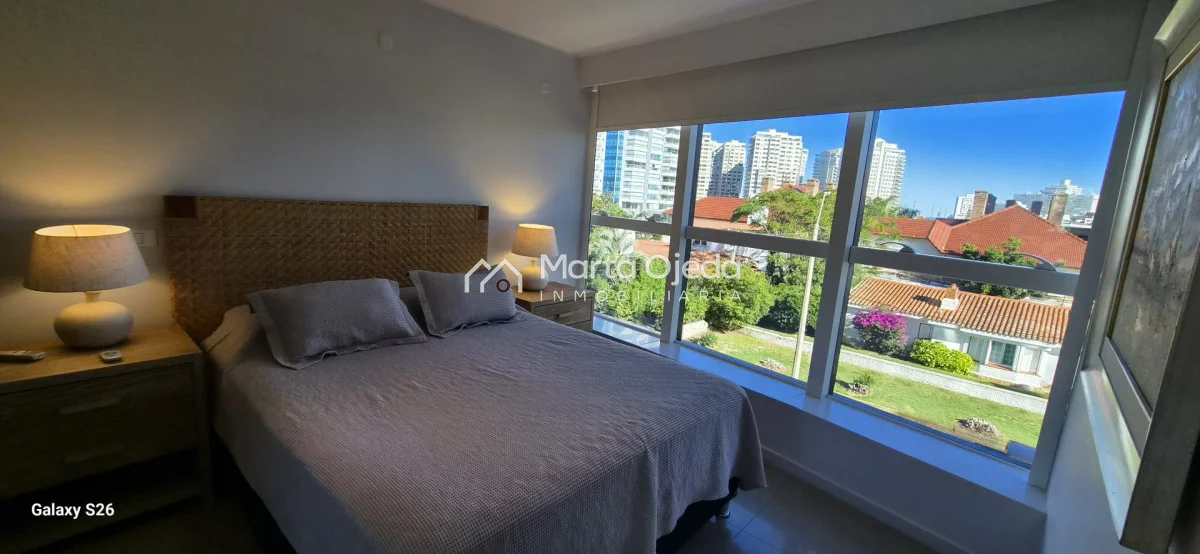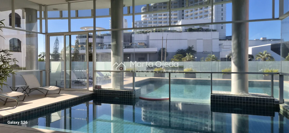 Edificio de 15 pisos con gran hall de entrada en doble altura , sala de juegos para niños y adultos , gimnasio, sala relax, sauna, deck exterior , amplios parrilleros, piscinas de agua salada interior y exterior climatizadas, servicio de mucama , servicio de playa . El apartamento cuenta con living-comedor en forma de L con salida a amplia terraza , baño social , cocina amplia definida, dos dormitorios en suite , gje , aire acondicionado ; se vende equipado , está listo para entrar y disfrutar .