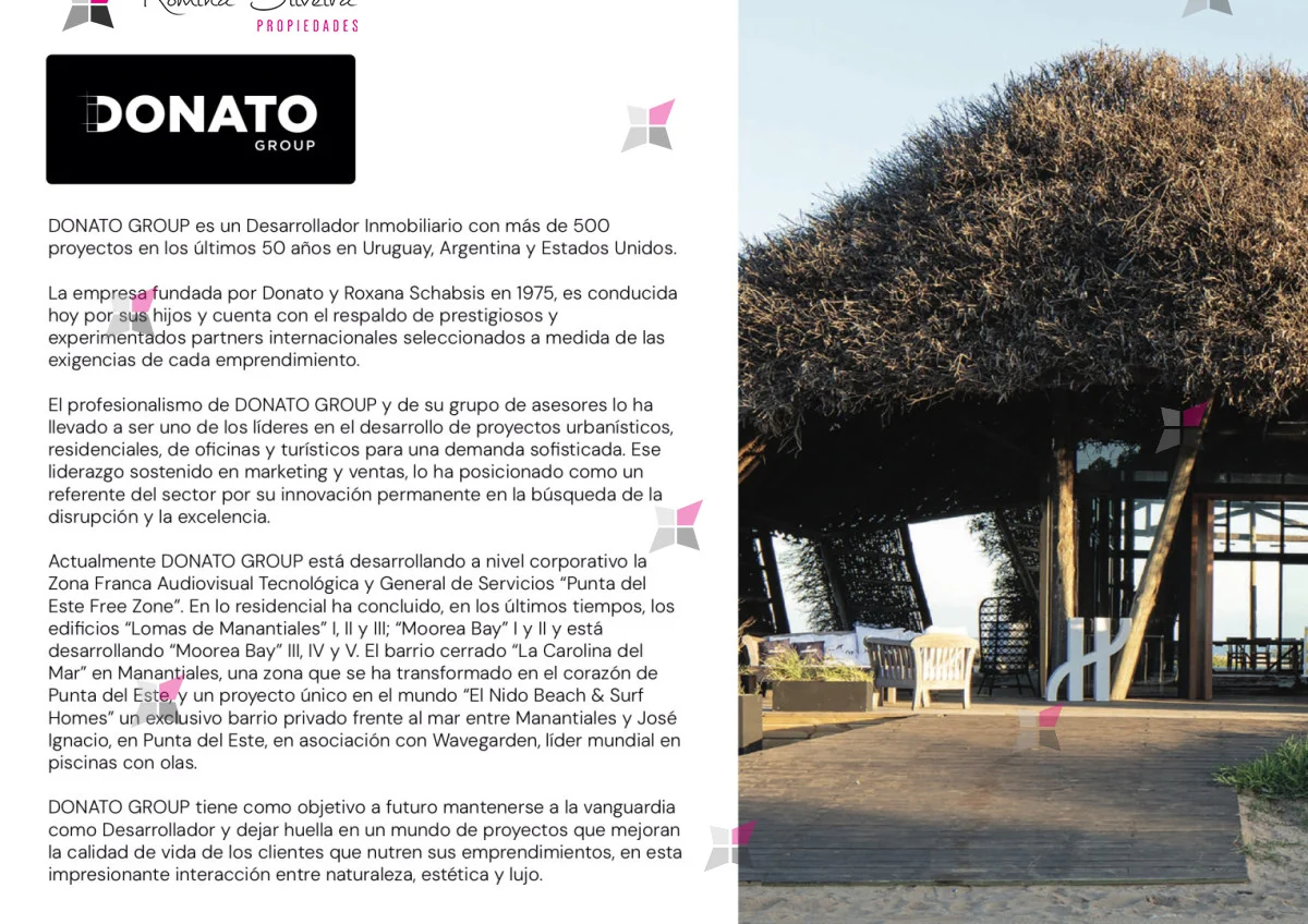 El proyecto es impulsado por Donato Group, con más de 50 años de experiencia en desarrollos inmobiliarios en Uruguay, Argentina y Estados Unidos.