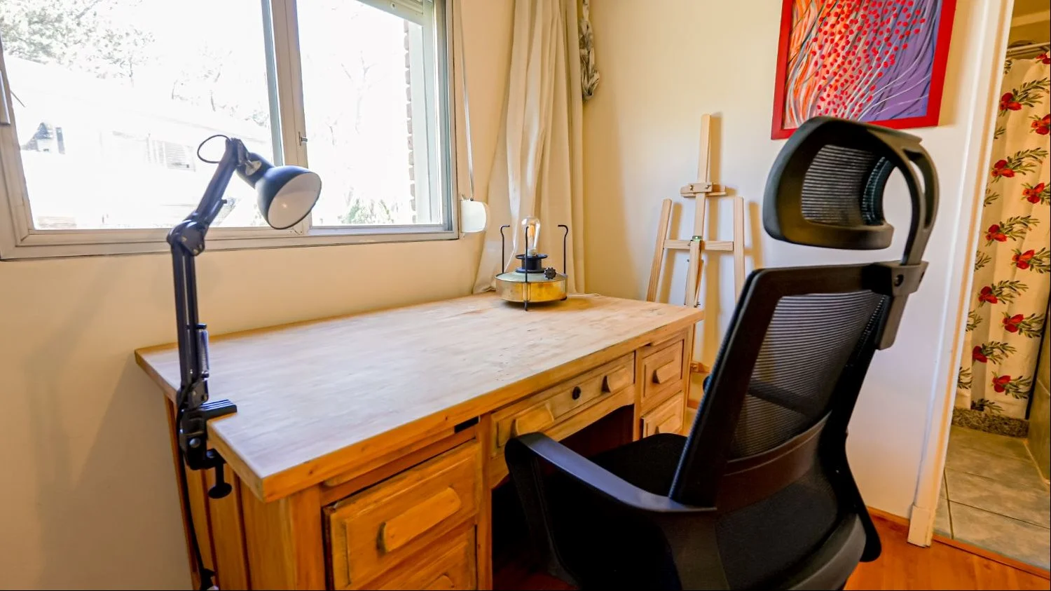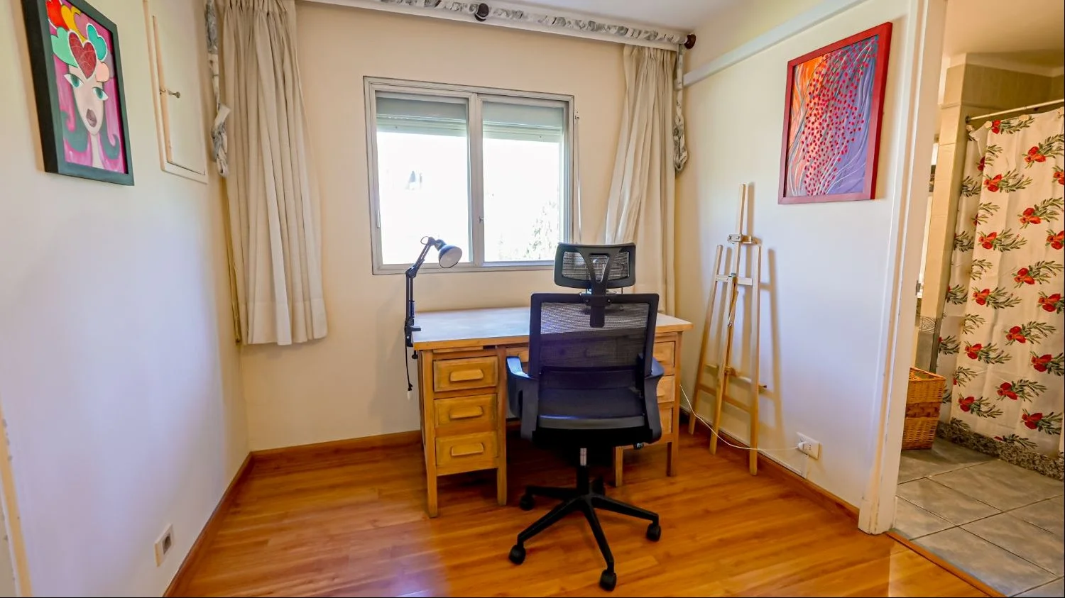 Dispone además de un ambiente extra, actualmente utilizado como escritorio, que puede adaptarse fácilmente como medio dormitorio con luz natural.