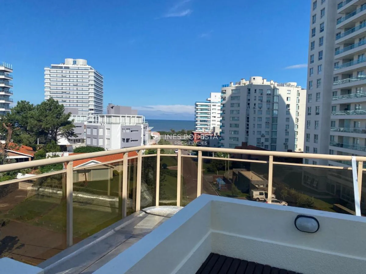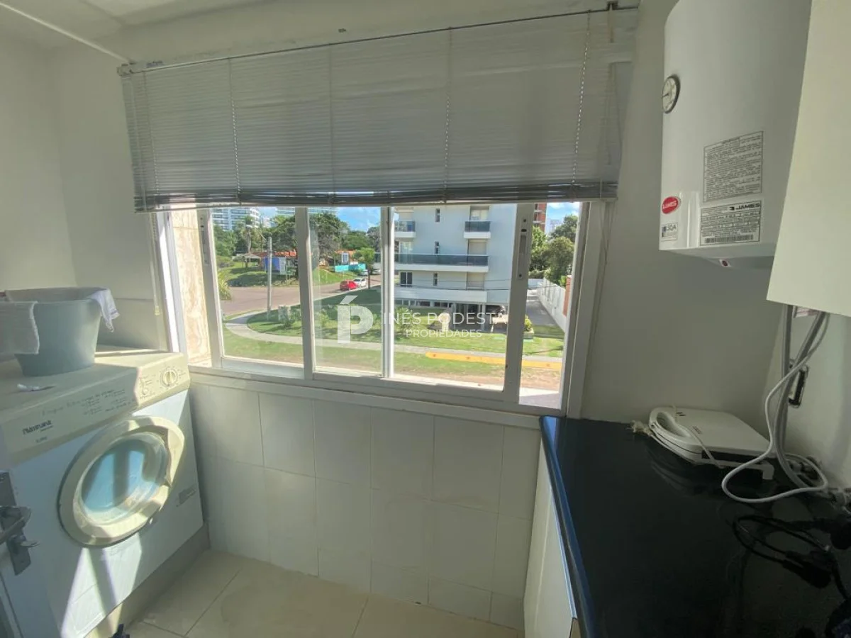 Apartamento ubicado a 100 mt de la playa y muy bien conservado. Cuenta con balcón-terraza con vista parcial al mar, living-comedor, 3 dormitorios, 2 baños, 1 suite, cocina, terraza-lavadero, 6 plazas, garage; piscinas exterior e interior climatizada, parrilleros en azotea, gym, sauna, servicio de playa, wifi, cable cHD, ropa blanca.