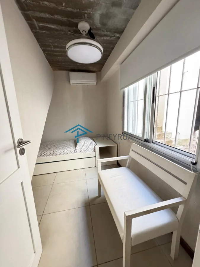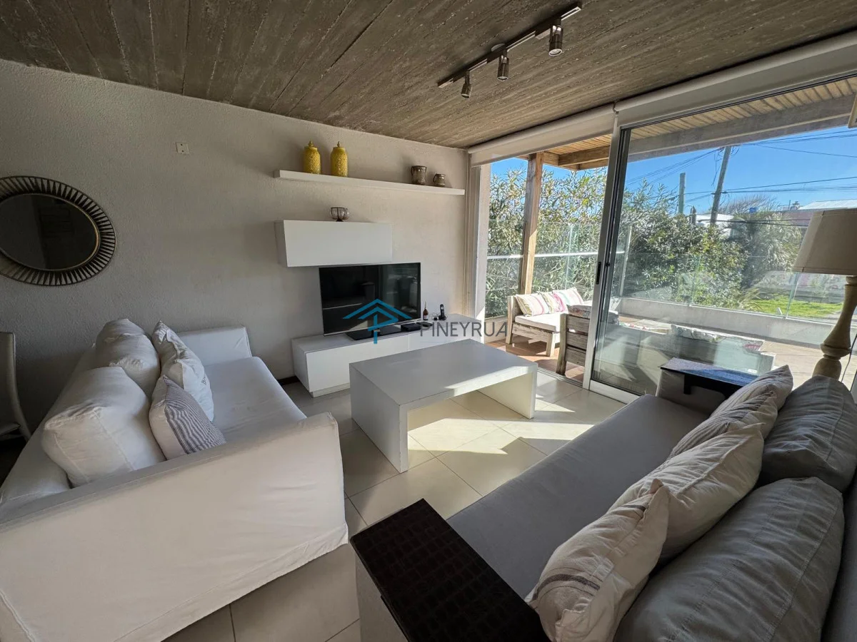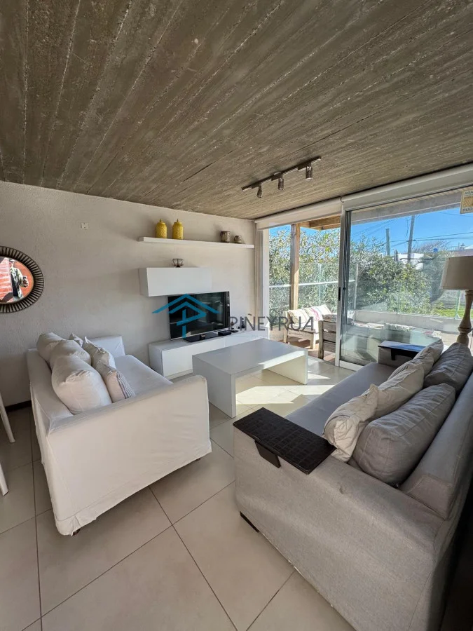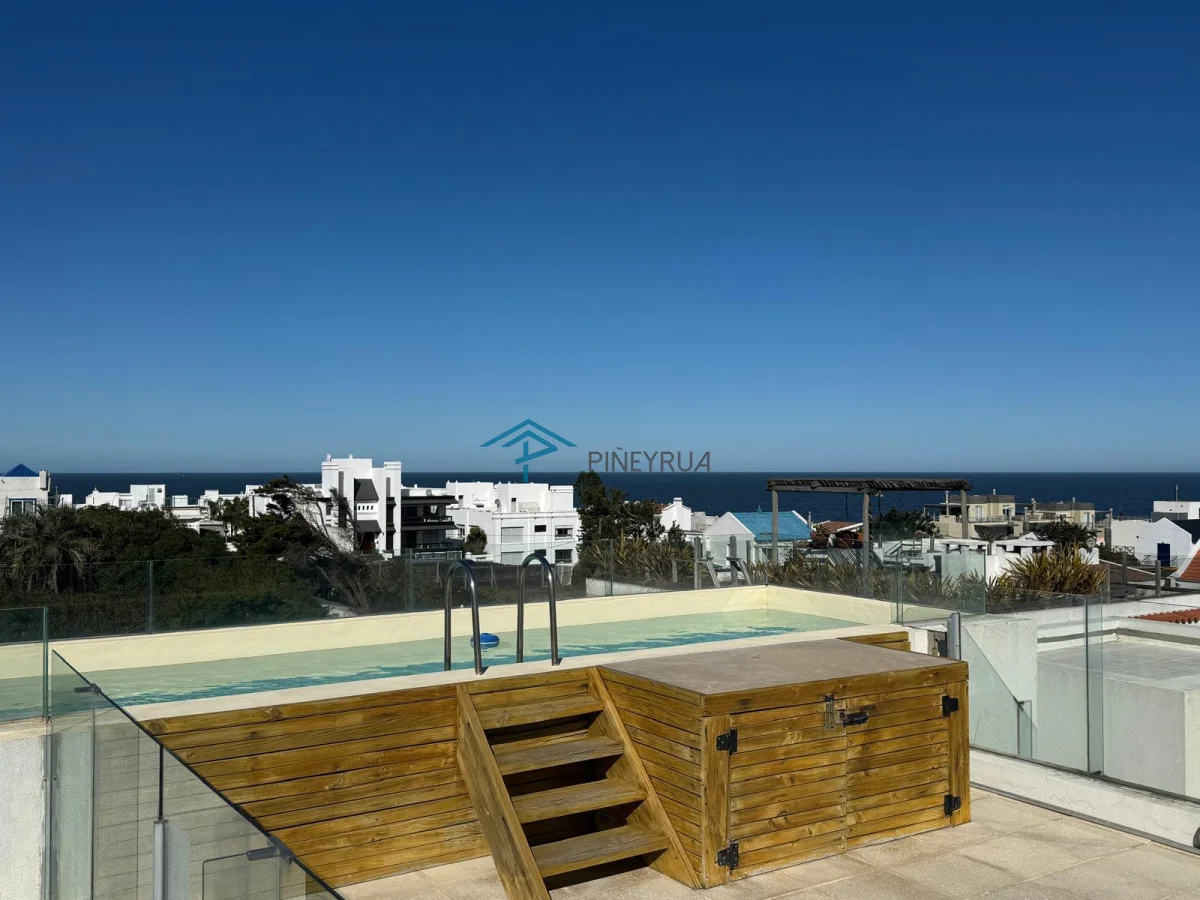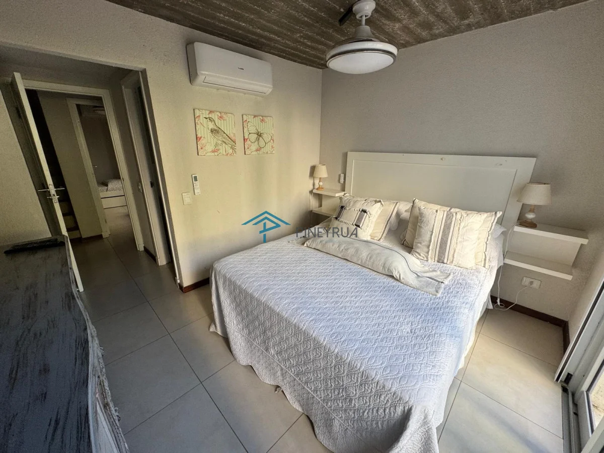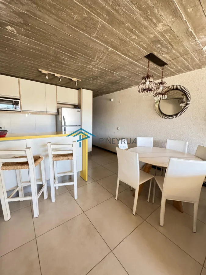 Apartamento tipo dúplex en muy buena ubicación. Planta alta living comedor con salida a terraza, cocina integrada, un dormitorio y un baño. Planta baja dormitorio principal en suite y otro pequeño. Cuenta con servicio de mucama, lavadero, cochera, piscina y parrillero de uso común con vistas al mar.