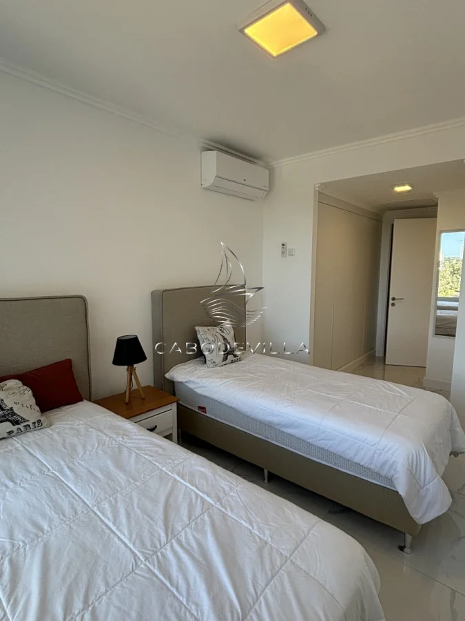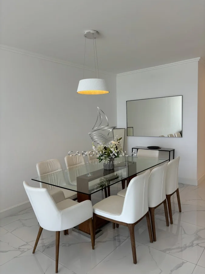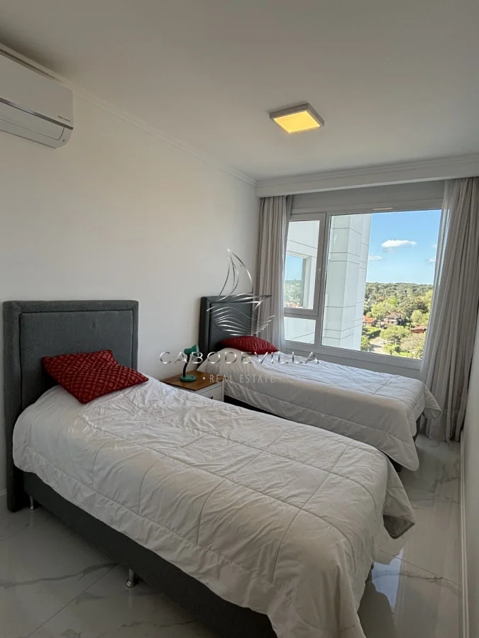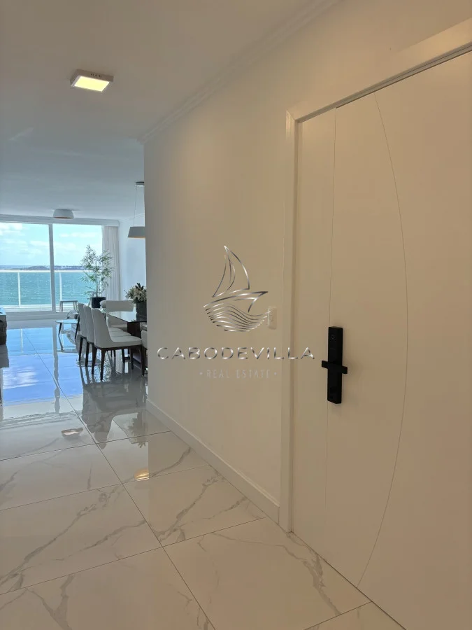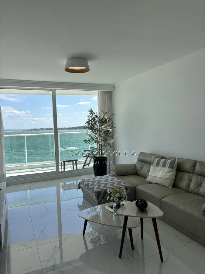 Apartamento de tres dormitorios en suite mas toilette social, palier privado con ocho ascensores de gran velocidad, la ubicación del edificio en primera linea frente al mar ofrece una vista totalmente panorámica de la Playa Mansa.