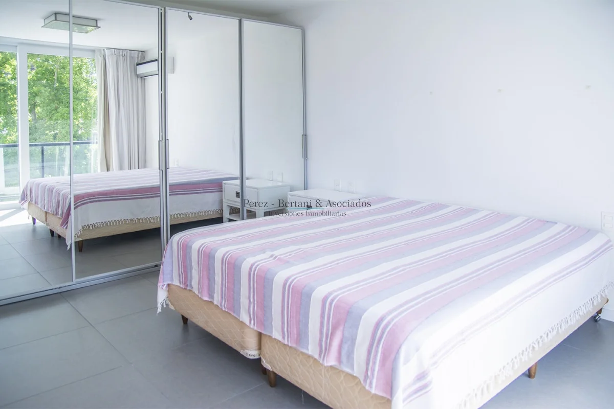 Esta casa en la Mansa, Punta del Este, ofrece una experiencia de alojamiento amplia y lujosa a tan solo 400 metros del mar. Con 5 dormitorios y 5 baños, todos en suite, la propiedad tiene capacidad para alojar a 10 personas con un total de 5 camas, proporcionando un espacio espacioso y cómodo, con una cocina de tipo americana que está equipada con anafe, microondas, lavavajilla, heladera con freezer y horno. El área de living comedor brinda un espacio abierto y acogedor para la convivencia teniendo en cuenta que incluye aire acondicionado y TV,