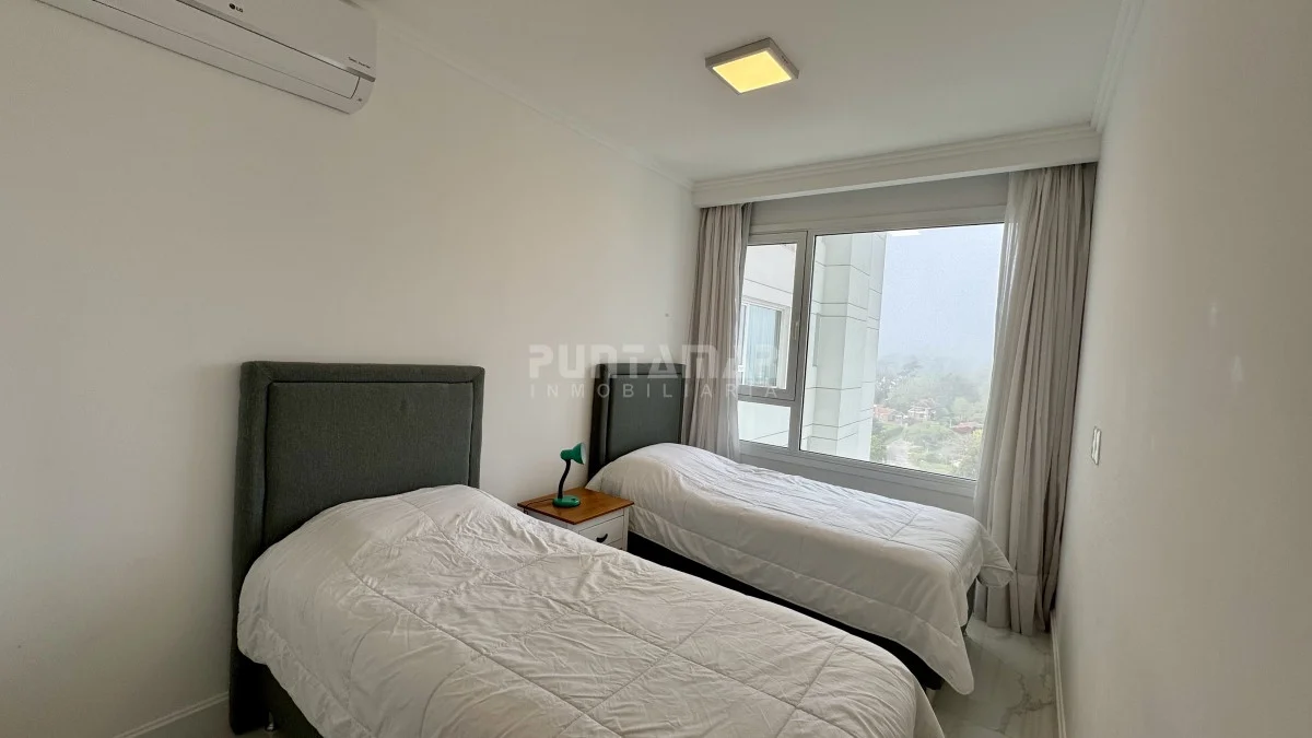 Este apartamento cuenta con tres dormitorios, cada uno con su propio baño privado.