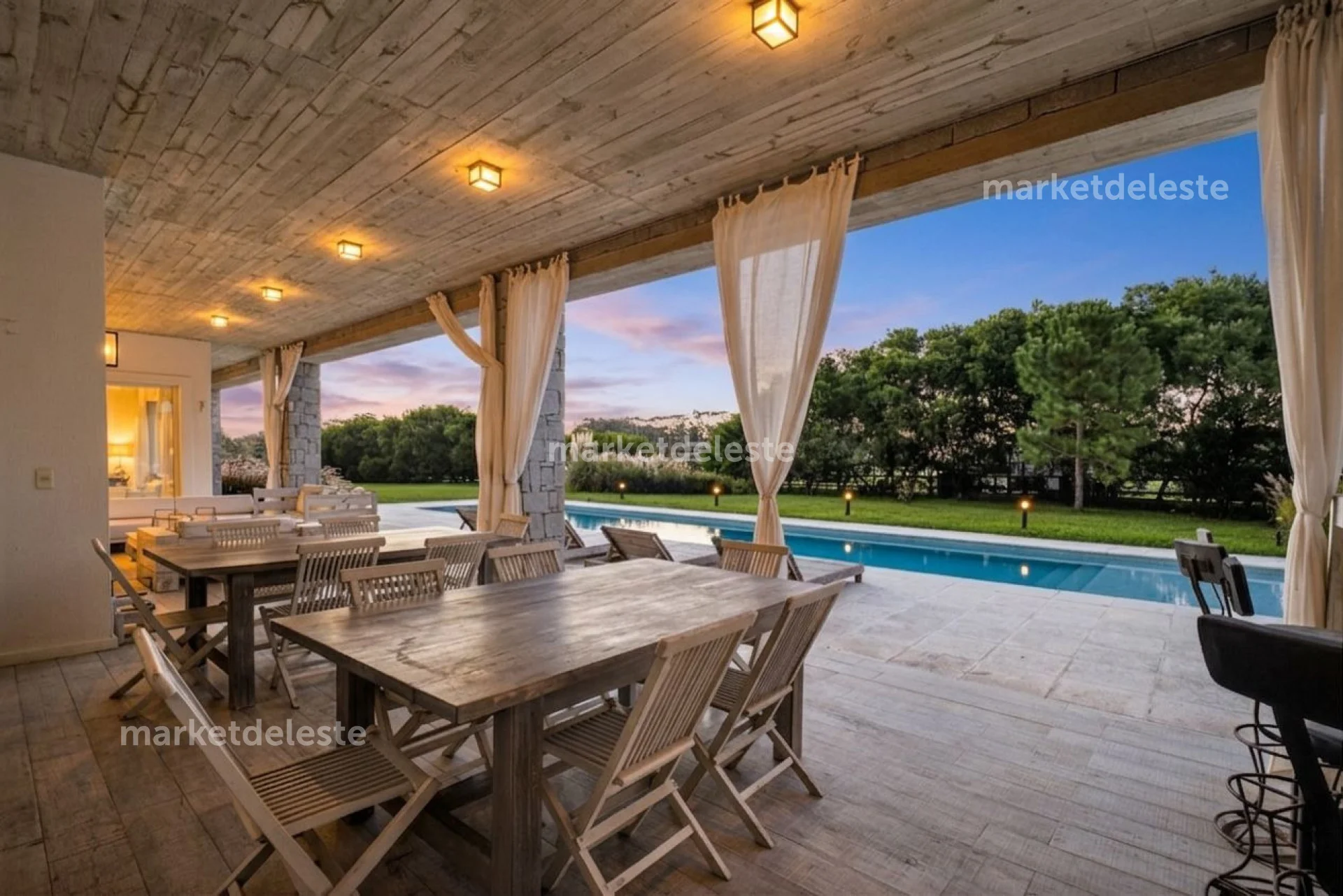 La propiedad ofrece además toilette de recepción, una cocina amplia y completamente equipada, dependencia de servicio completa y espacios pensados para el confort durante todo el año.