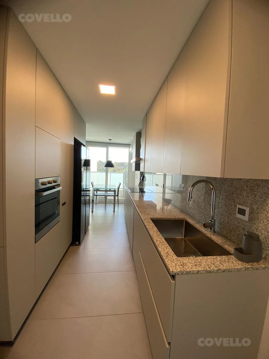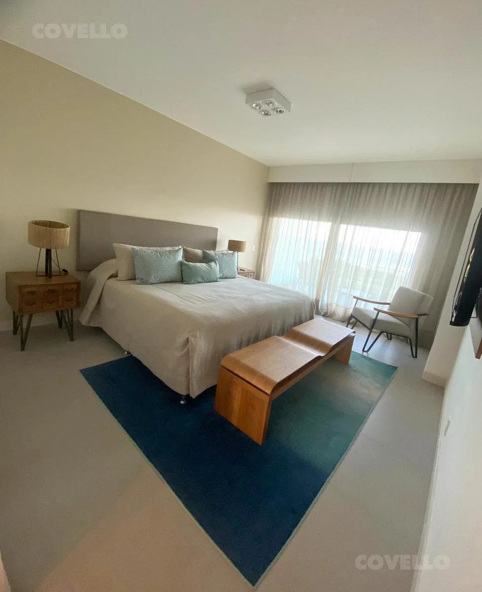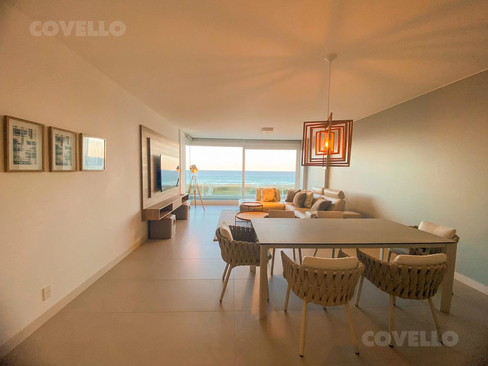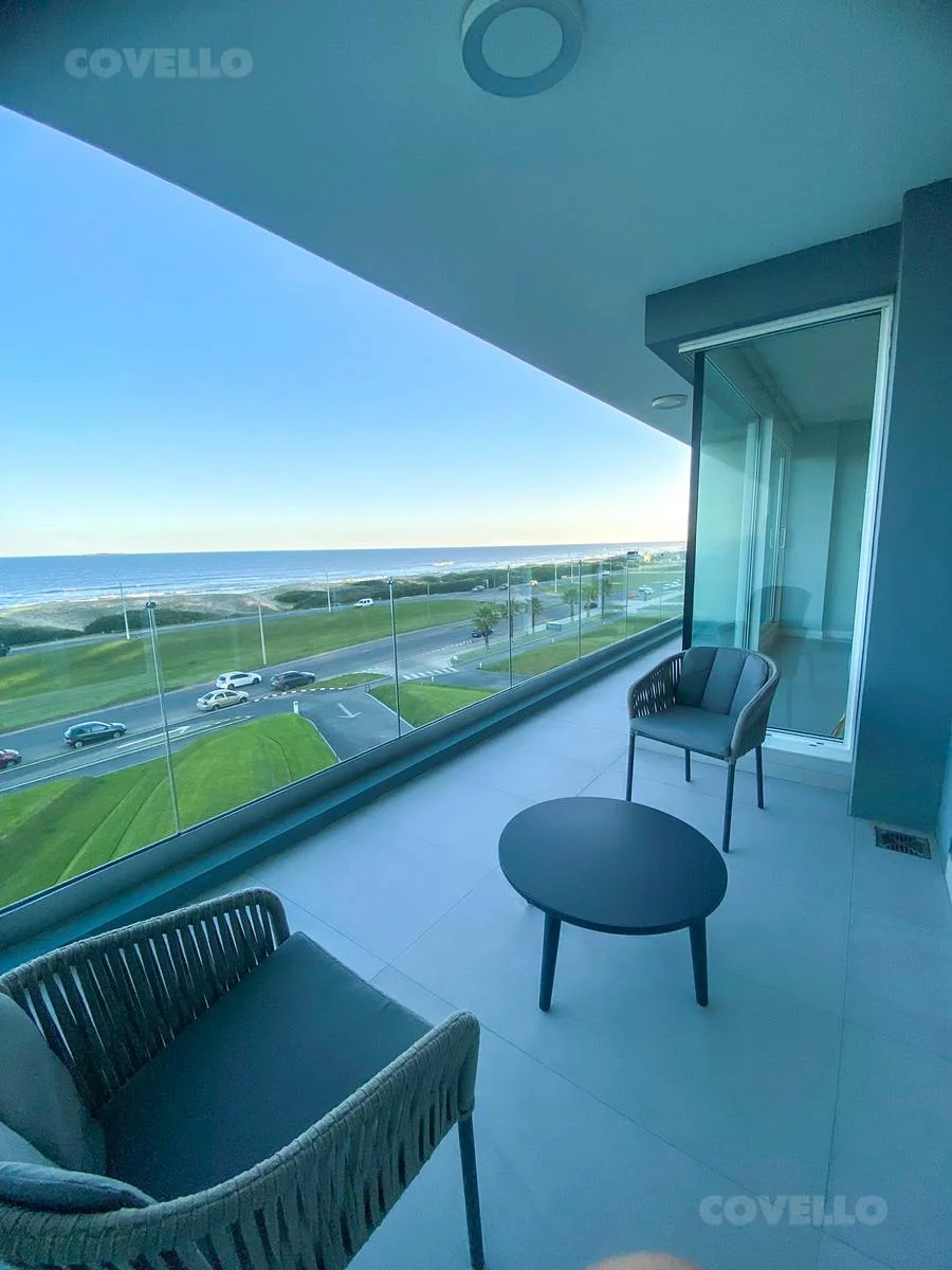 Dispone de 3 dormitorios, 3 baños, cocina, living comedor, y terraza con hermosa vista hacia la playa brava. El baño del dormitorio principal es muy amplio y cuenta con una gran bañera . El apartamento en general está decorado de forma armoniosa.