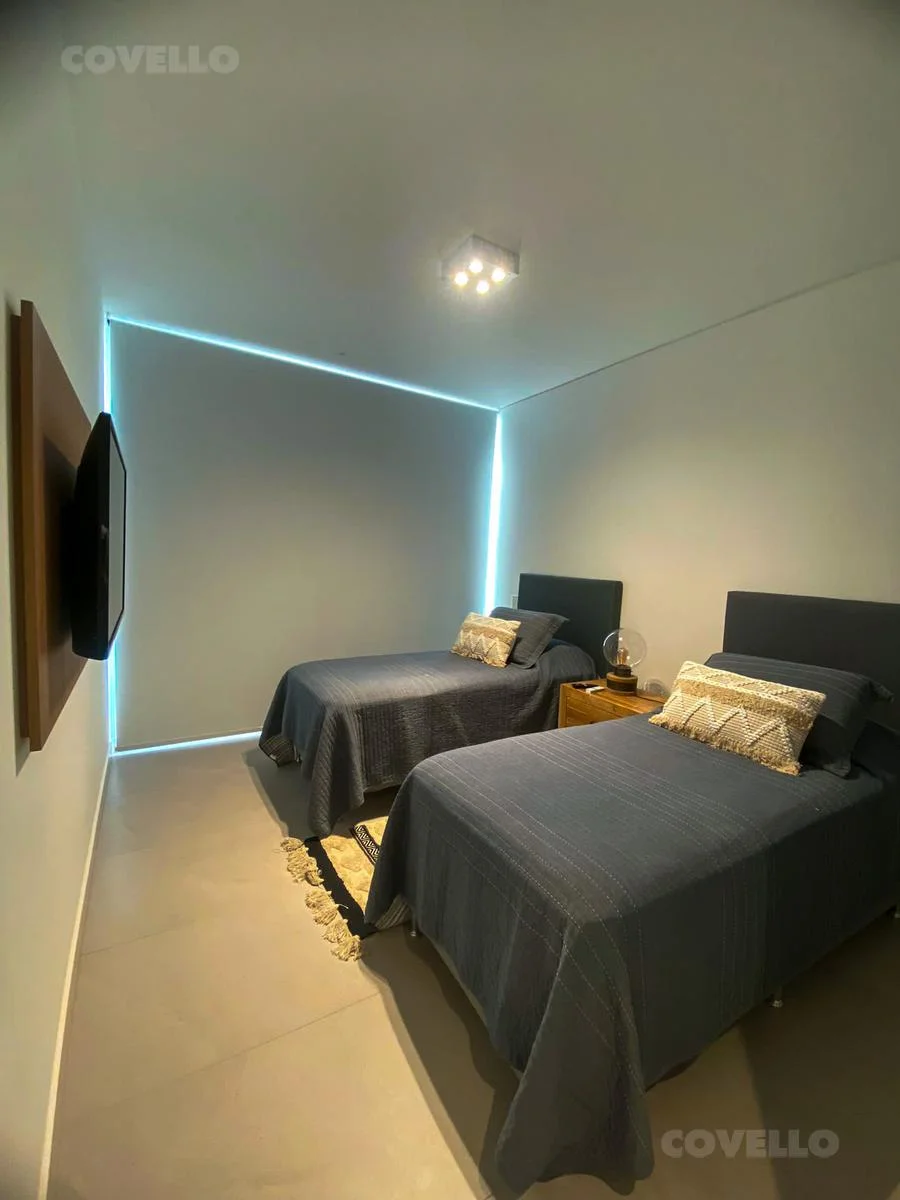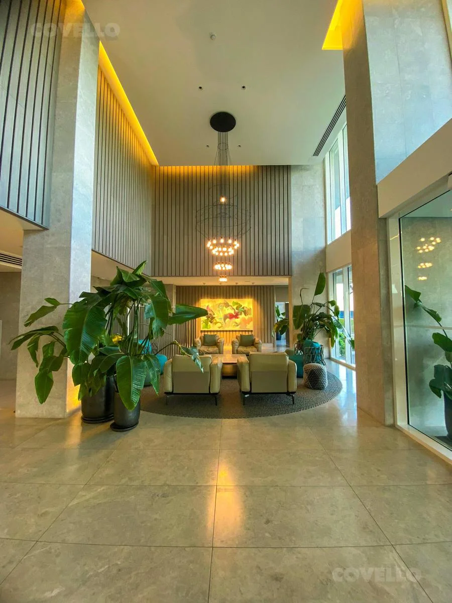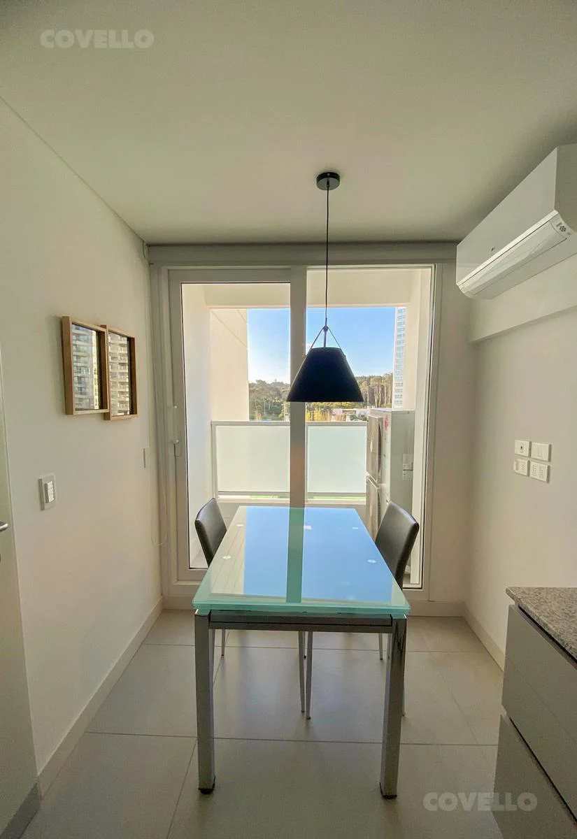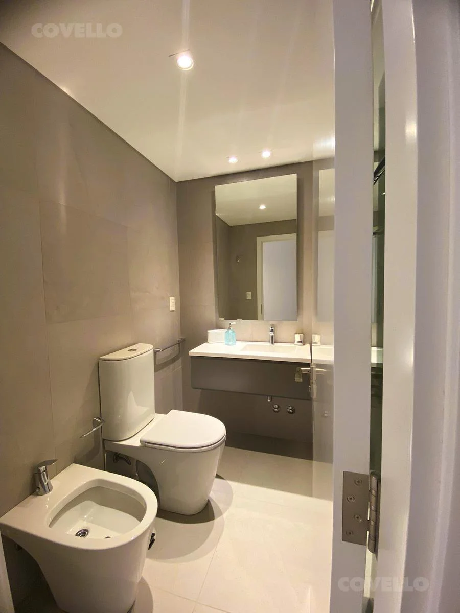 Dispone de 3 dormitorios, 3 baños, cocina, living comedor, y terraza con hermosa vista hacia la playa brava. El baño del dormitorio principal es muy amplio y cuenta con una gran bañera . El apartamento en general está decorado de forma armoniosa.