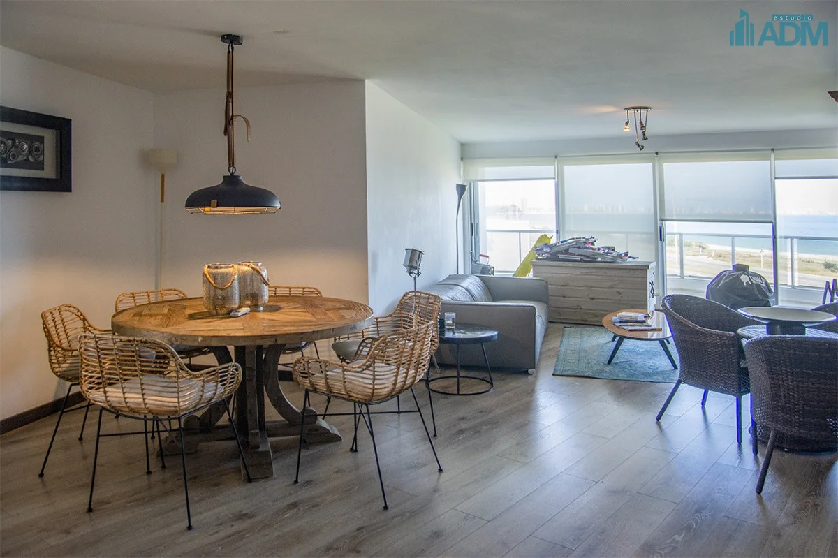 Amplio living comedor con salida al balcón y espectacular vista al mar.