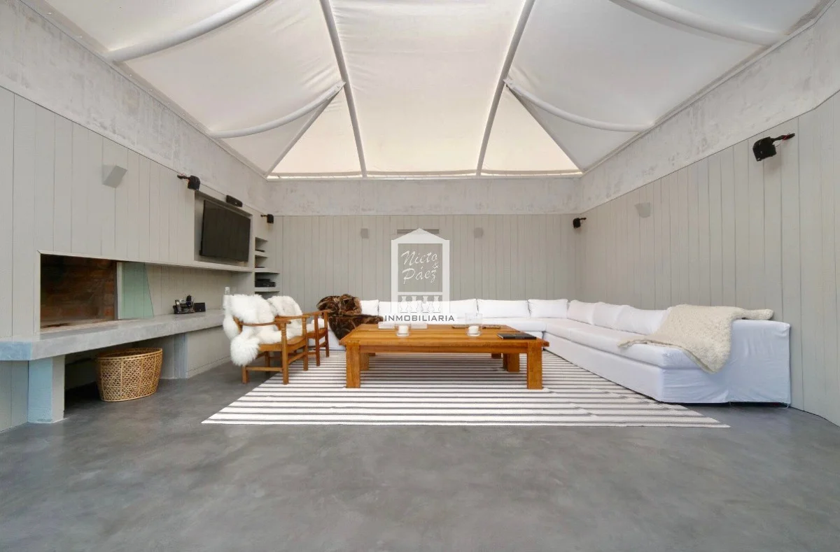 Inmejorable ubicación entre La Barra y Manantiales. Diseño moderno , excelente construcción y decoración . Amplio living con salida directa a la playa. Living estar diario con hermosa vista.. Espectacular deck con Piscina hacia el Mar. 5 suites + dormitorio de servicio Gran Master Suite frente al océano. Aires ac en todos los ambientes 3 plantas Parrillero Garage para dos autos Ascensor montacargas 1000 mts terreno 606 mts construidos Consulte para conocer esta magnífica propiedad! Referencia Interna : Tera-39935
