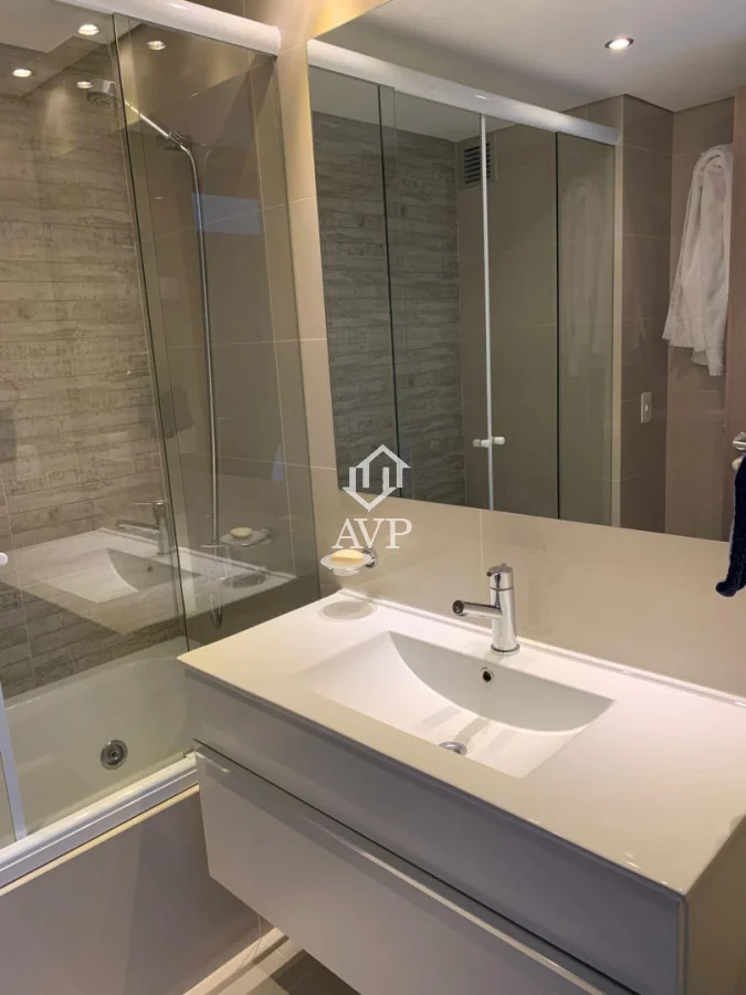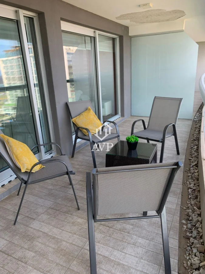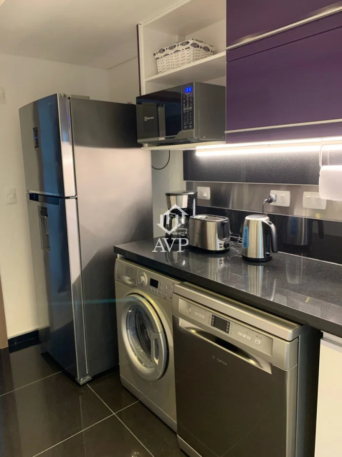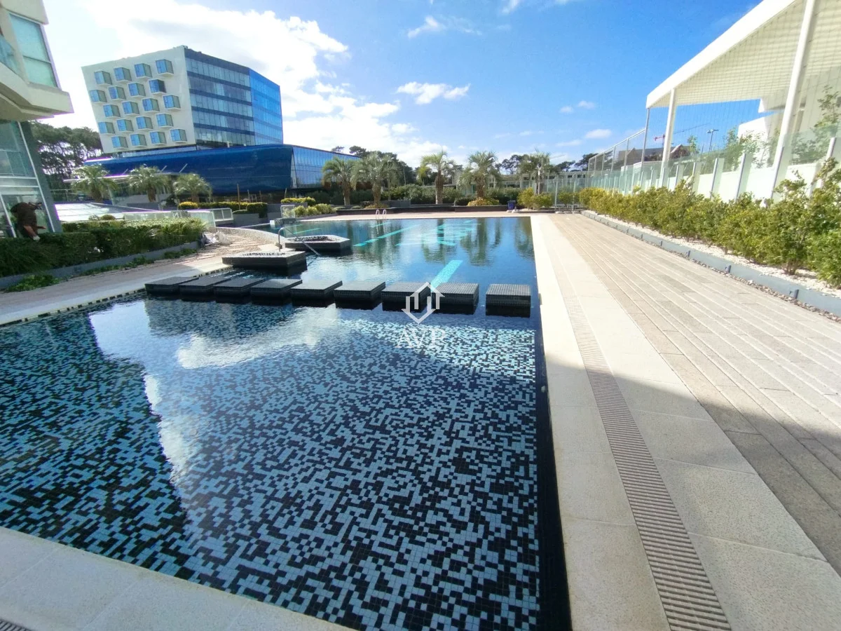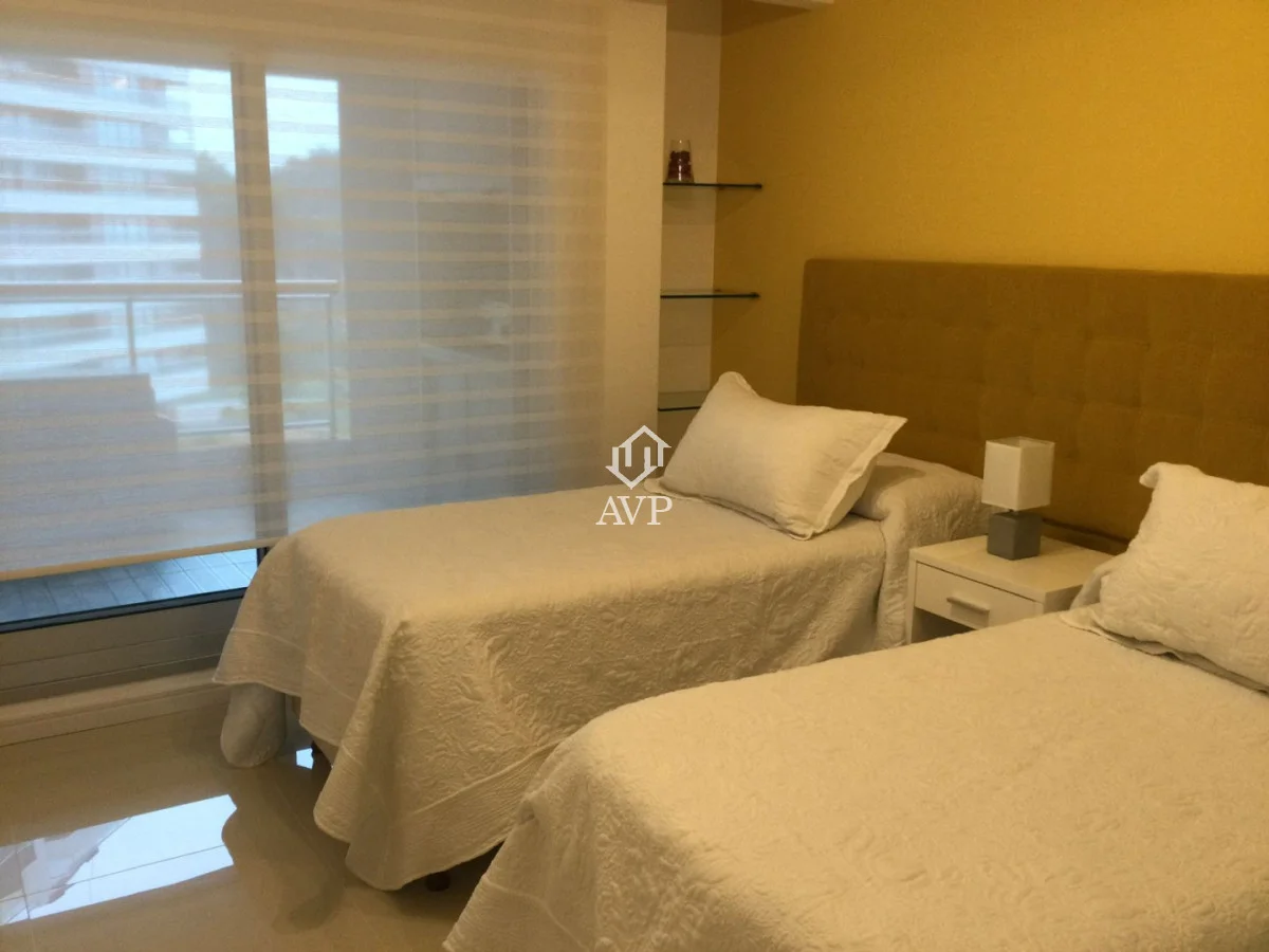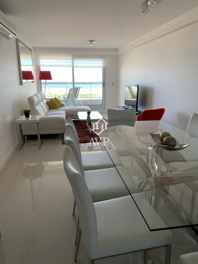 Moderna torre con todos los servicios Servicio de playa Living comedor con terraza y parrillero Baño Social 2 dormitorios (uno en suite) 2 baños Cocina completa con desayunador Garage Servicio de mucama Piscina exterior climatizada Piscina interior Gimnasio Cancha de futbol Cancha de tenis Parrilleros Piscina interior Referencia Interna : Tera-1882