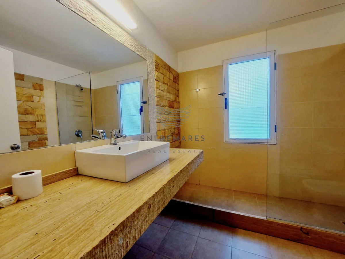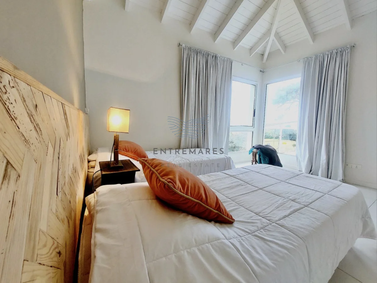 Distribuida en dos cómodas plantas con muy buena luz natural y vista al mar. Dispone de seis amplios dormitorios, cuatro de ellos en suite. Cocina completa, bien equipada. Gran living comedor en planta alta, con estufa a leña, y salida a las terrazas con vista.