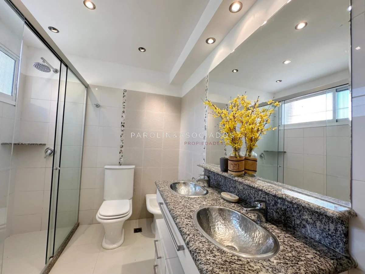En planta baja cuenta con 3 dormitorios, (1 de ellos en suite), amplio living comedor con vista al mar, dos dormitorios con baños dobles y baño social.
