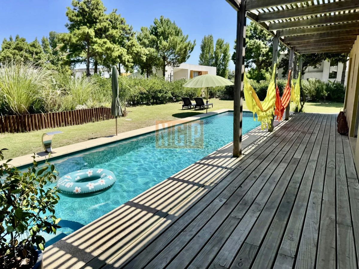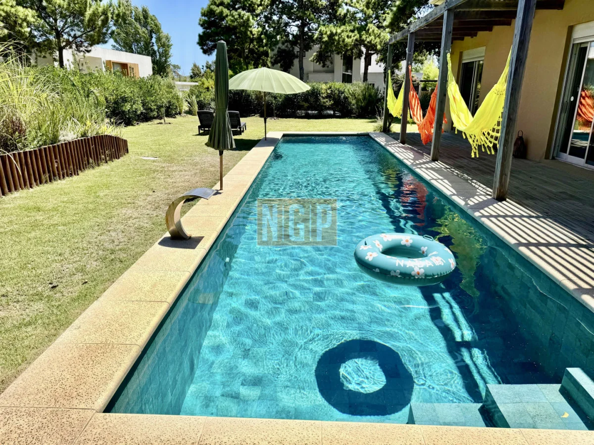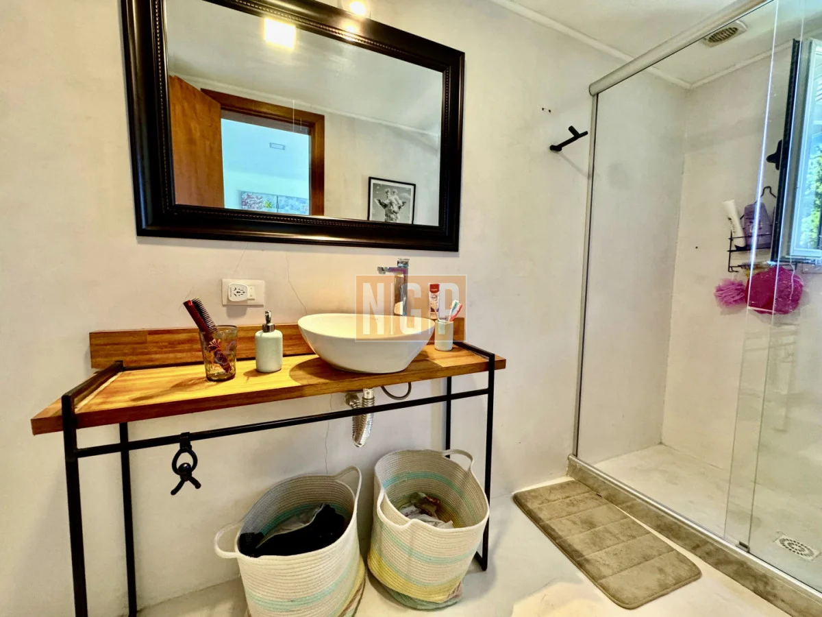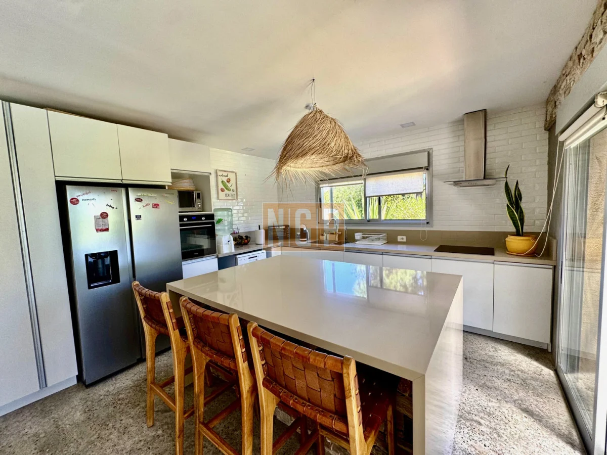 cuenta 3 dormitorios todos en suite, toileitte, amplio living comedor con estufa del alto rendimiento, cocina integrada con isla desayunador bien equipada,