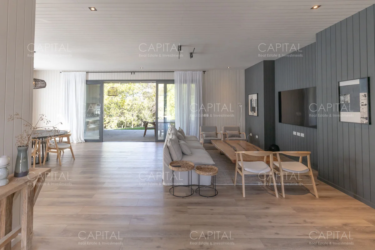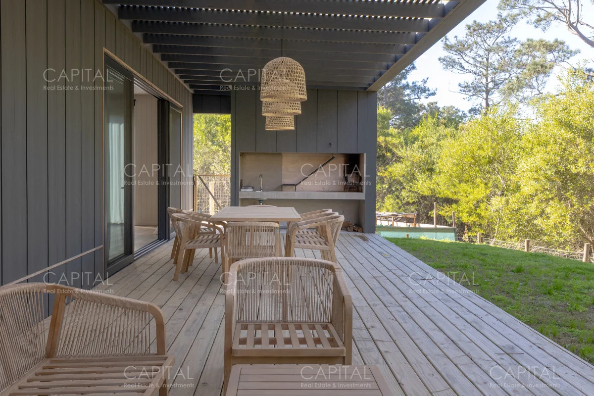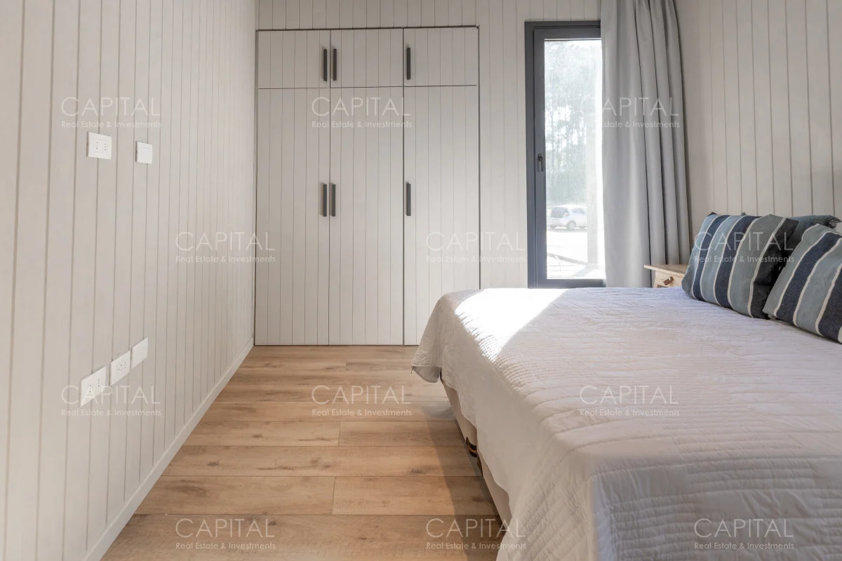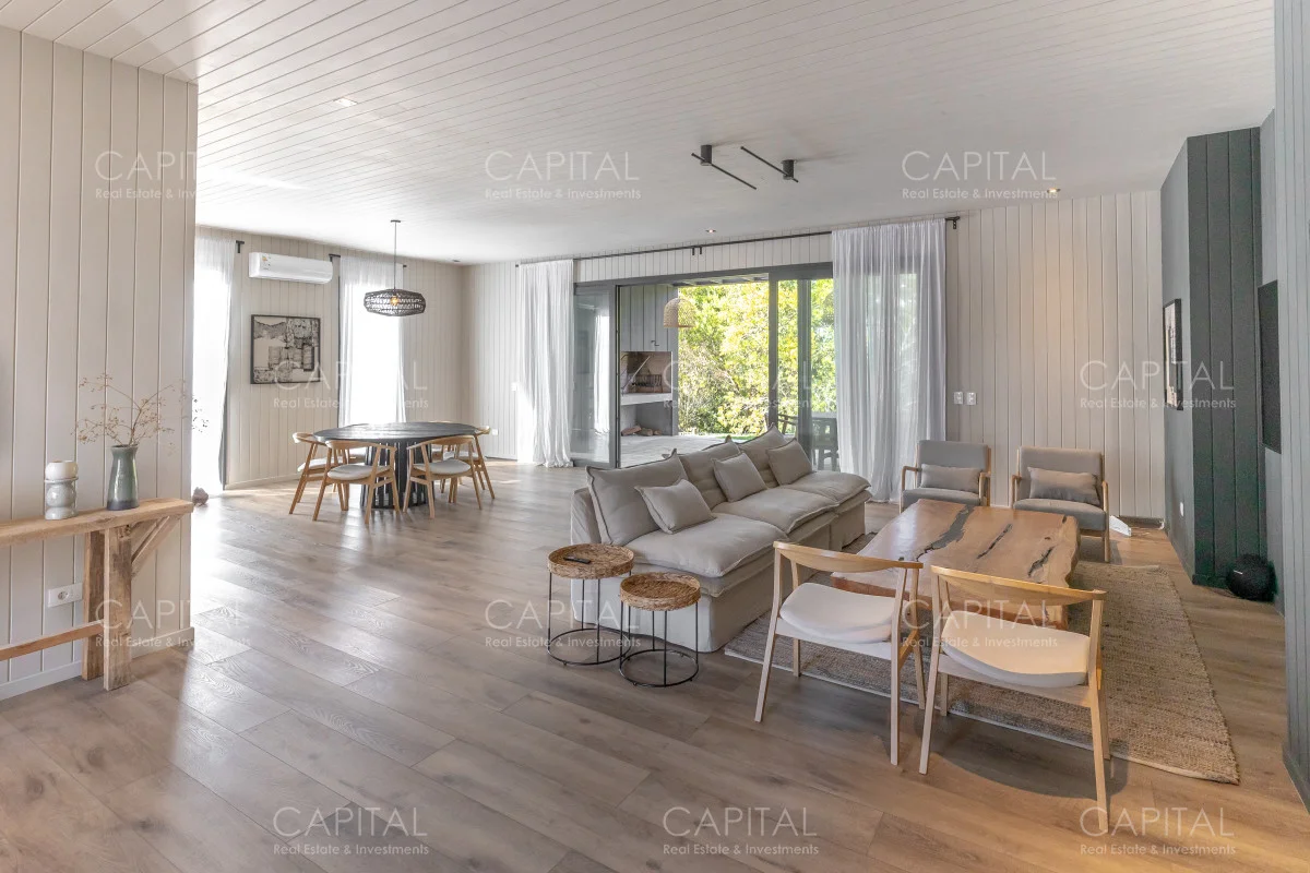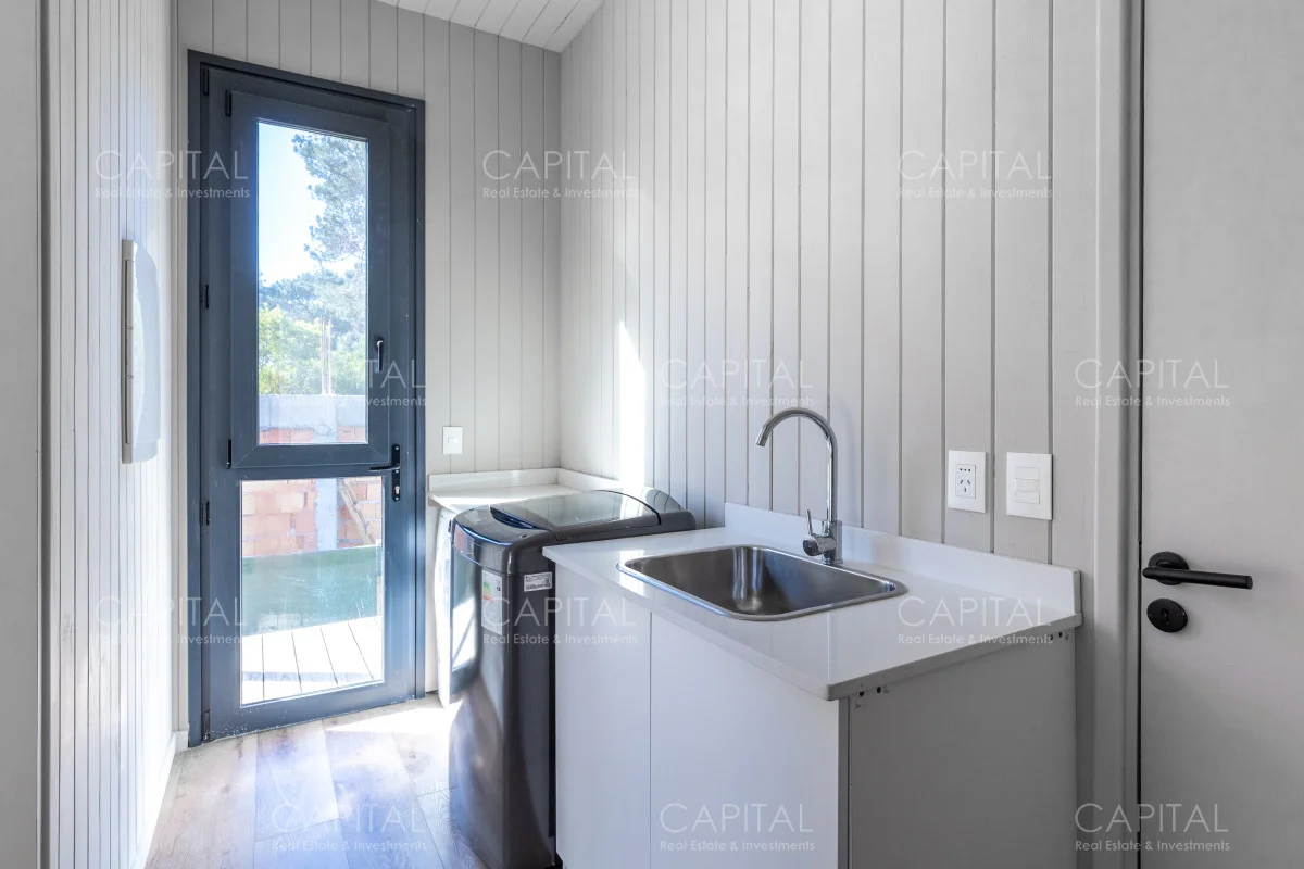 Excelente casa moderna a estrenar en barrio cerrado Reserva Montoya a pasos del mar y con todos los servicios. Cuenta con cómodos y luminosos ambientes, amplio living comedor con doble altura con salida directa a gran terraza donde se encuentra el parrillero techado, cocina integrada estilo americana súper práctica y funcional, dependencia de servicio con baño y lavadero. 3 cómodas suites ( ppal de generosas dimensiones), toilette. Muy lindos detalles, cálida y totalmente equipada y decorada con mucho estilo..