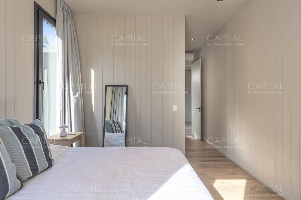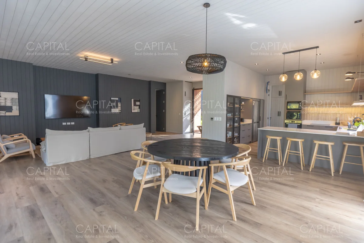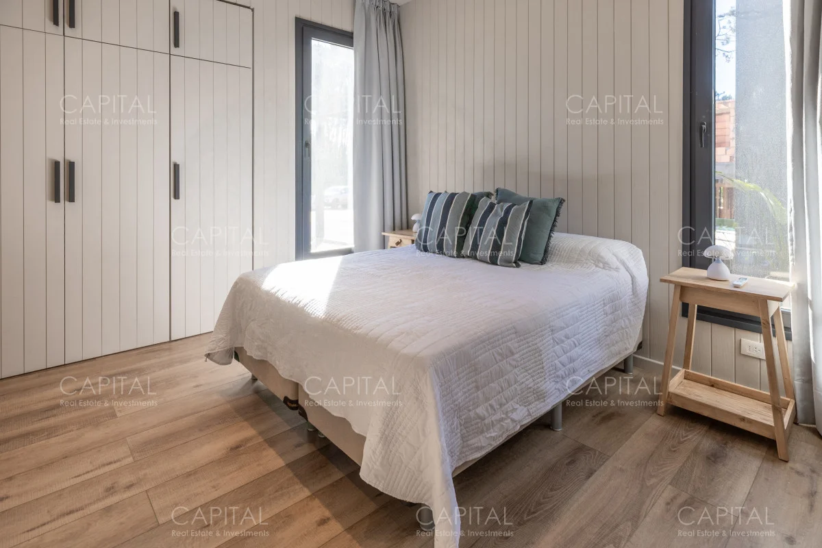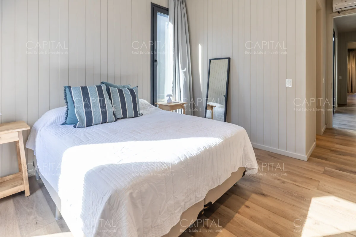 Excelente casa moderna a estrenar en barrio cerrado Reserva Montoya a pasos del mar y con todos los servicios. Cuenta con cómodos y luminosos ambientes, amplio living comedor con doble altura con salida directa a gran terraza donde se encuentra el parrillero techado, cocina integrada estilo americana súper práctica y funcional, dependencia de servicio con baño y lavadero. 3 cómodas suites ( ppal de generosas dimensiones), toilette. Muy lindos detalles, cálida y totalmente equipada y decorada con mucho estilo..