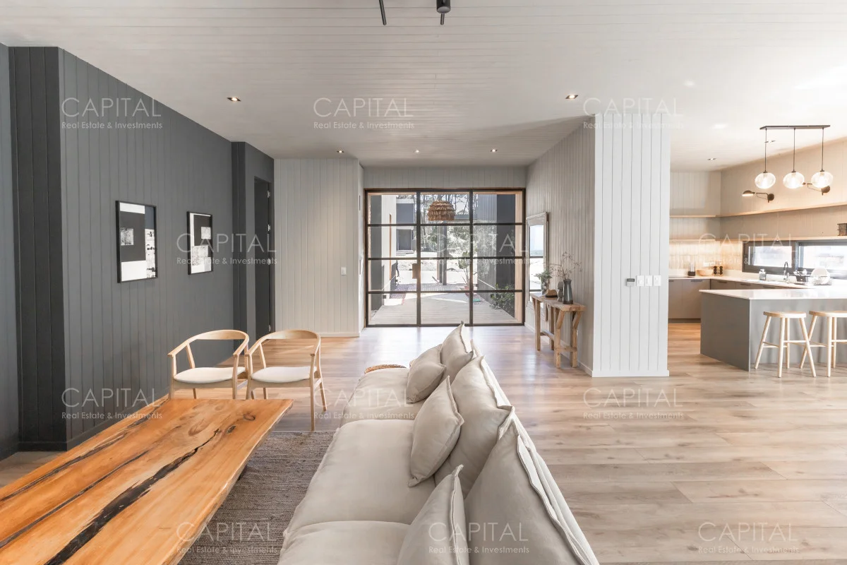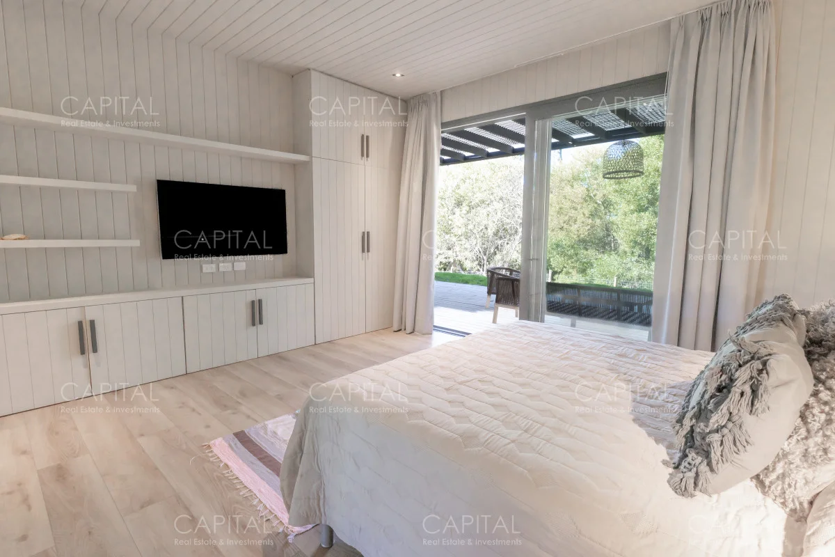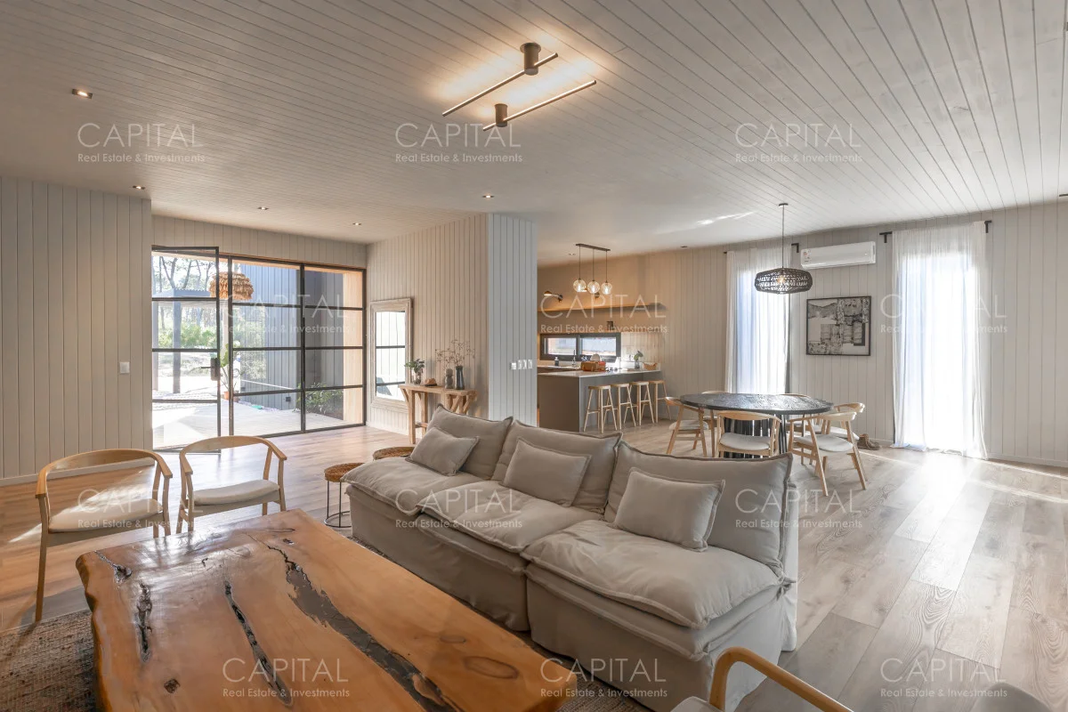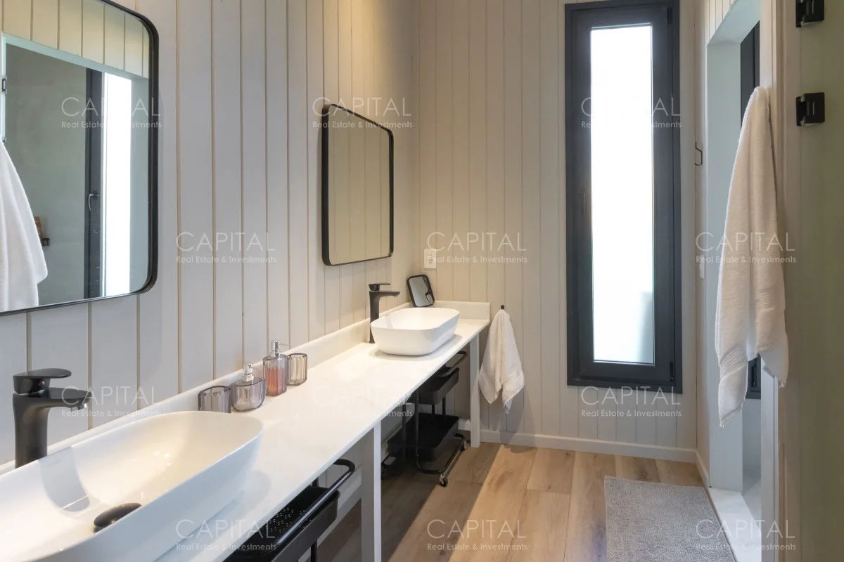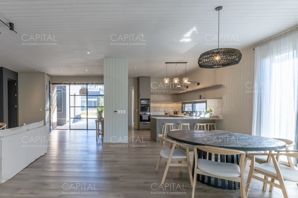 Excelente casa moderna a estrenar en barrio cerrado Reserva Montoya a pasos del mar y con todos los servicios. Cuenta con cómodos y luminosos ambientes, amplio living comedor con doble altura con salida directa a gran terraza donde se encuentra el parrillero techado, cocina integrada estilo americana súper práctica y funcional, dependencia de servicio con baño y lavadero. 3 cómodas suites ( ppal de generosas dimensiones), toilette. Muy lindos detalles, cálida y totalmente equipada y decorada con mucho estilo..
