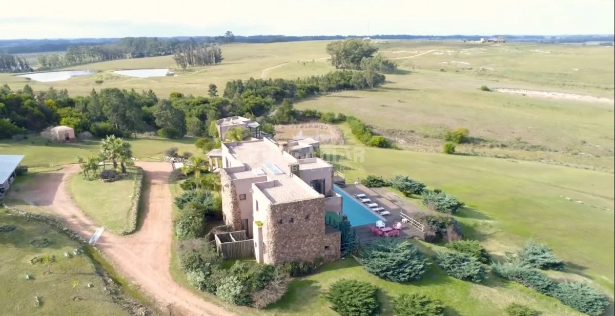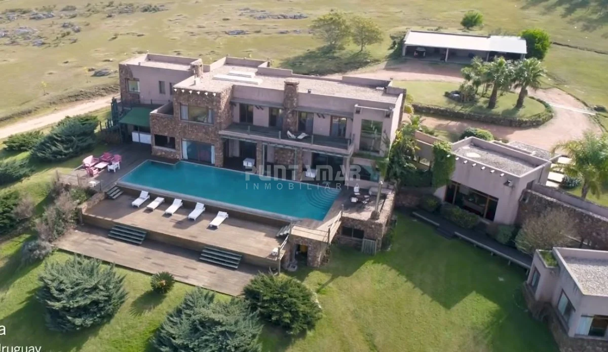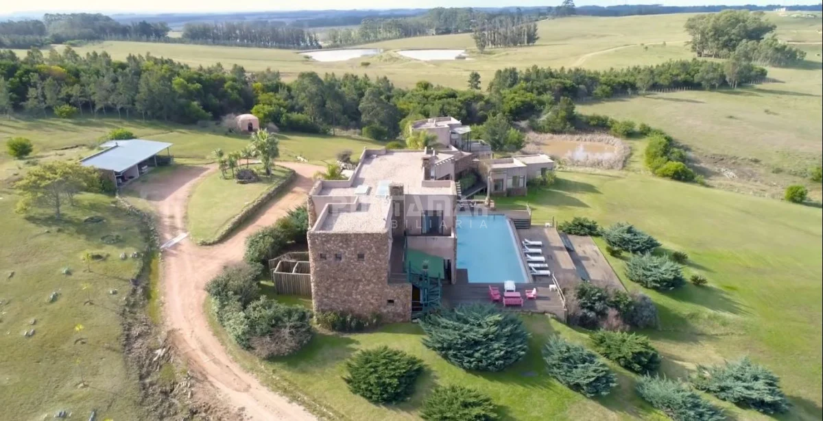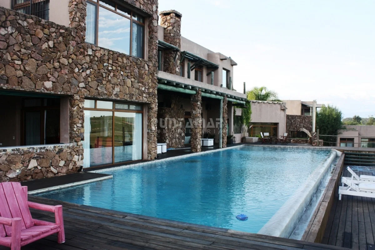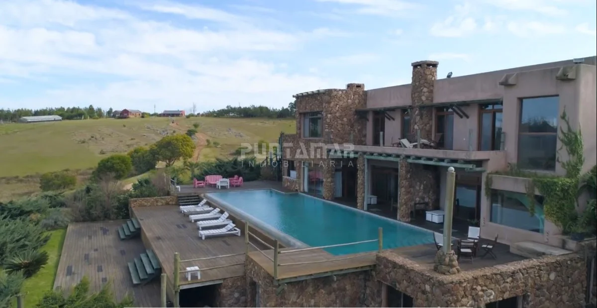 La casa principal de 1118 m2 desarrollada en dos pisos con espectacular vista panorámica. Se destaca su sólida construcción en piedra y sus detalles exquisitos.