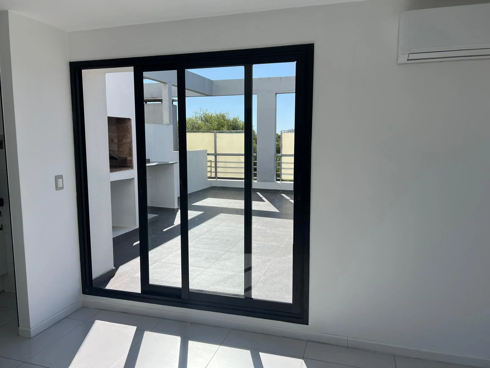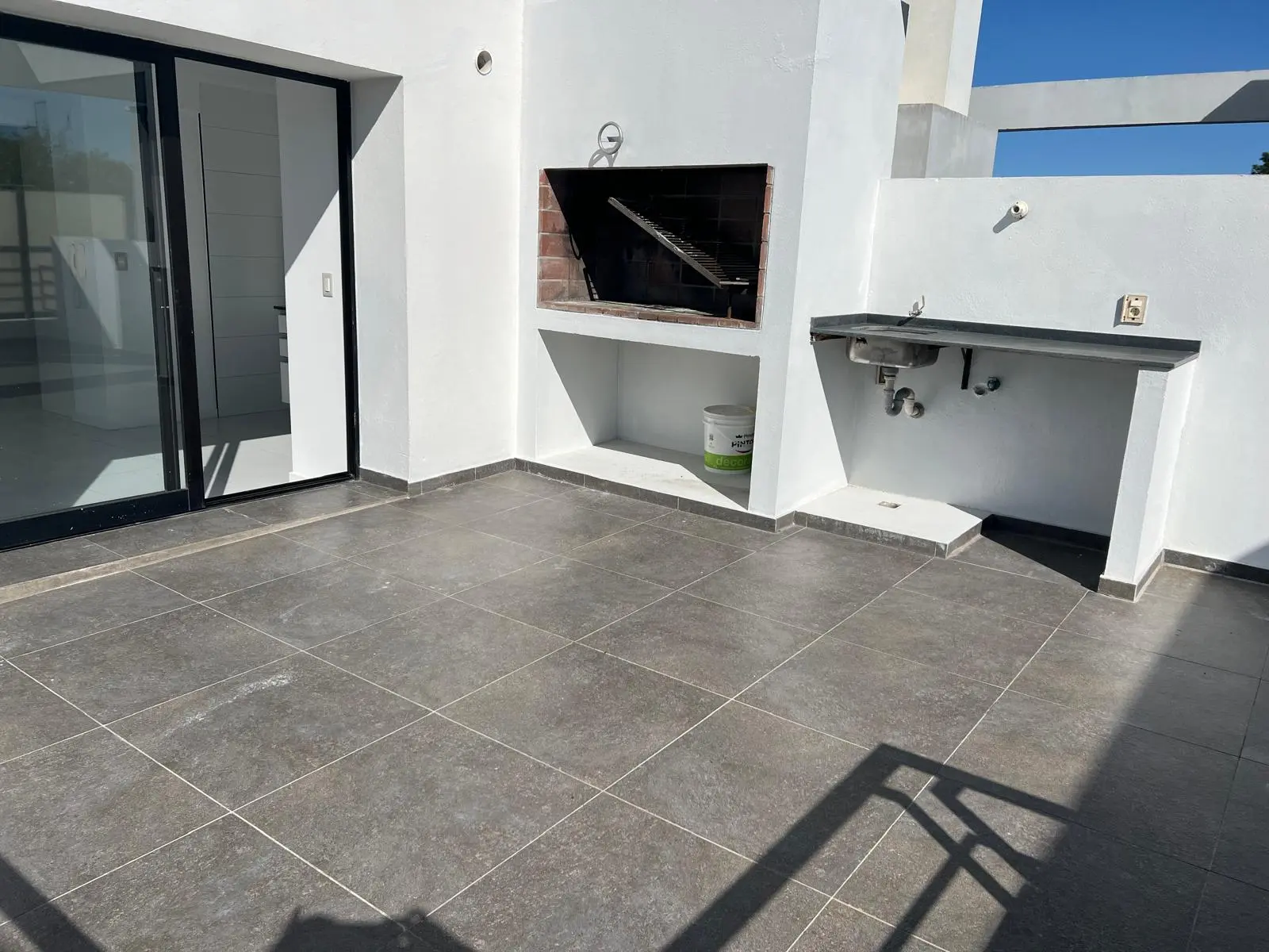 En las áreas sociales se encuentran la cocina amoblada de concepto abierto, el comedor y living con amplias aberturas, una de ellas una puerta ventana que comunica directamente a una gran terraza con parrillero y fregadero exteriores orientada a tres puntos cardinales, además la terraza posee una estructura tipo pérgola que permite colocar toldos o velas parasoles.